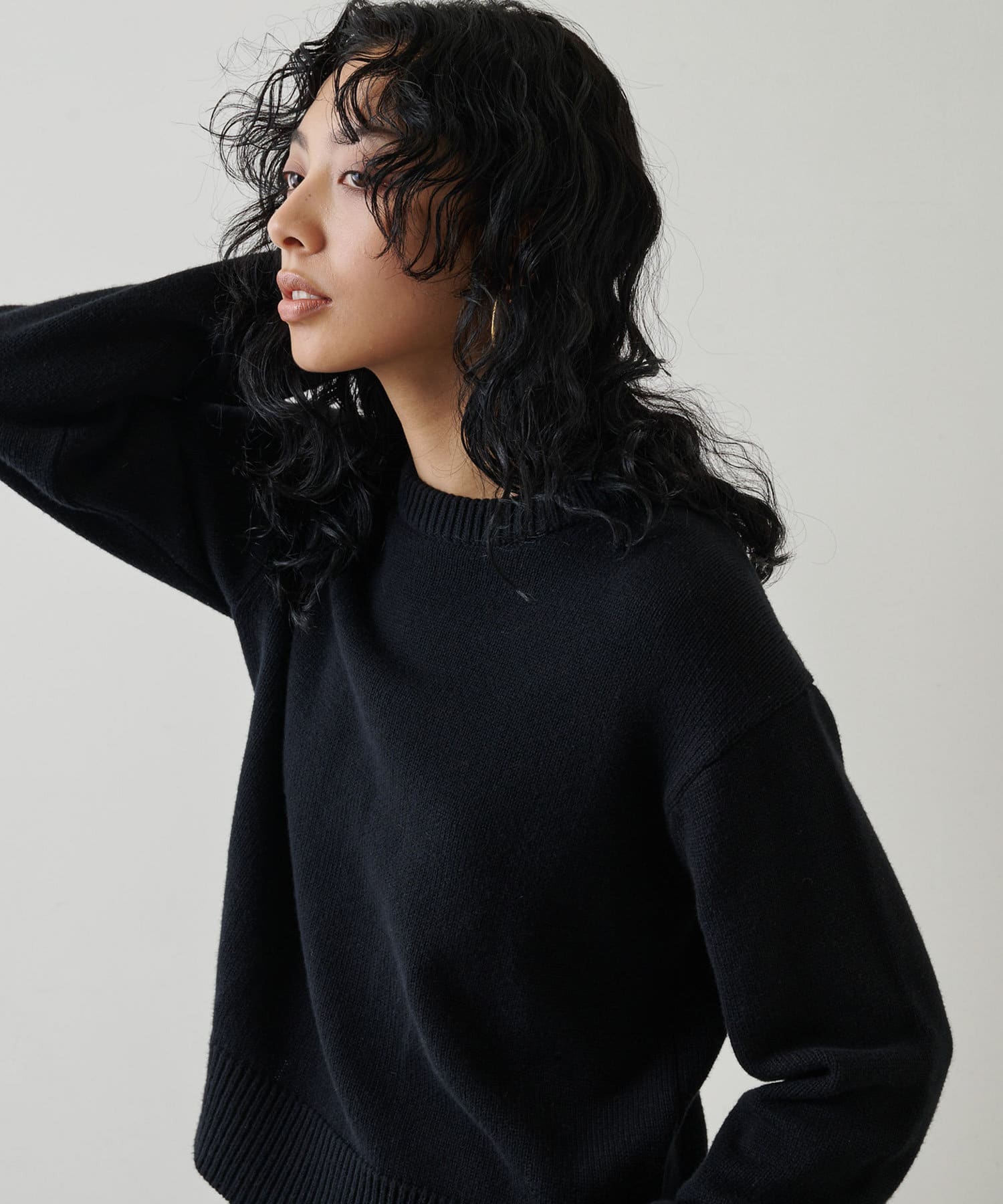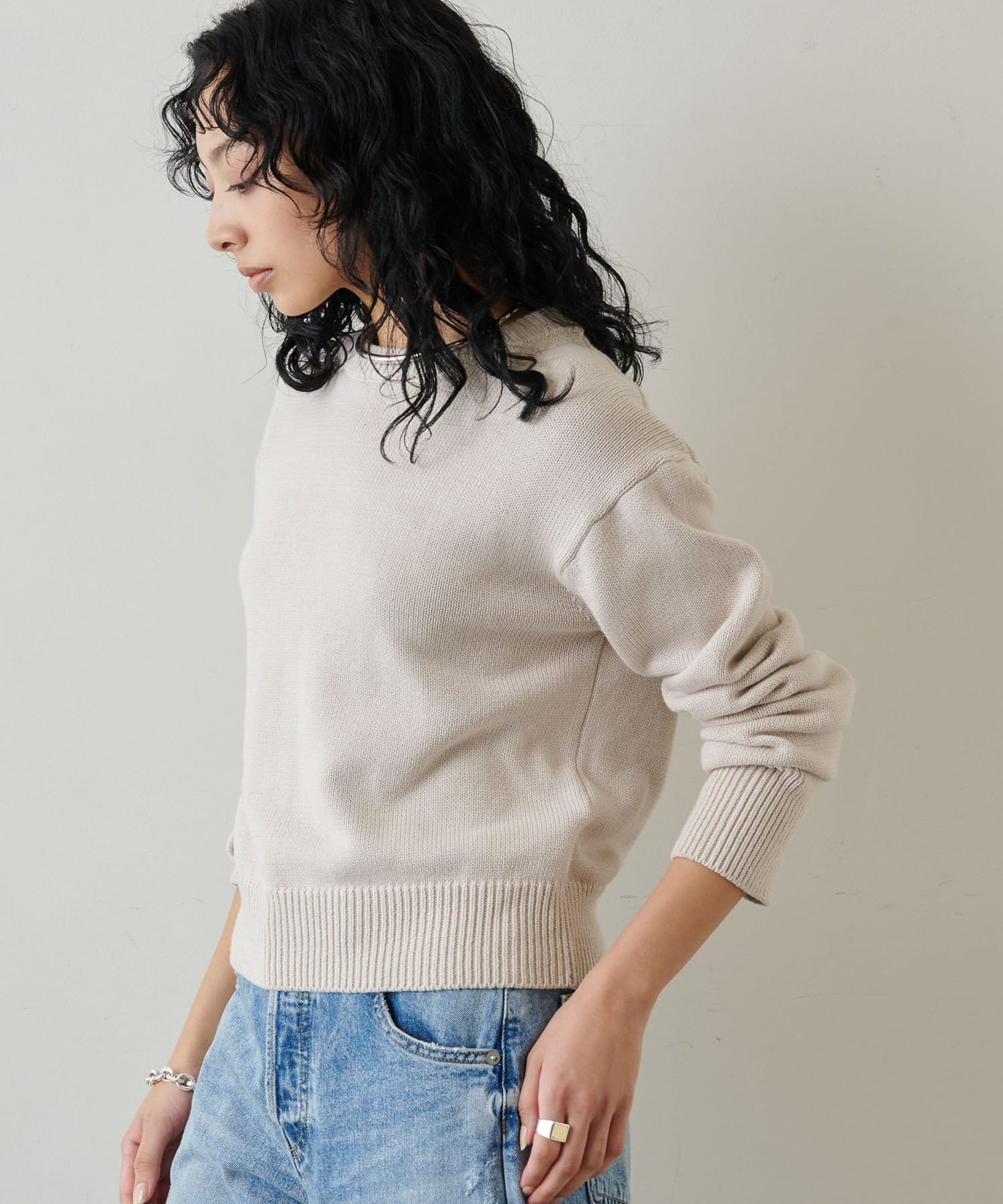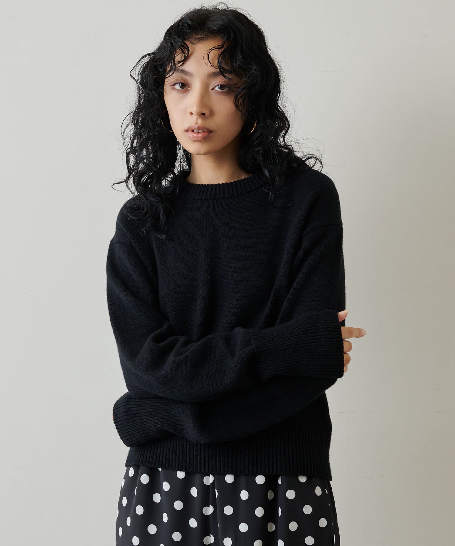 ■すっきりとしたクルーネックシルエットがポイントのニット。