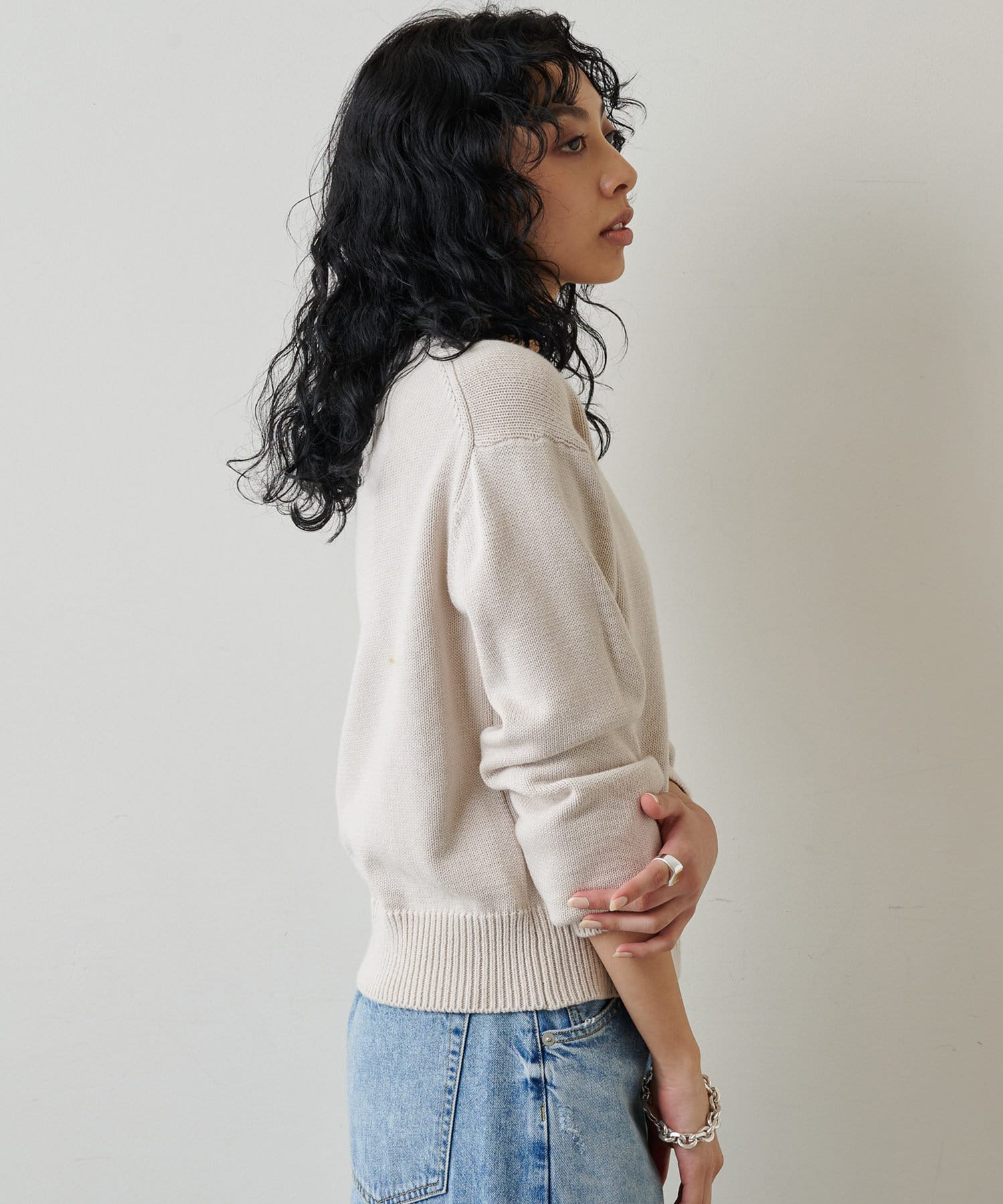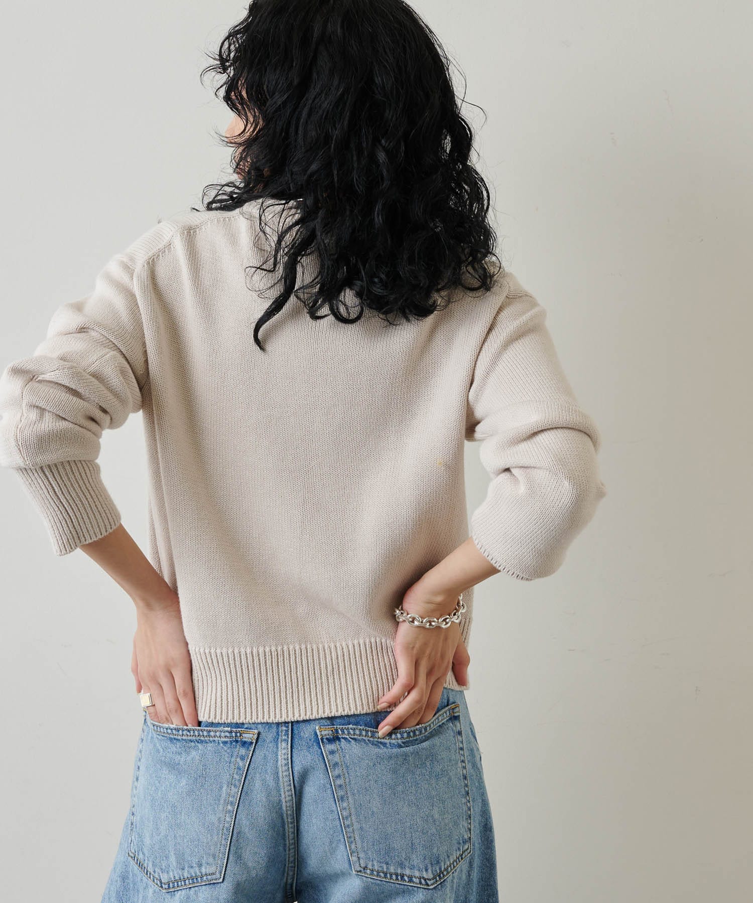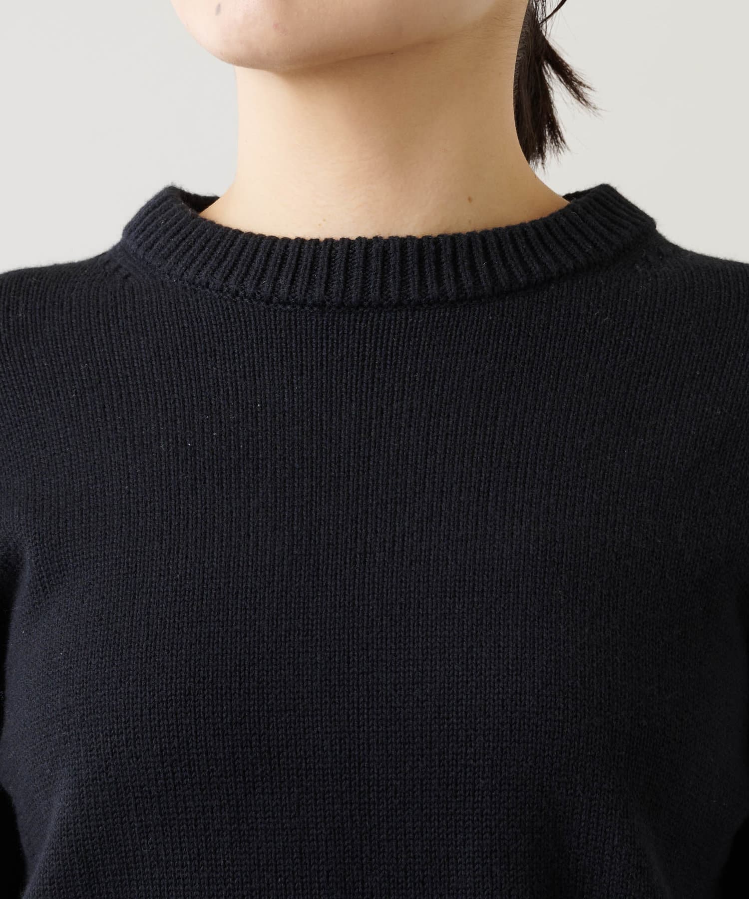 ■すっきりとしたクルーネックシルエットがポイントのニット。
