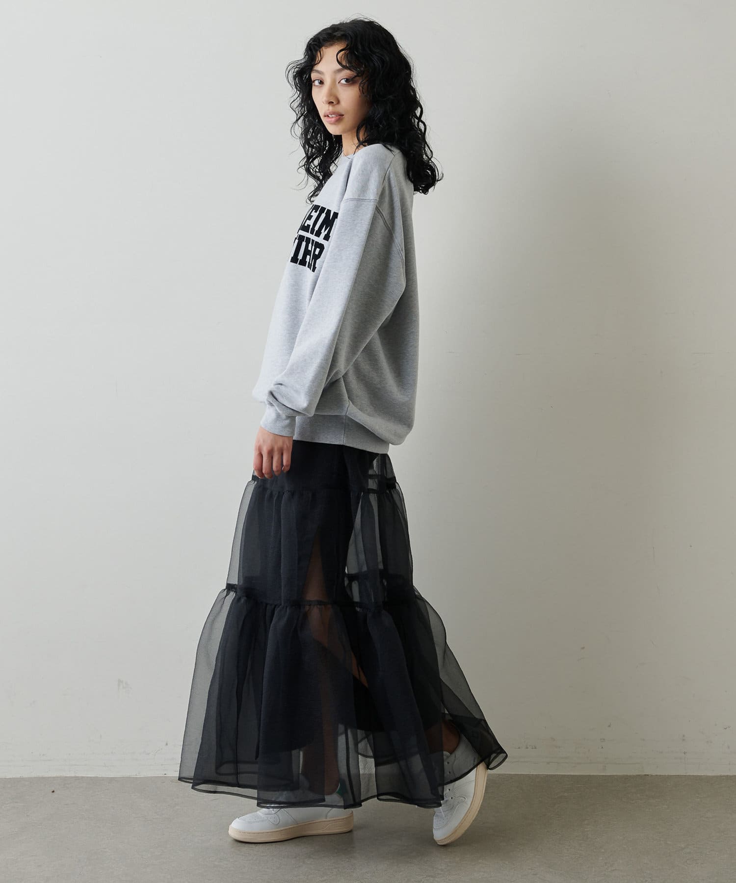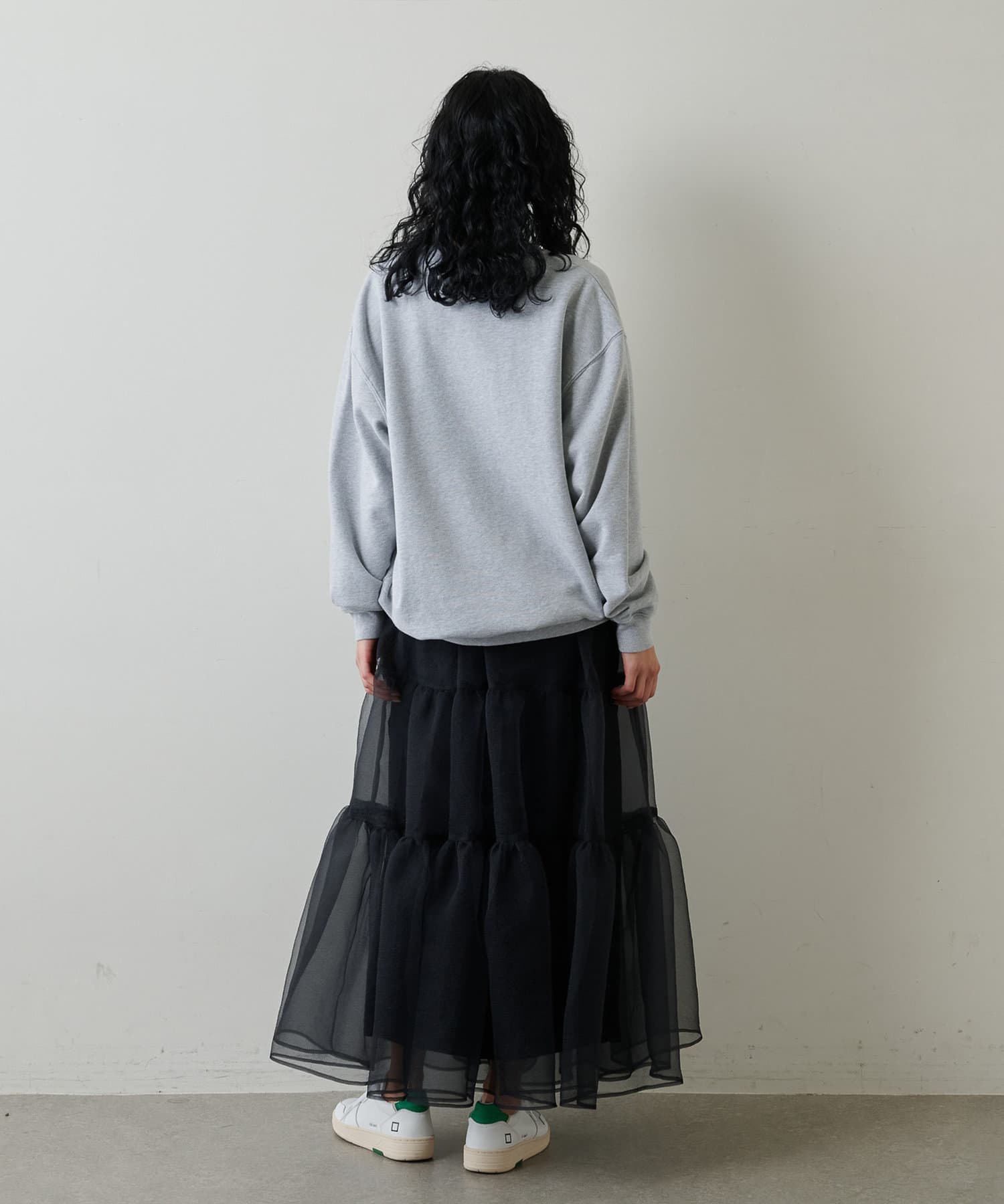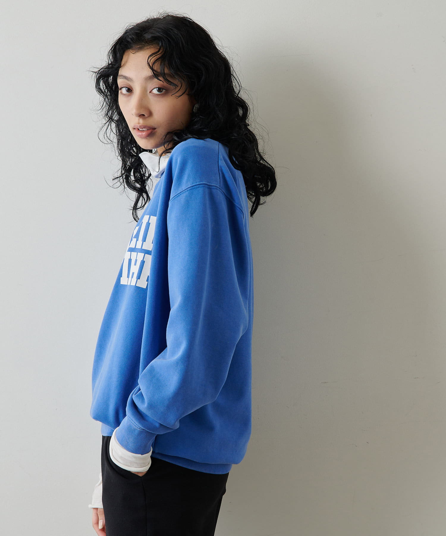 フロッキーロゴが目を惹く、大人カジュアルなスウェットプルオーバー