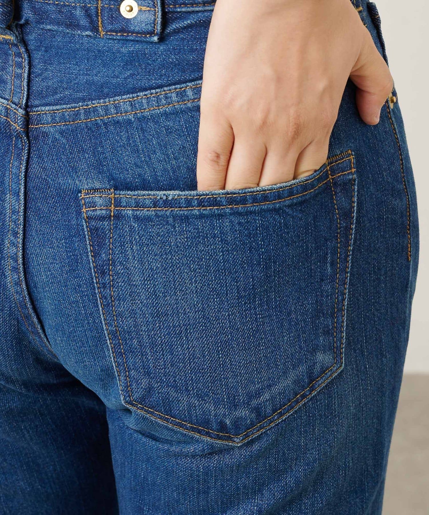 インディゴブルー:さりげない色落ち感ときれいな発色が上品なブルー。