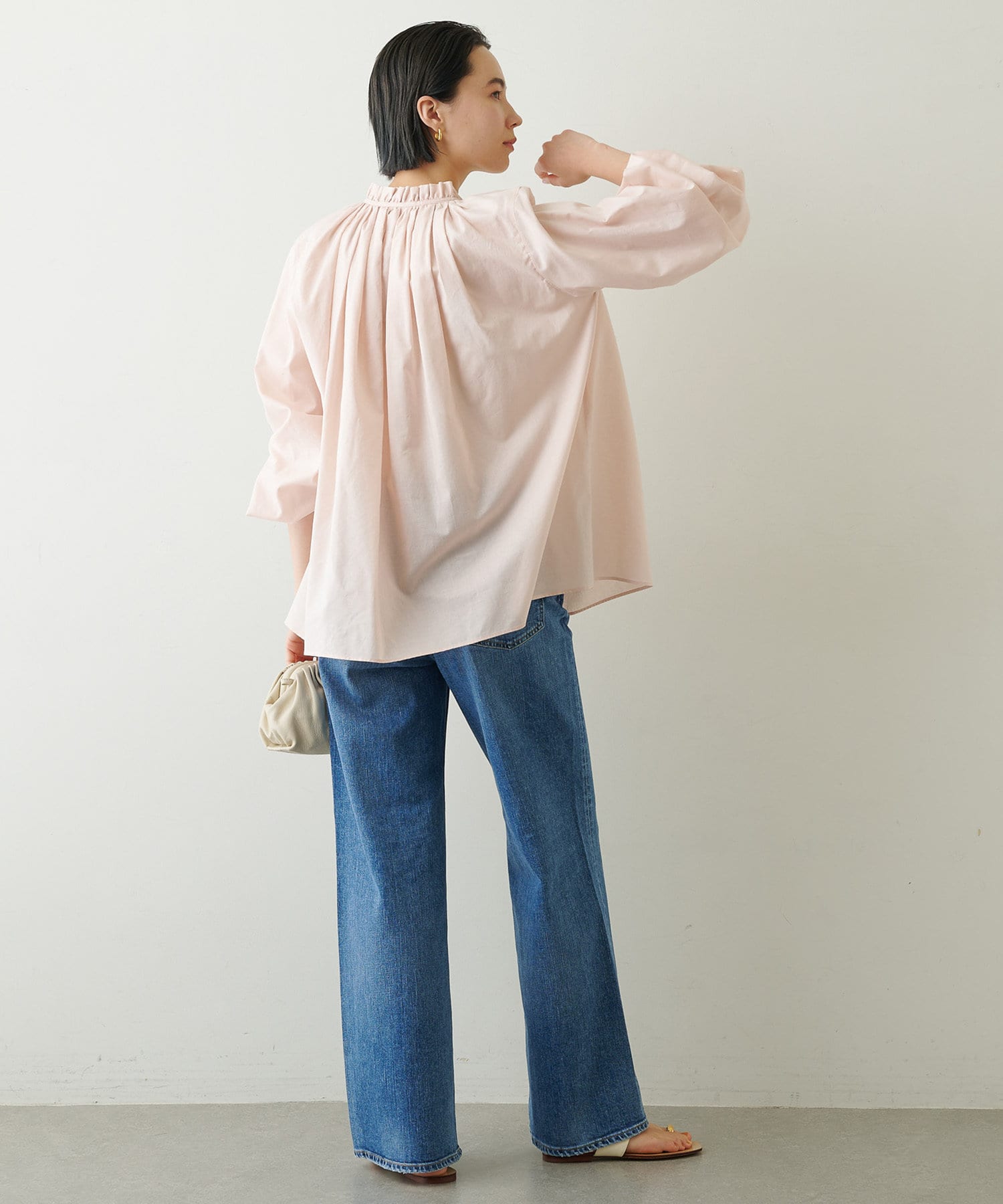 ■裾に向かう緩やかなフレアシルエットに、きれいめにもルーズにもどちらにも対応できる丈感がポイント。