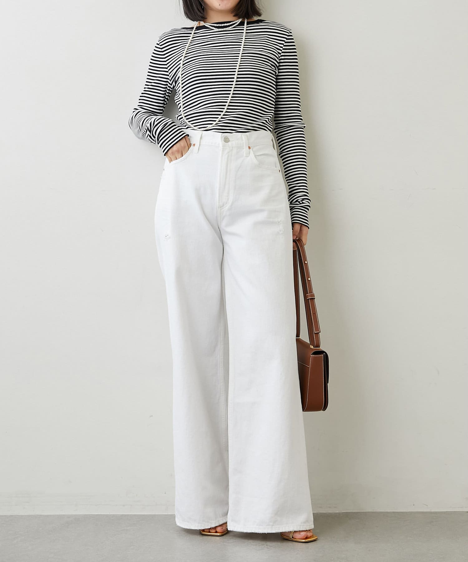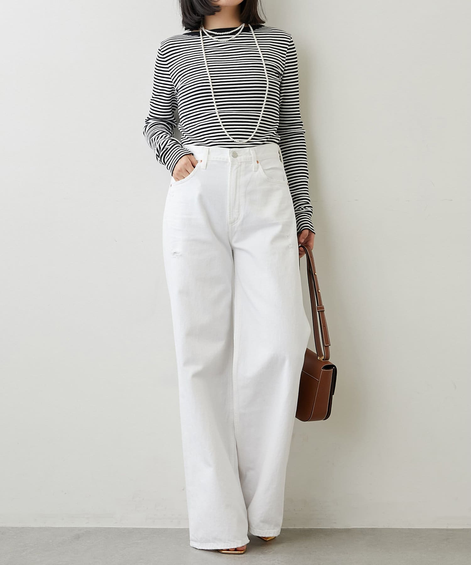 ■流れるようなワイドシルエットが脚のラインを美しく演出するデニムパンツ。