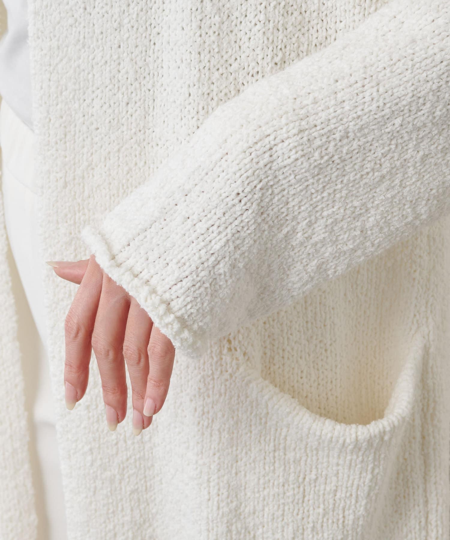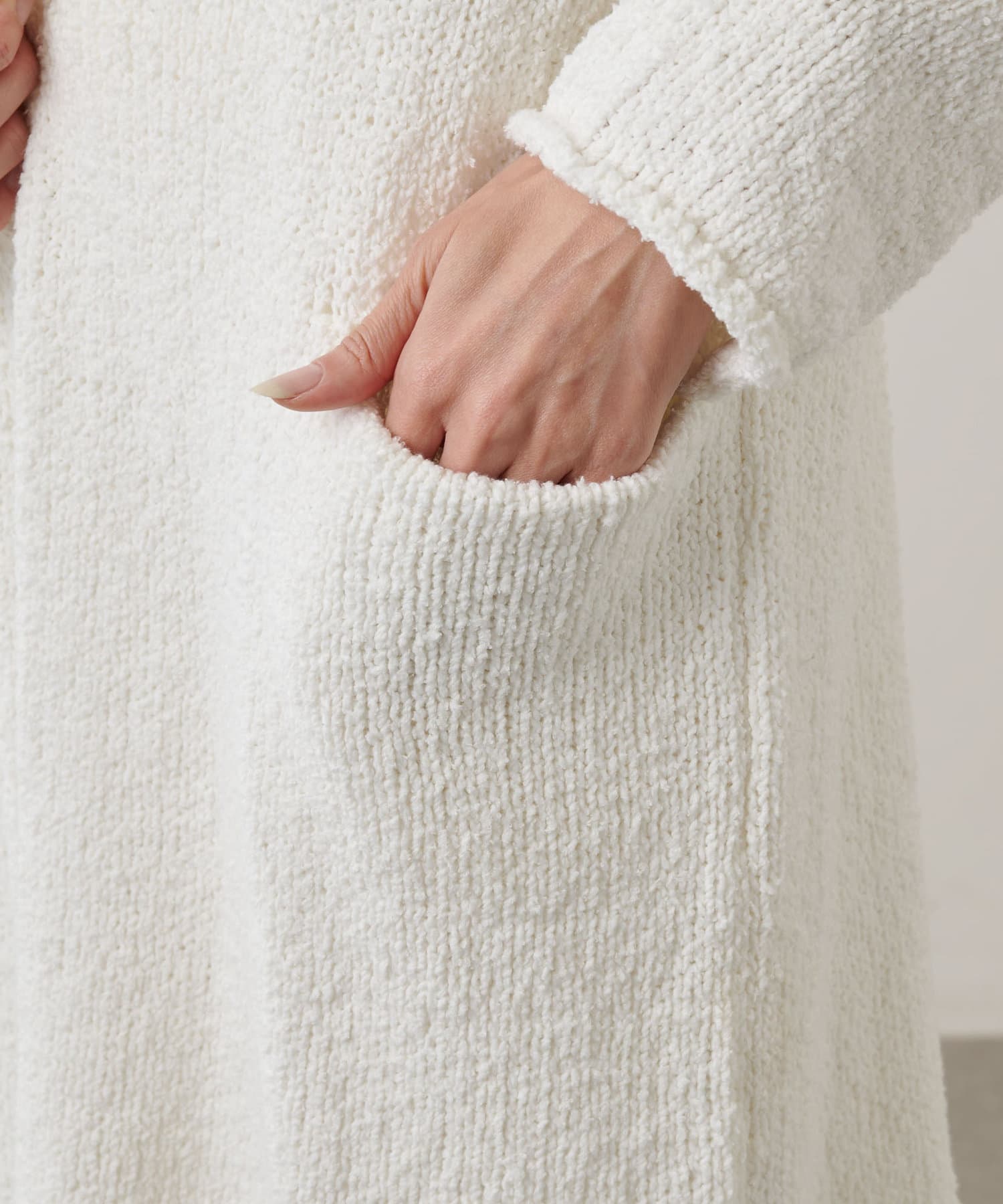 こなれたリラックススタイルに仕上がる、大人のニットガウン