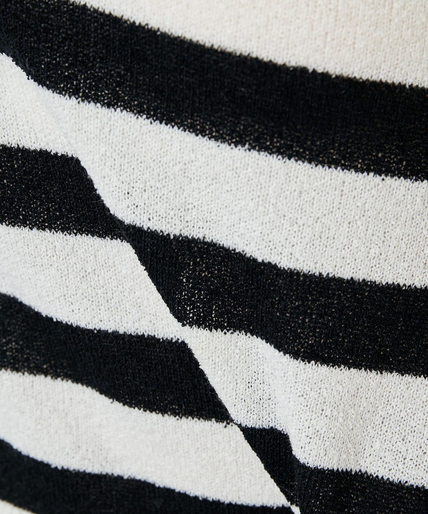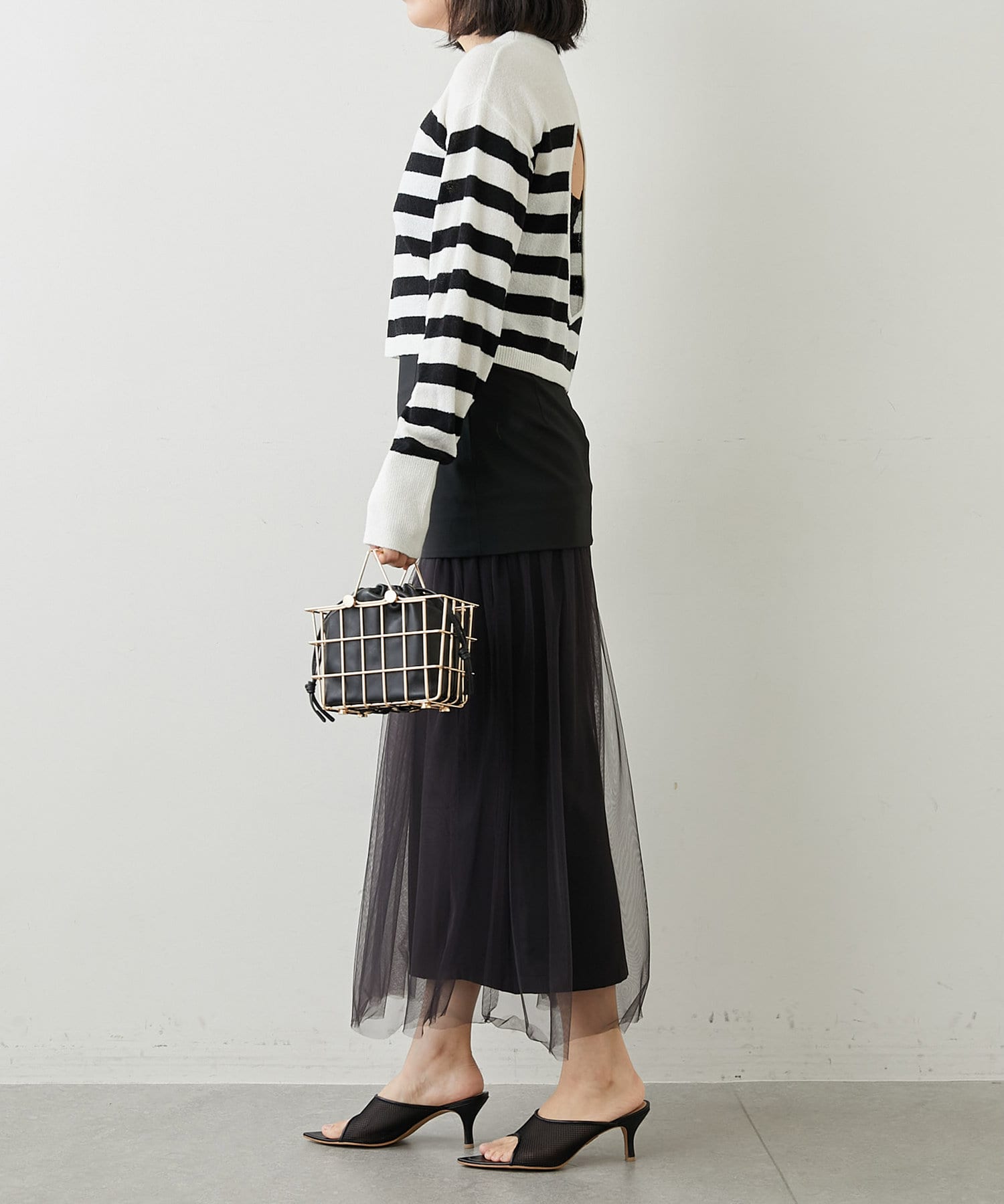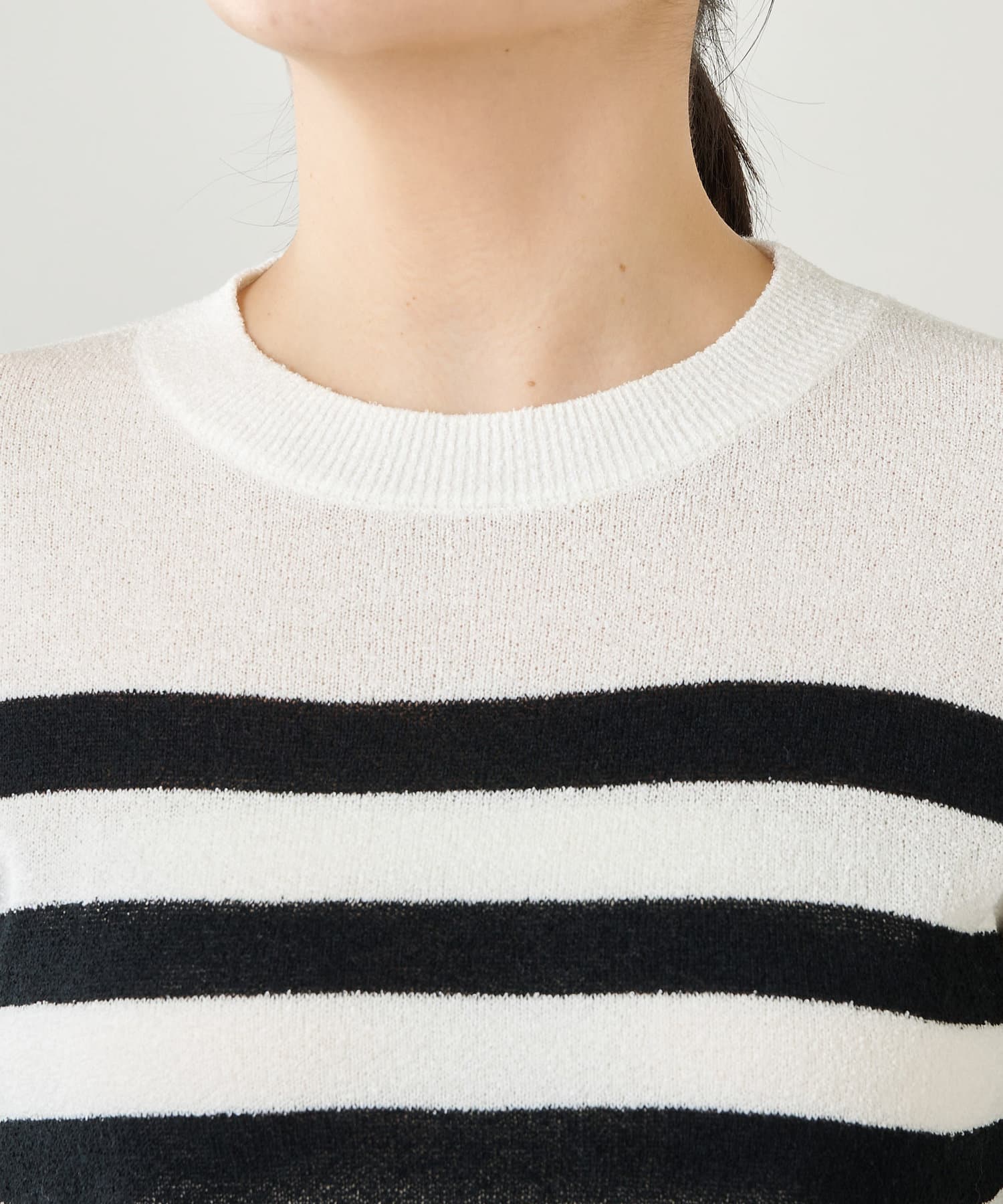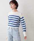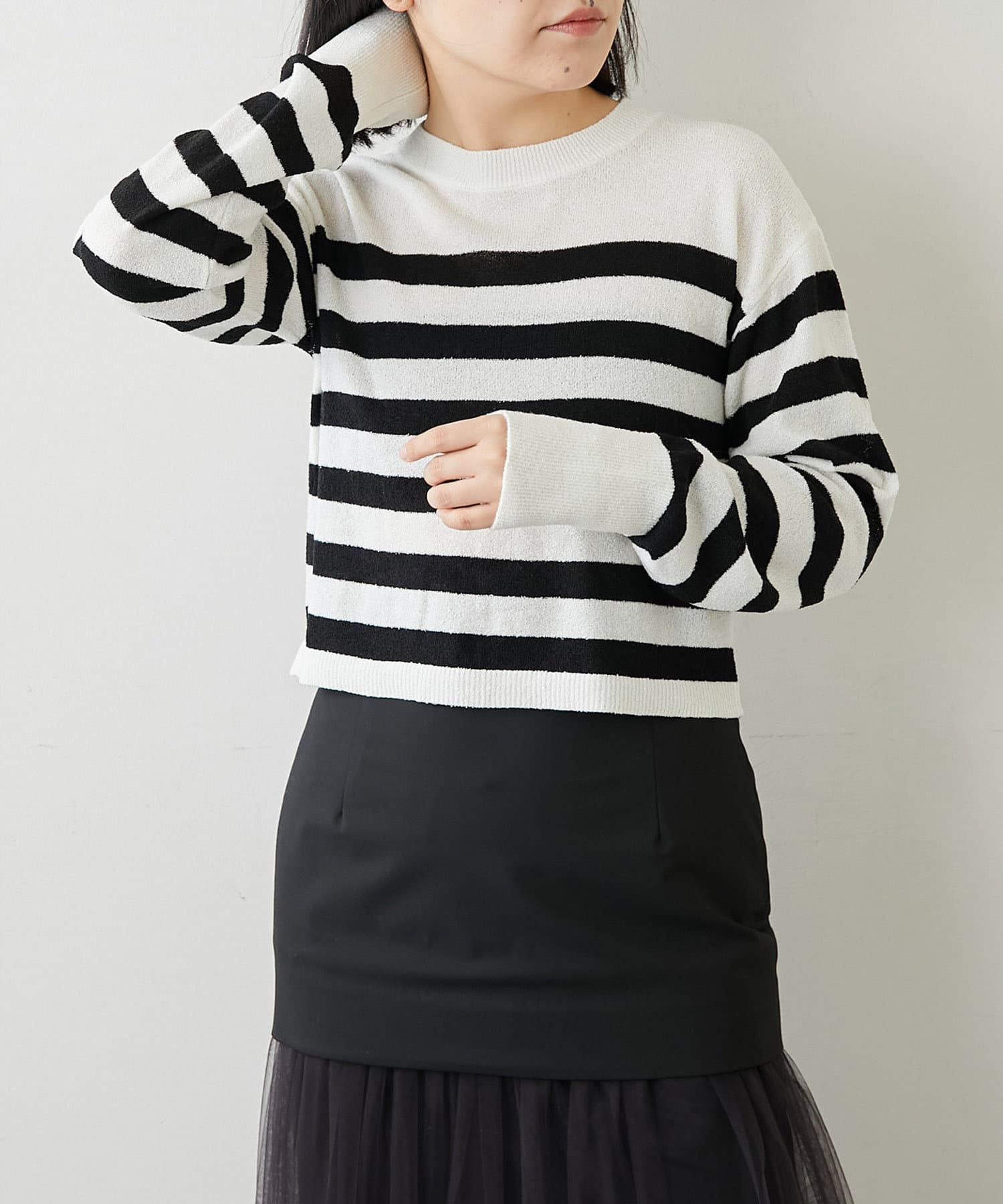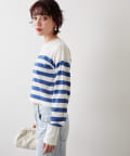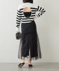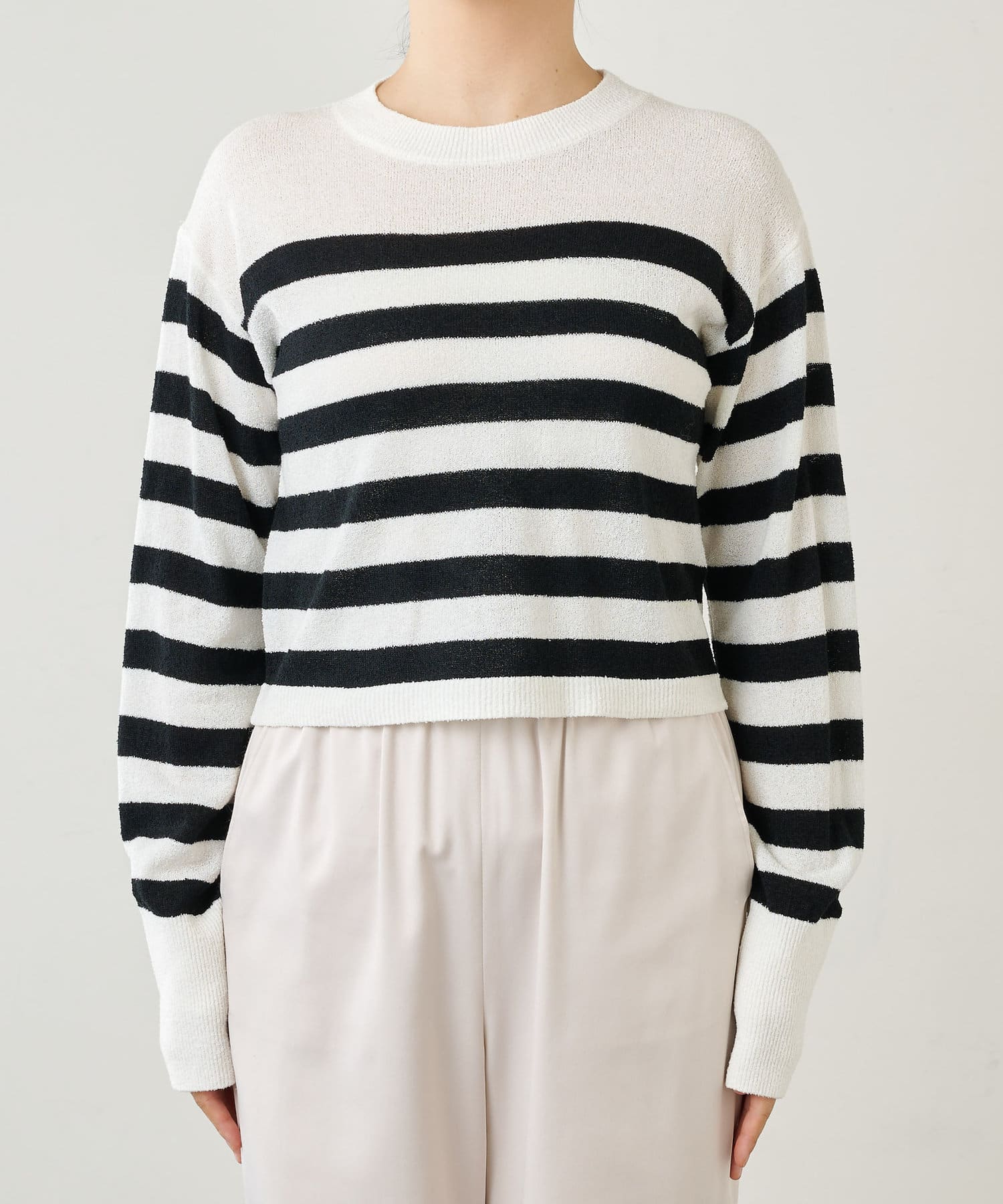 ■バックスタイルの大胆な開きが目を惹くボーダーニットプルオーバー。