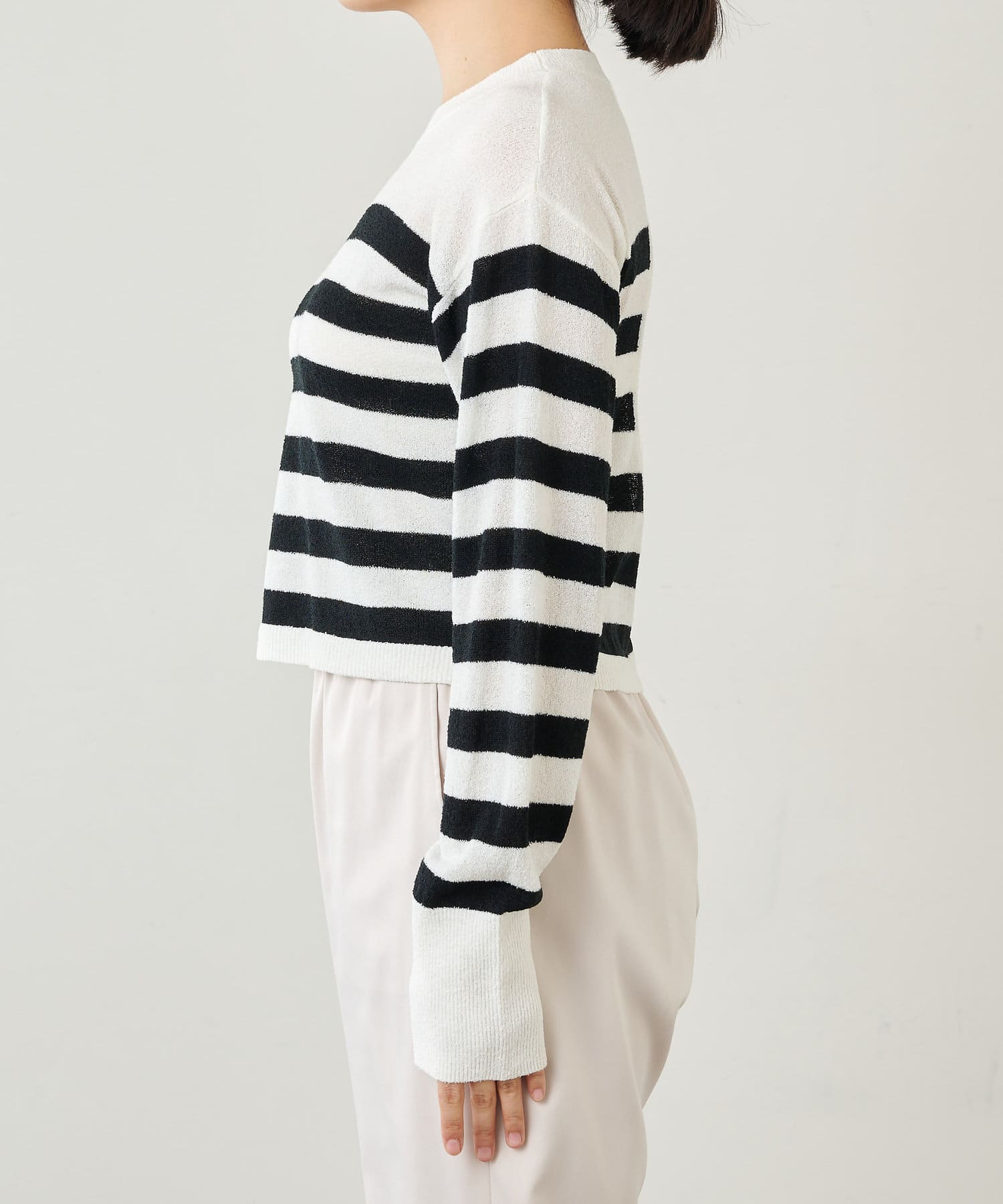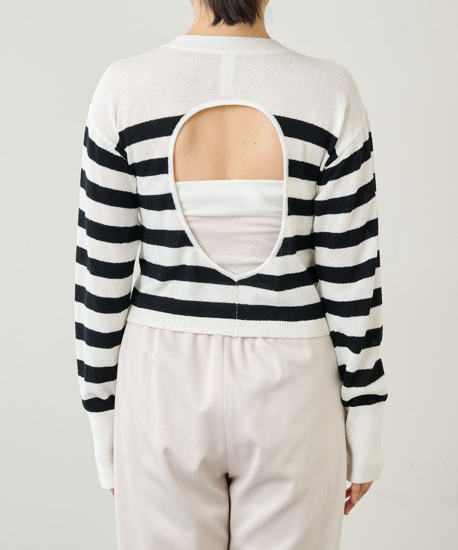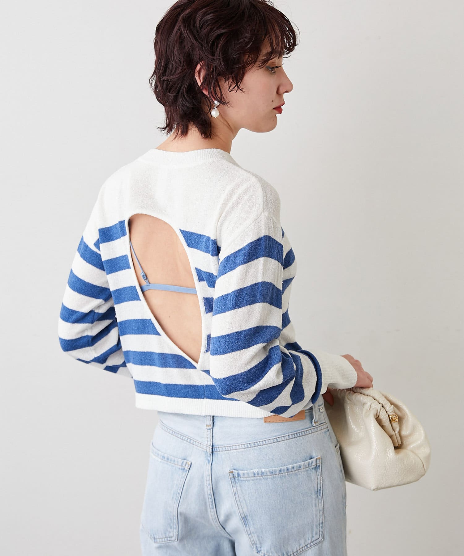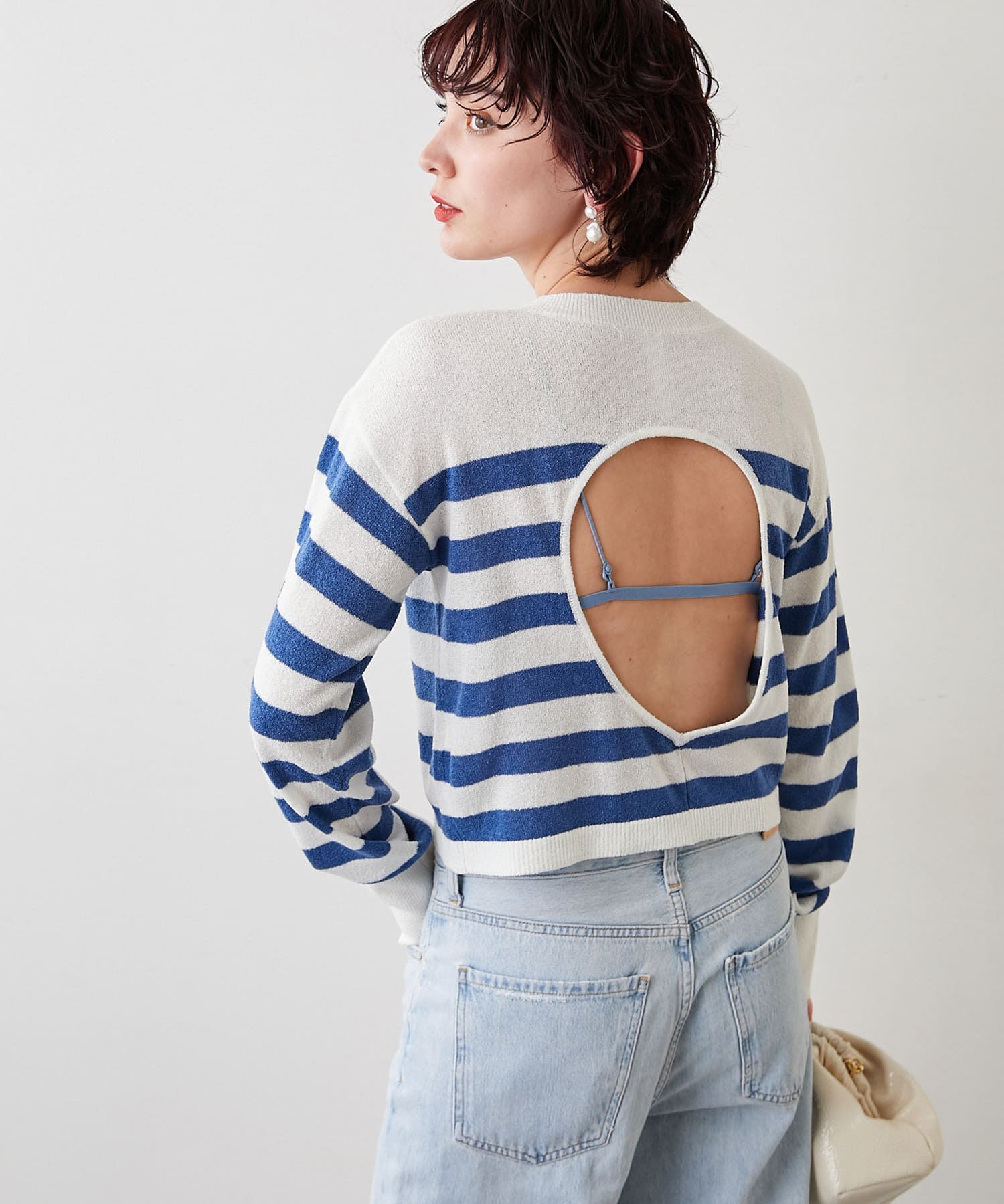 ボーダー柄もヘルシーに着こなせるバックオープンニット