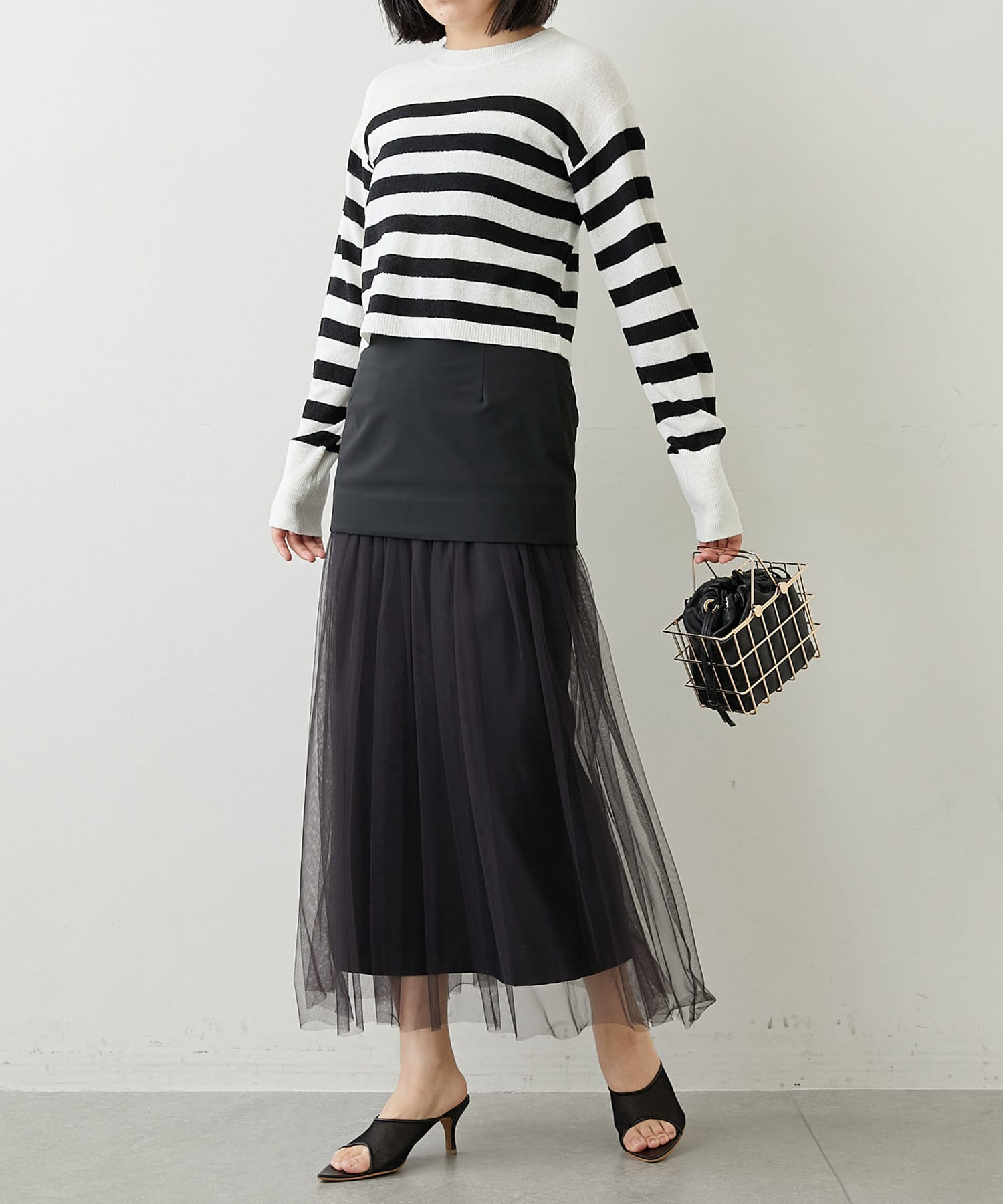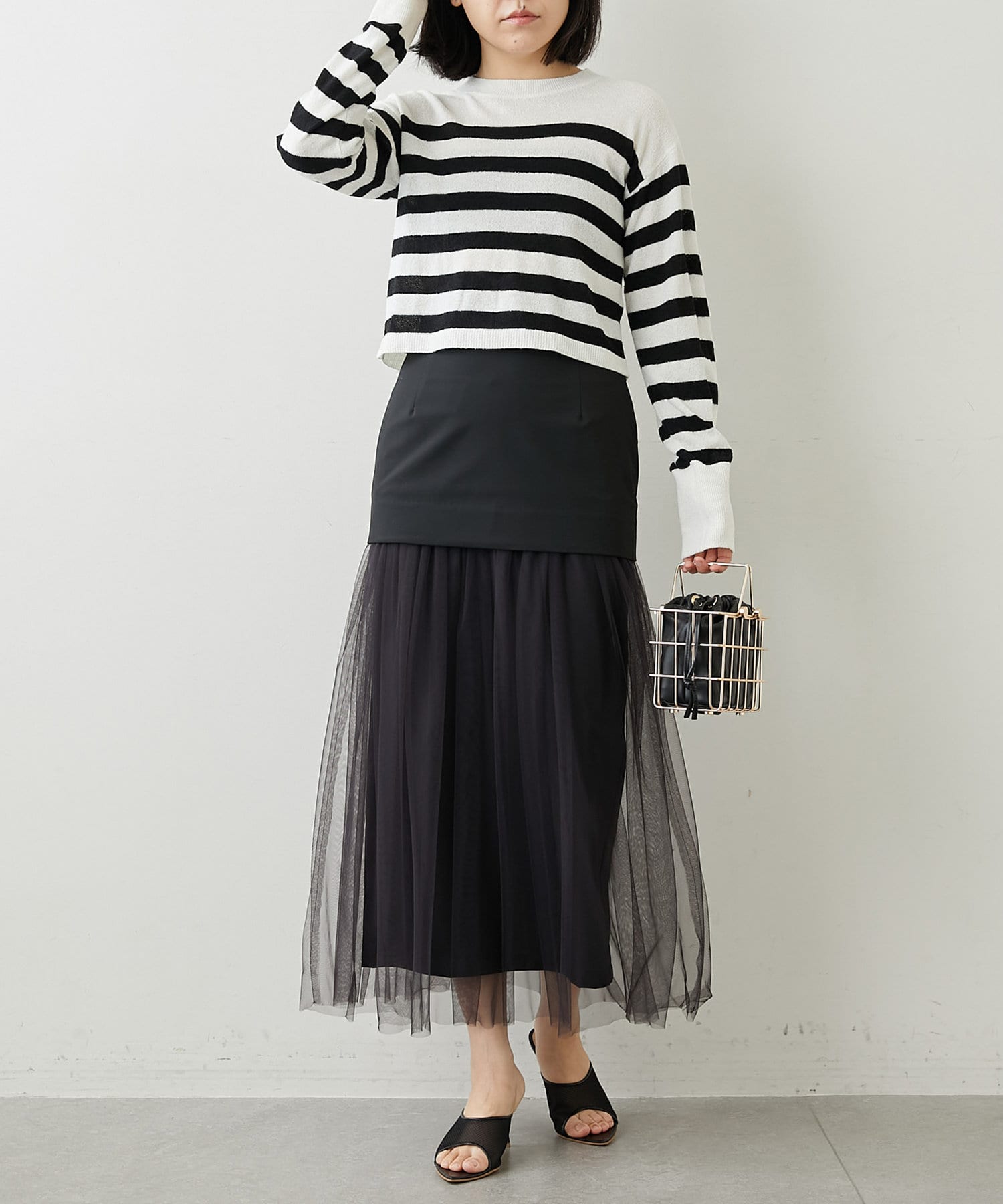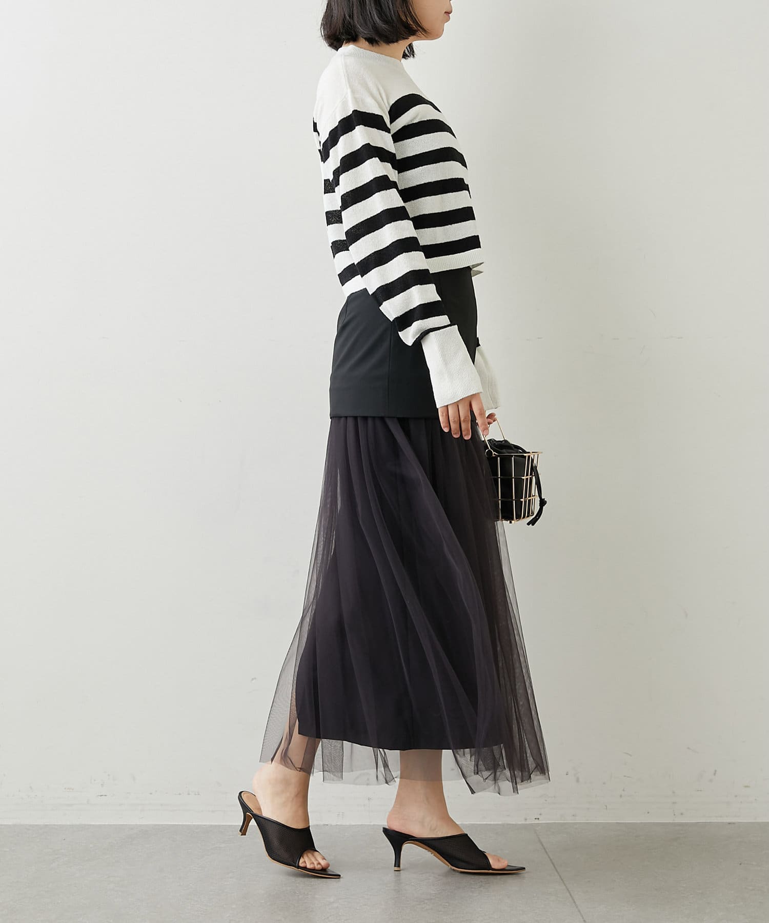 ■定番のボーダートップスに女性らしさをプラスし、他にはないデザイン性で周りと差の付くアイテム。