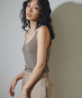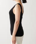 ■前後の異なるネックラインの開きをどちらも楽しめるタンクトップ。