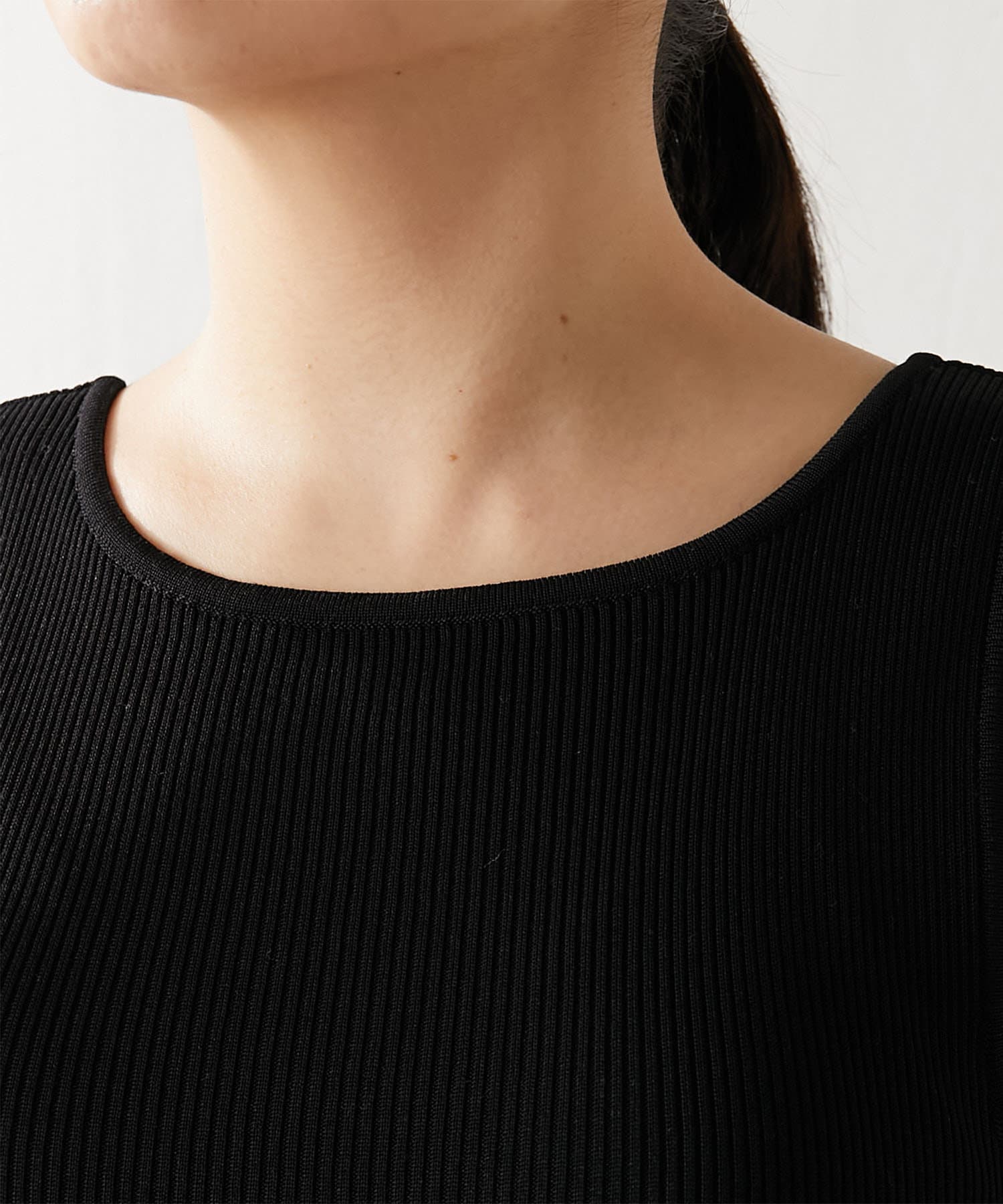 ■程よく厚みのある18ゲージのきれいなリブニットで、一枚でも楽しめるデザイン。