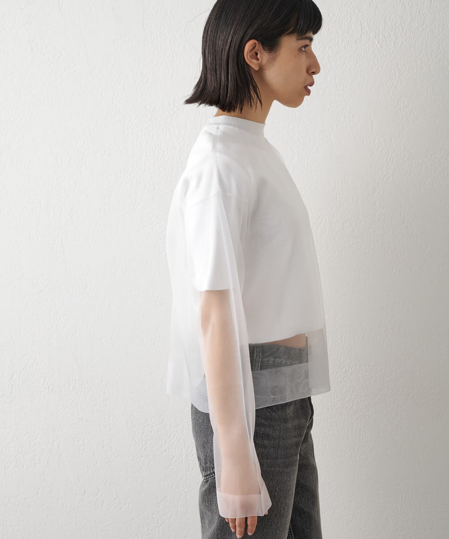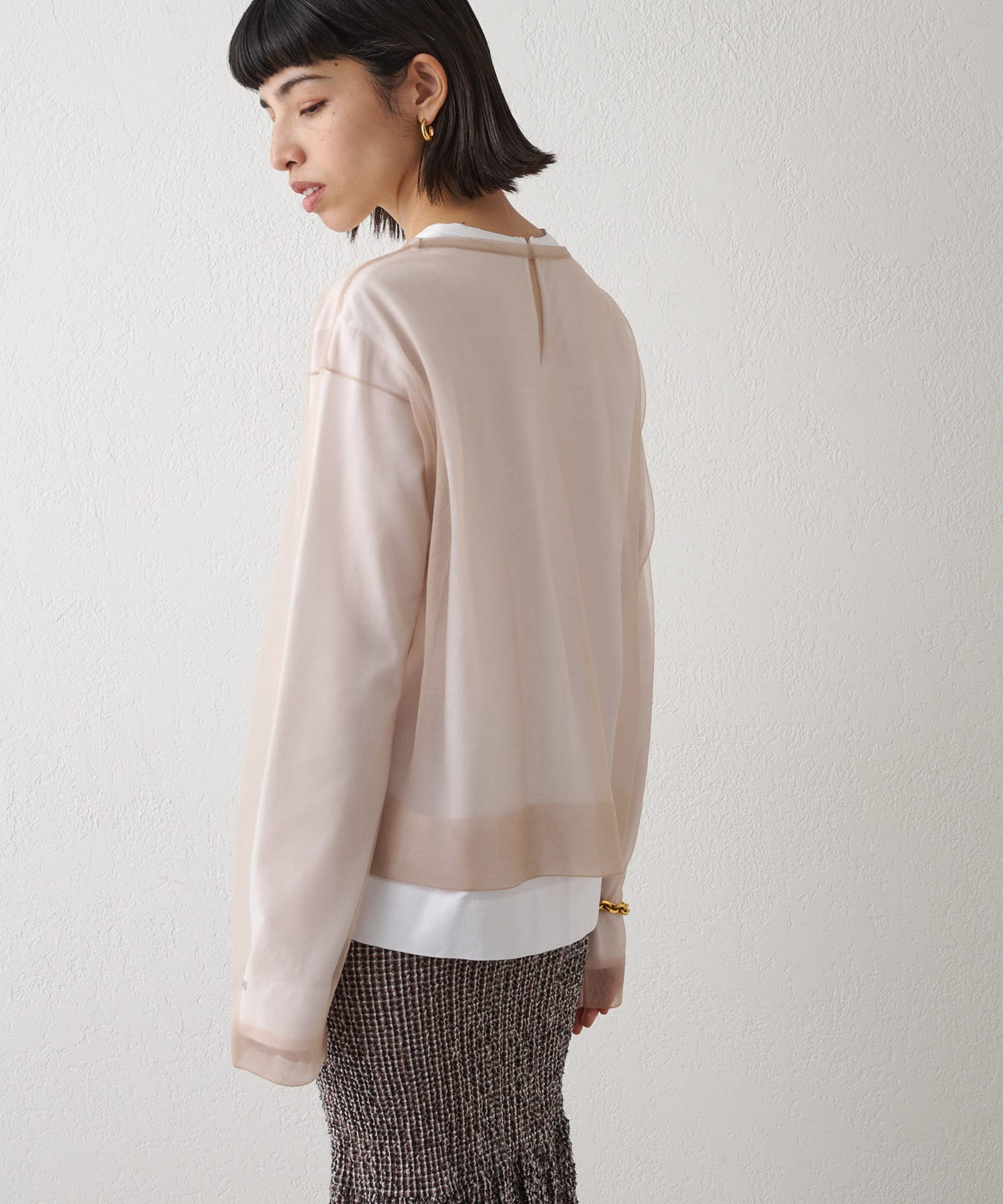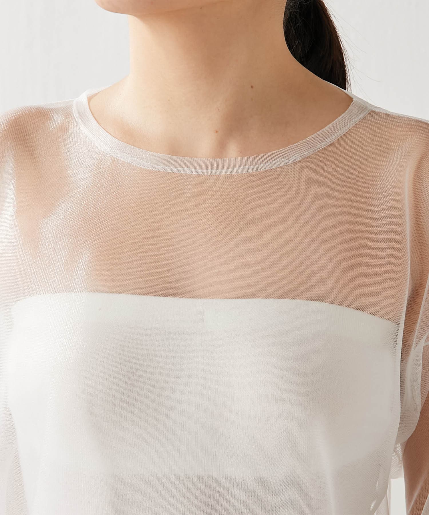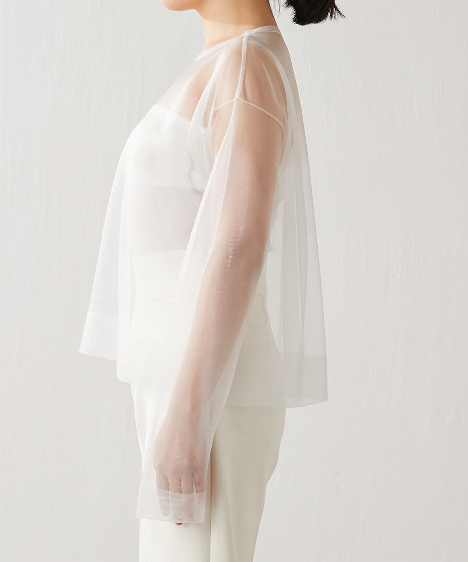 ■大胆な透け感がポイントのシアープルオーバー。