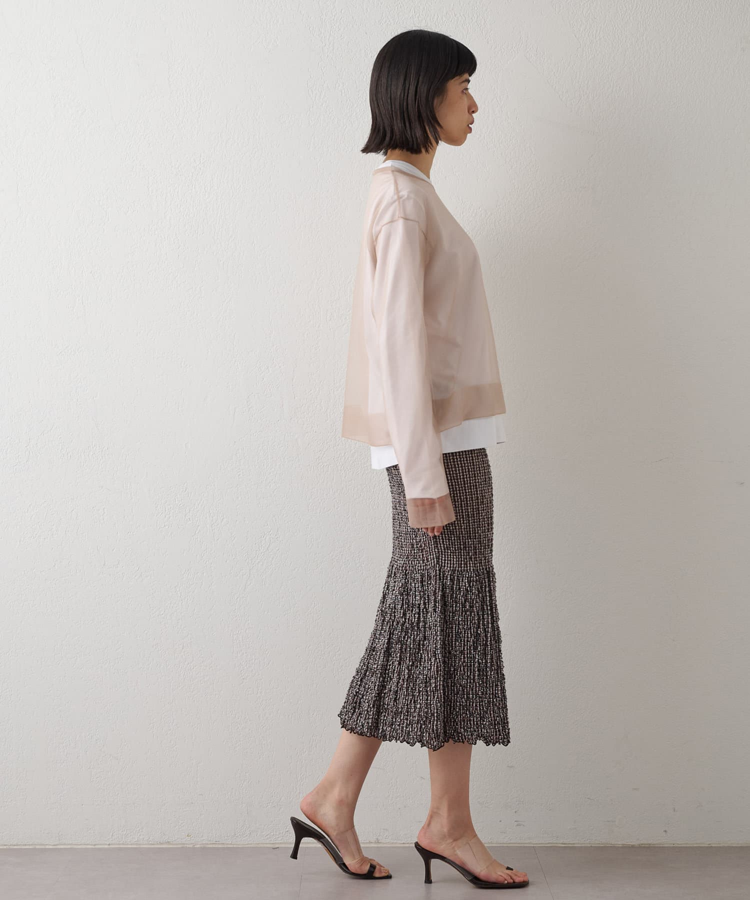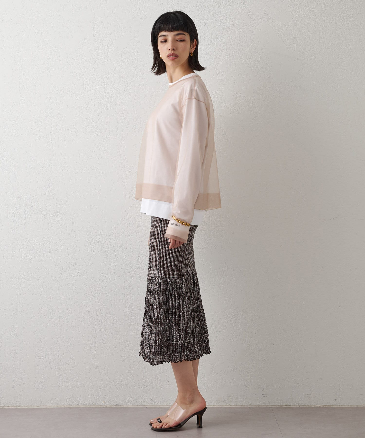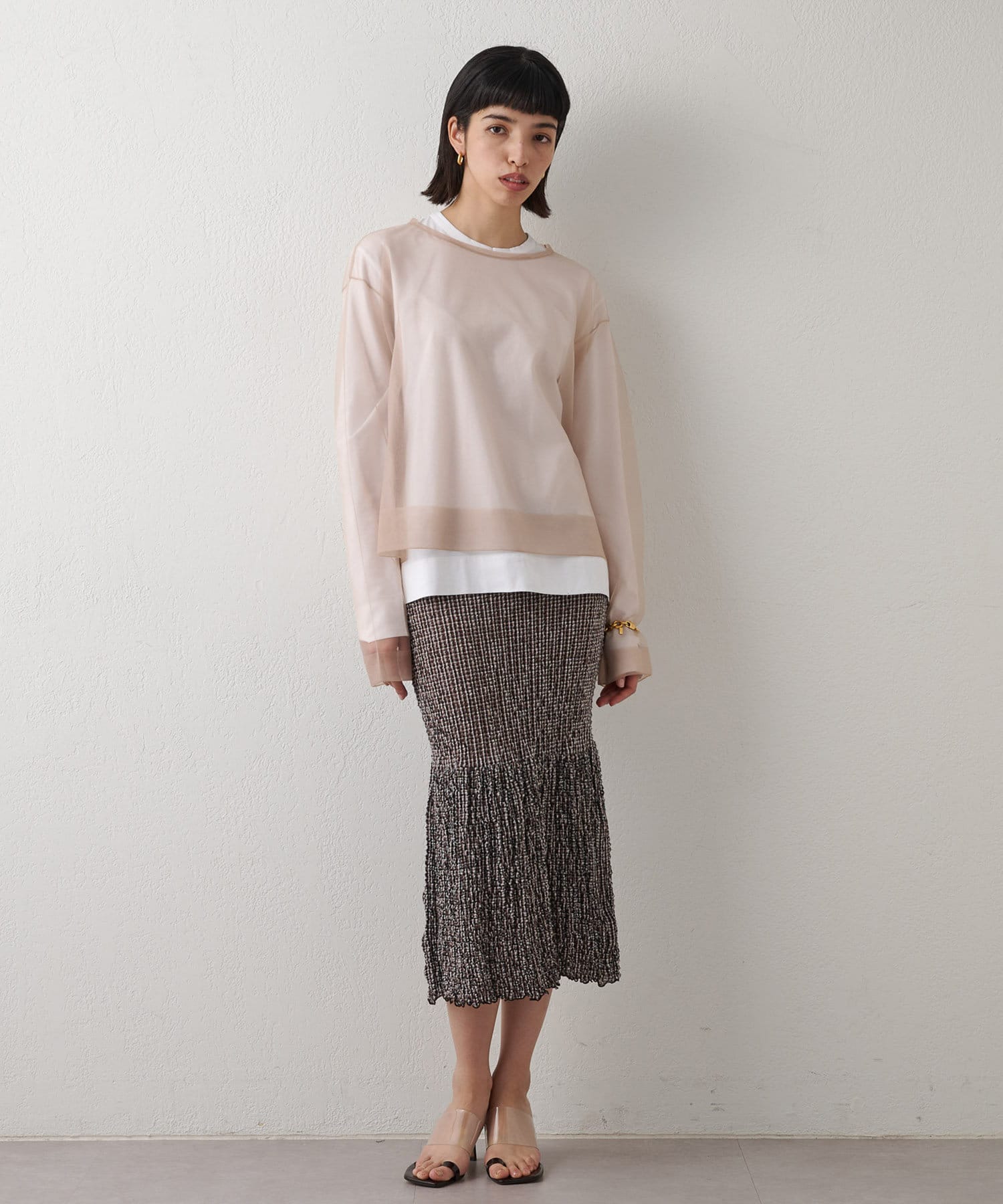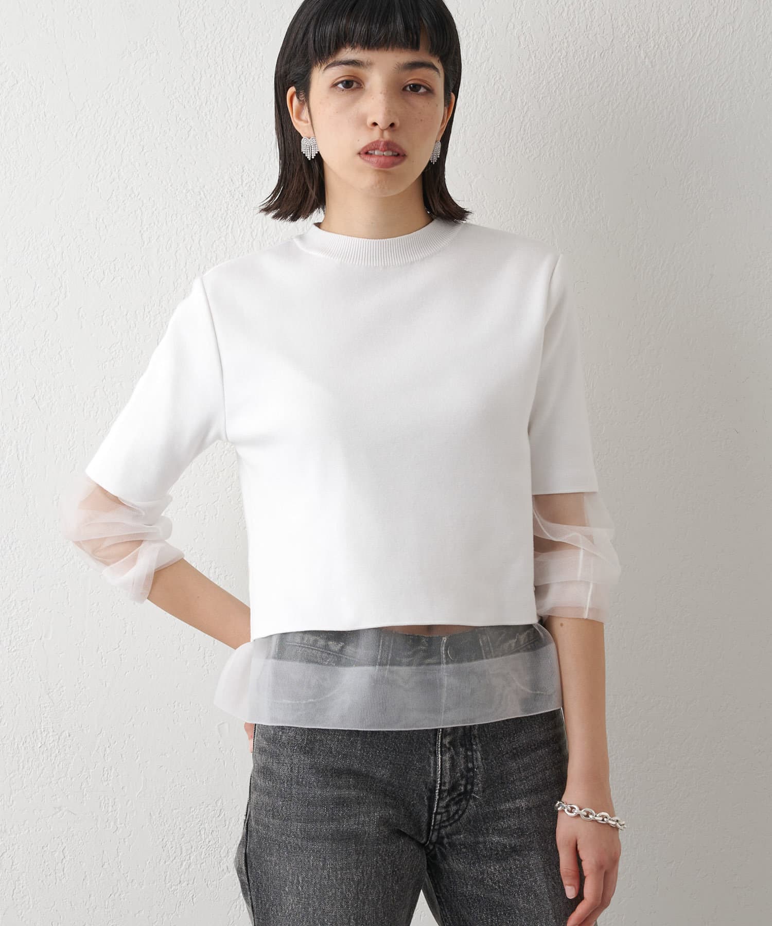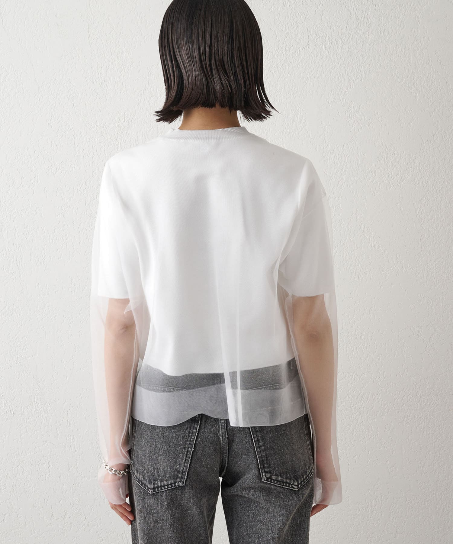 ■大胆な透け感がポイントのシアープルオーバー。