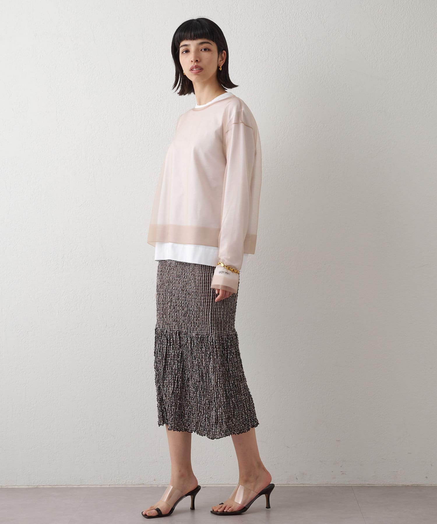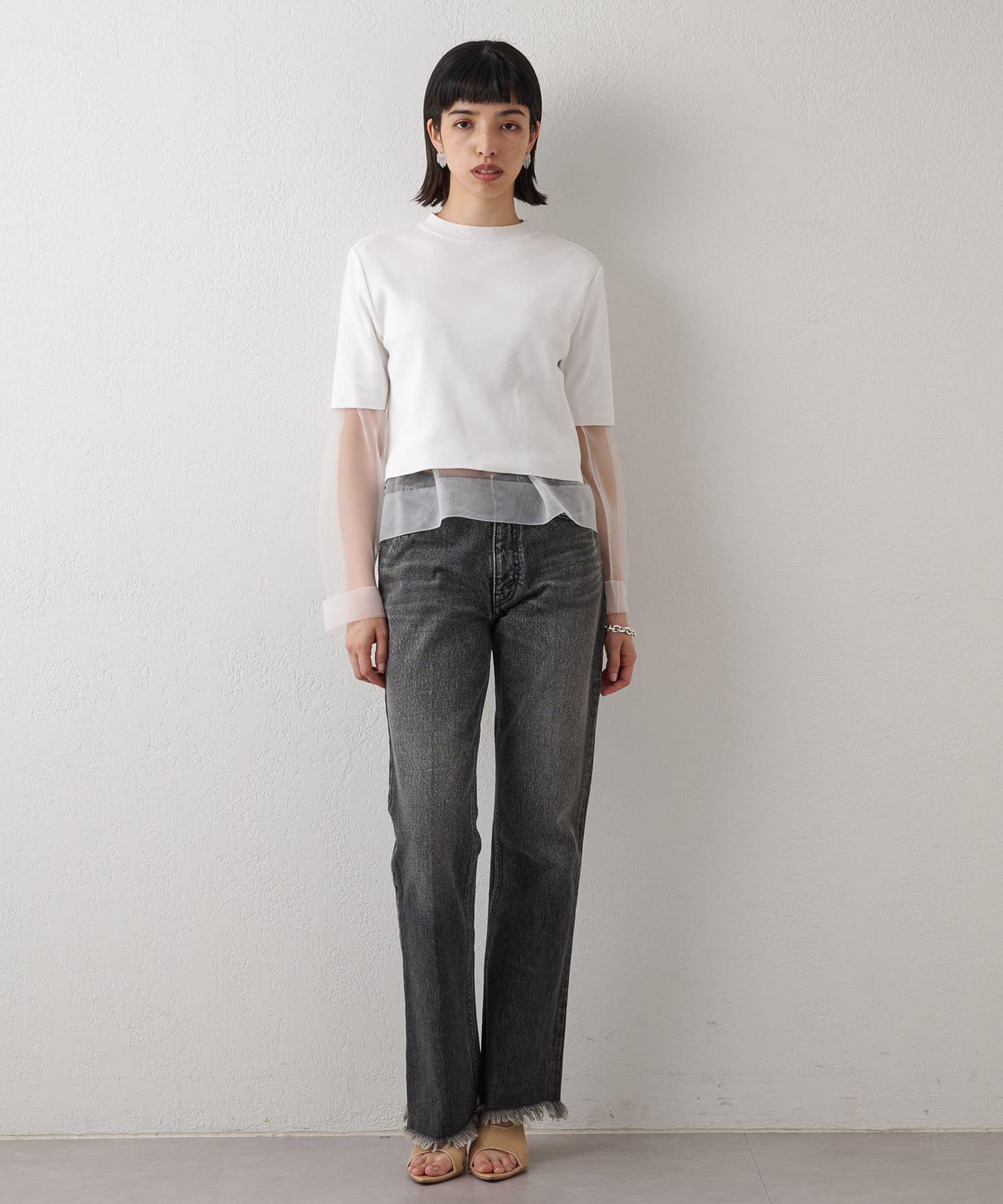 ■上からレイヤードするだけでなく、半袖トップスの下に重ねていつもと違うレイヤードスタイルを楽しんだり、幅広いアレンジの効くアイテム。