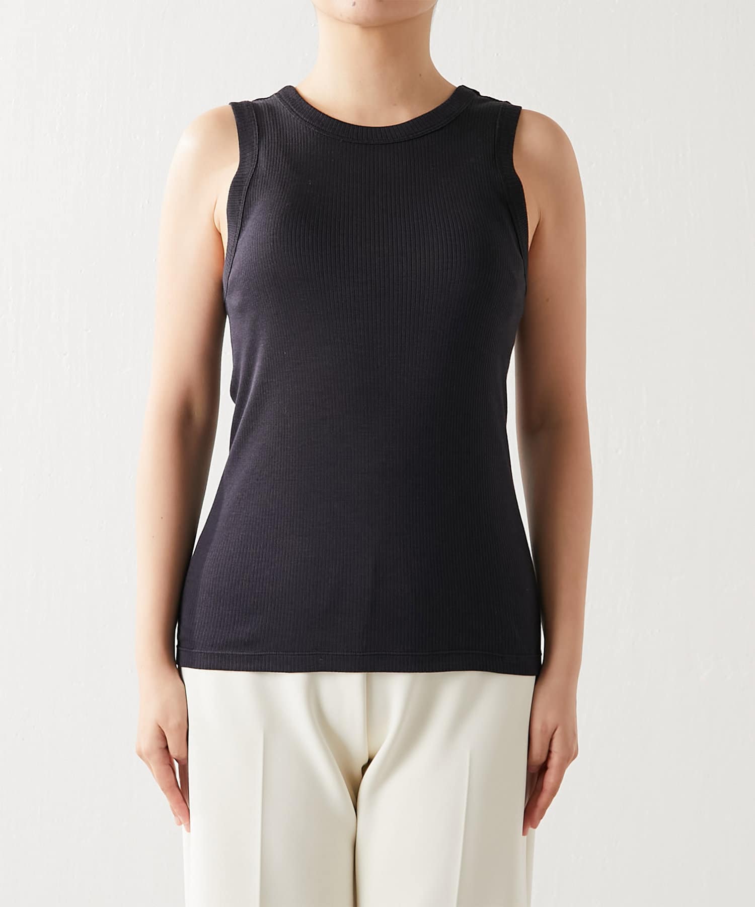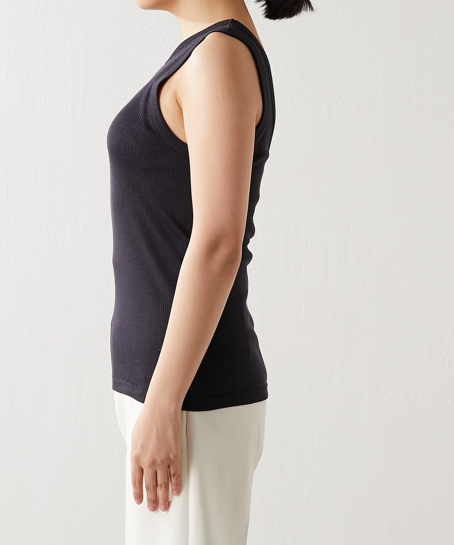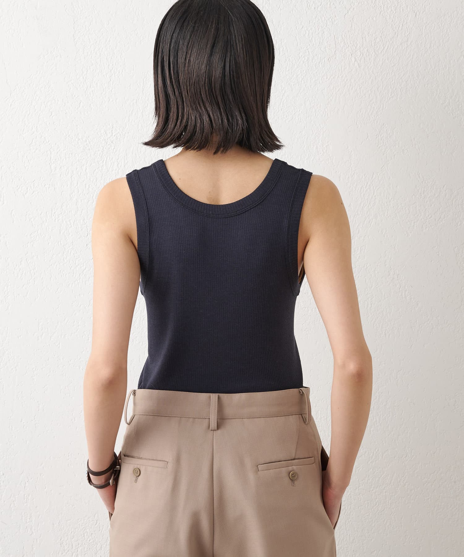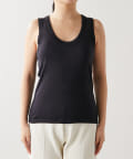 シルクの光沢が上品なタンクトップ。前後ろ、両方でお楽しみいただけます。インナーとしてだけではもったいない、一枚で着ても素敵なアイテム。大人こそ、タンクトップにこだわりたいですよね。