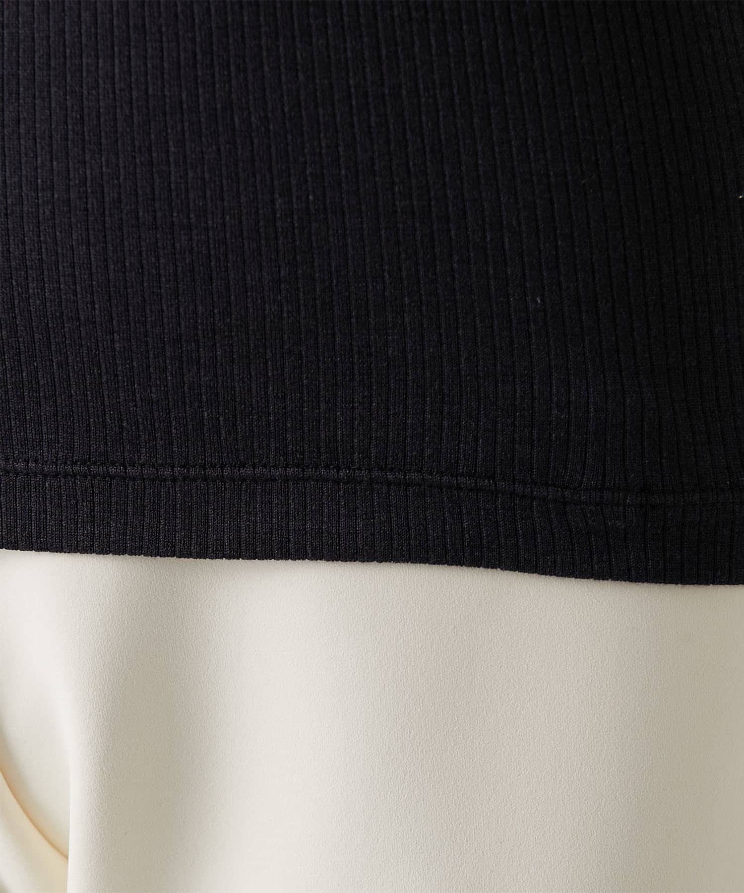 ■コーディネートや気分に合わせて、前後どちらでも着用できる2way仕様の衿ぐりデザイン。