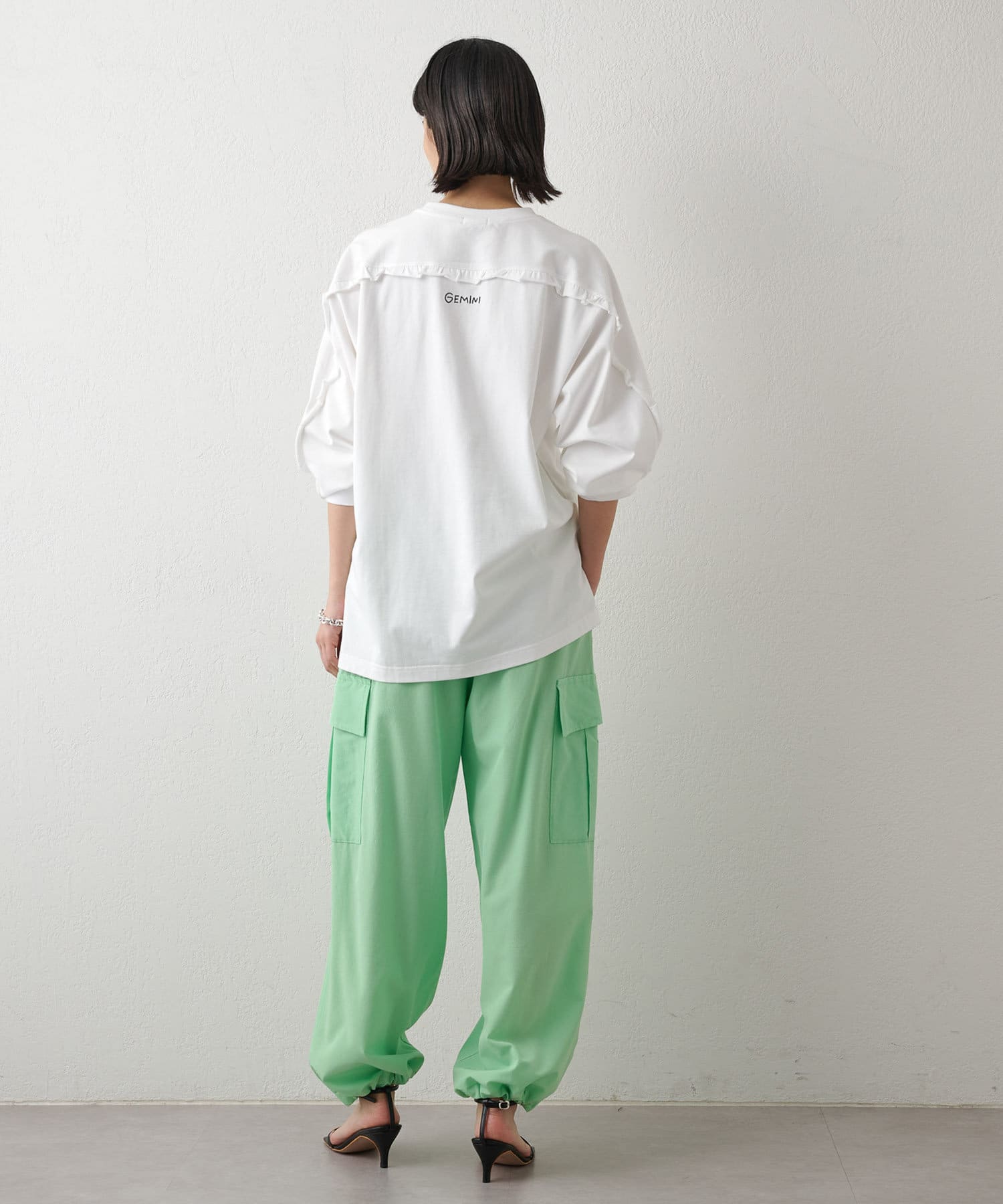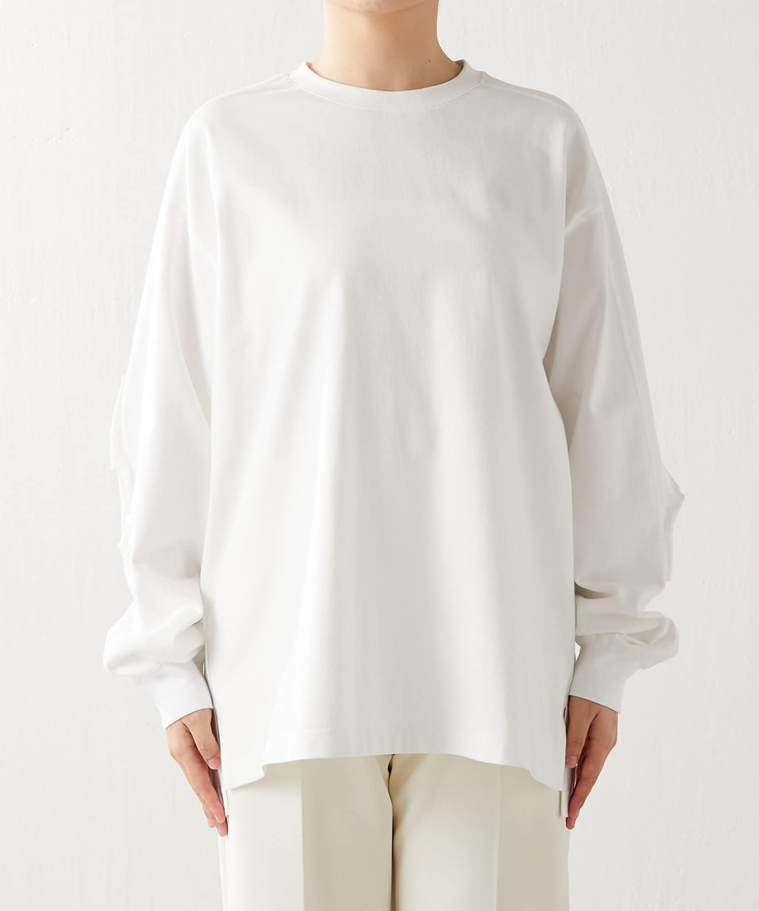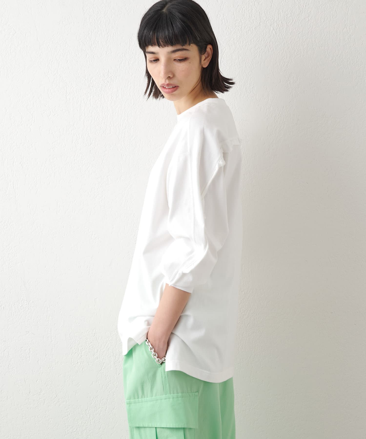 さりげなく甘さを添えた、大人のバックフリルロンT