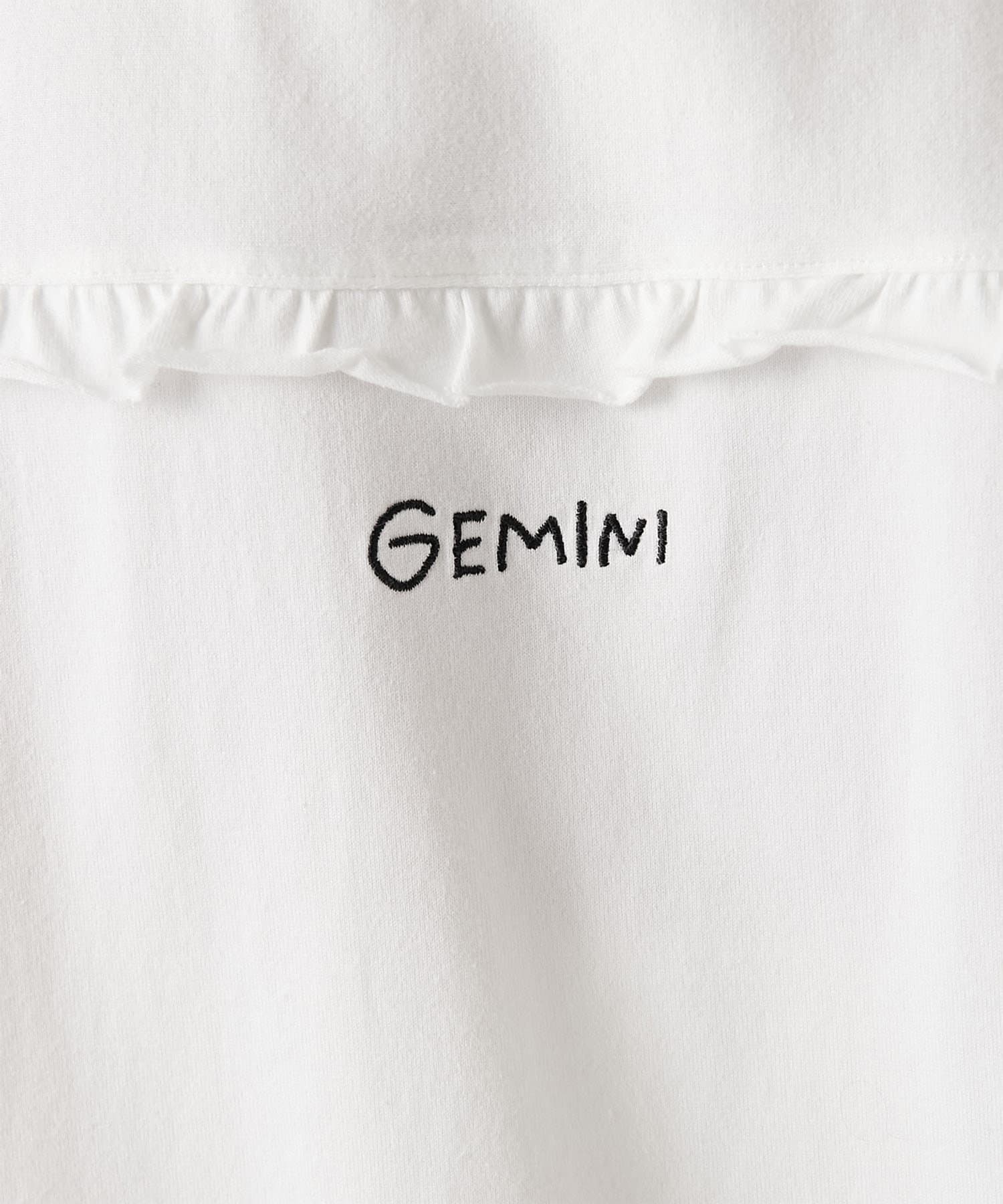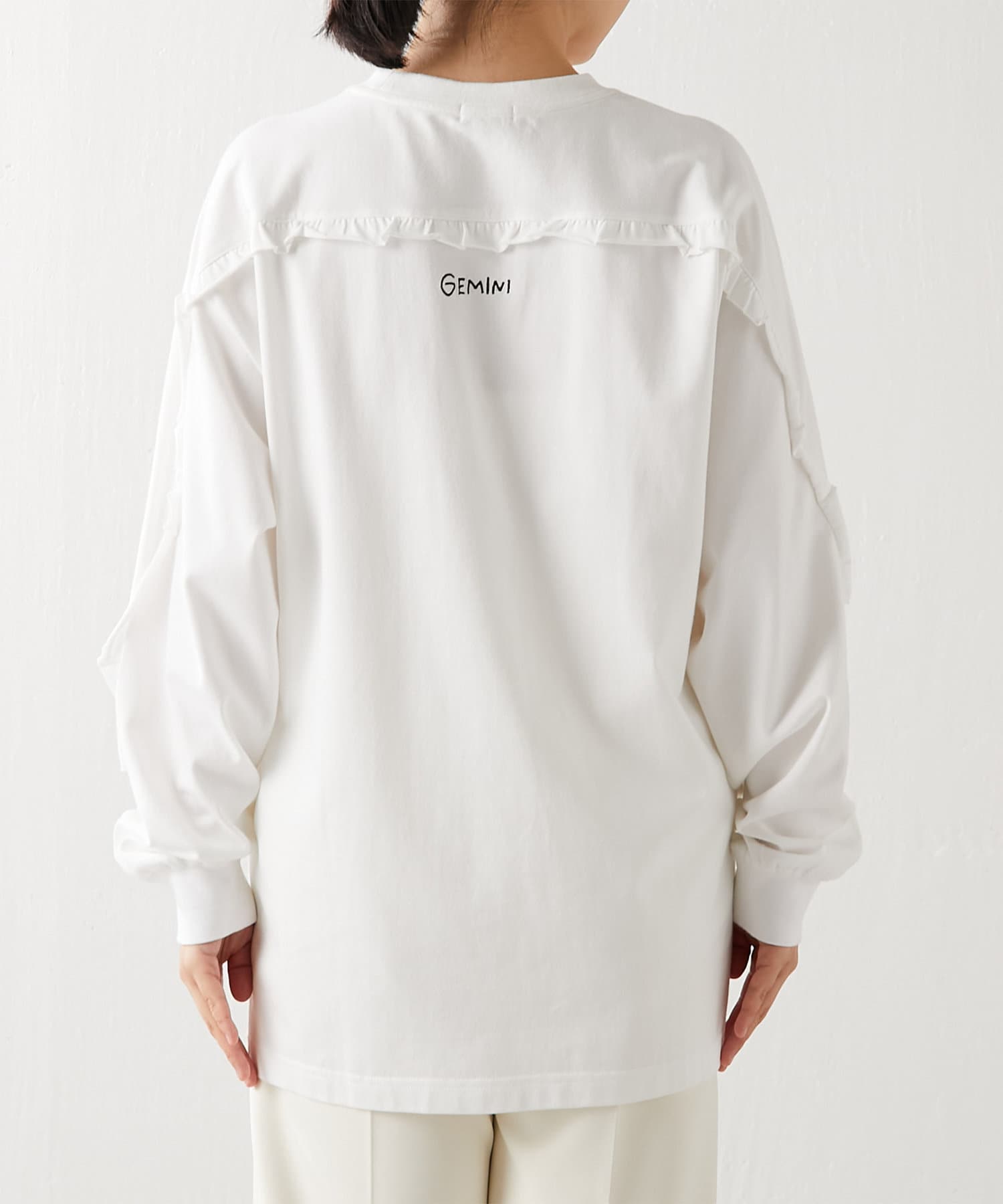 ■フットボールシャツのような切替えにフリルを挟み込んだロングスリーブTシャツ。