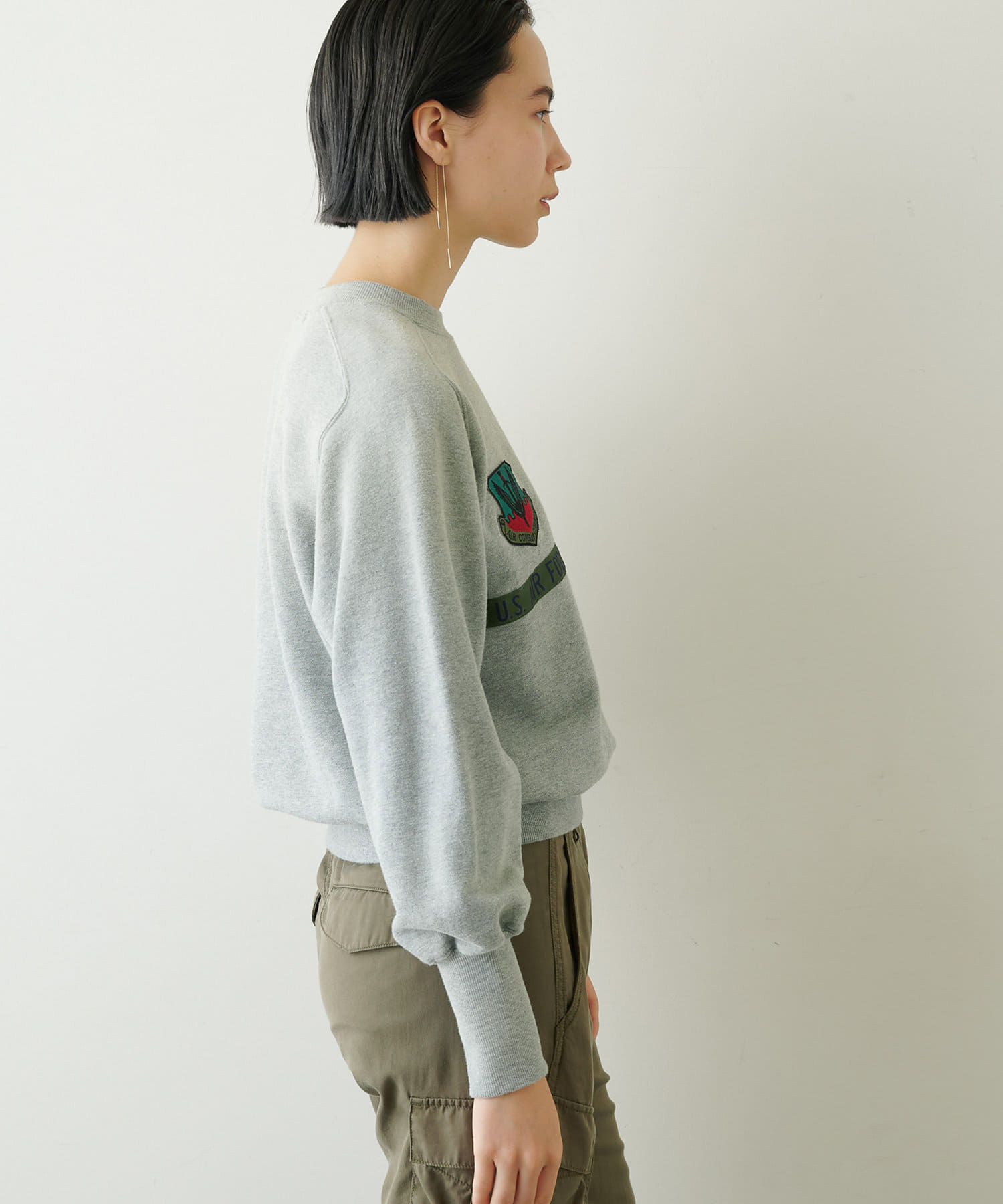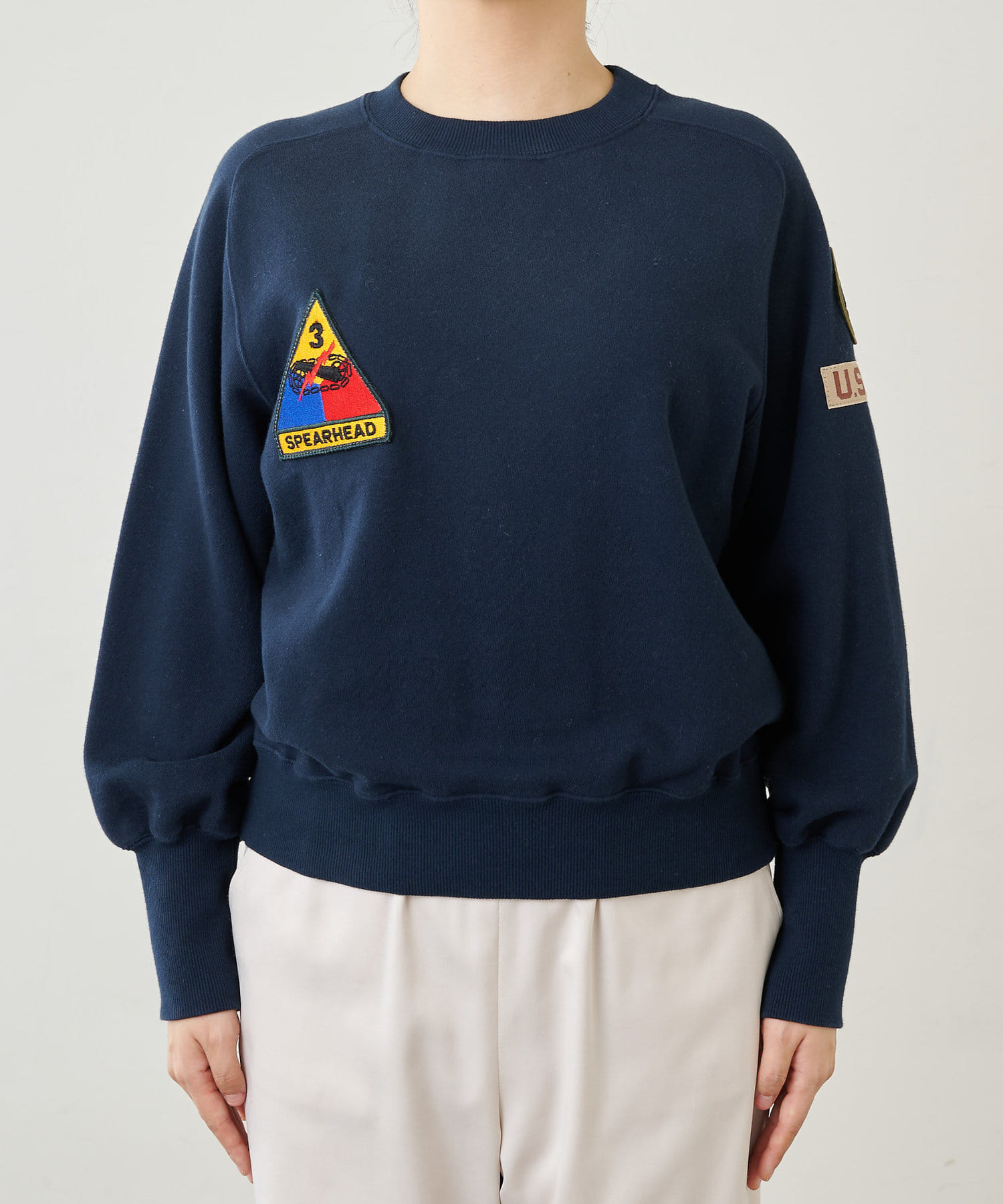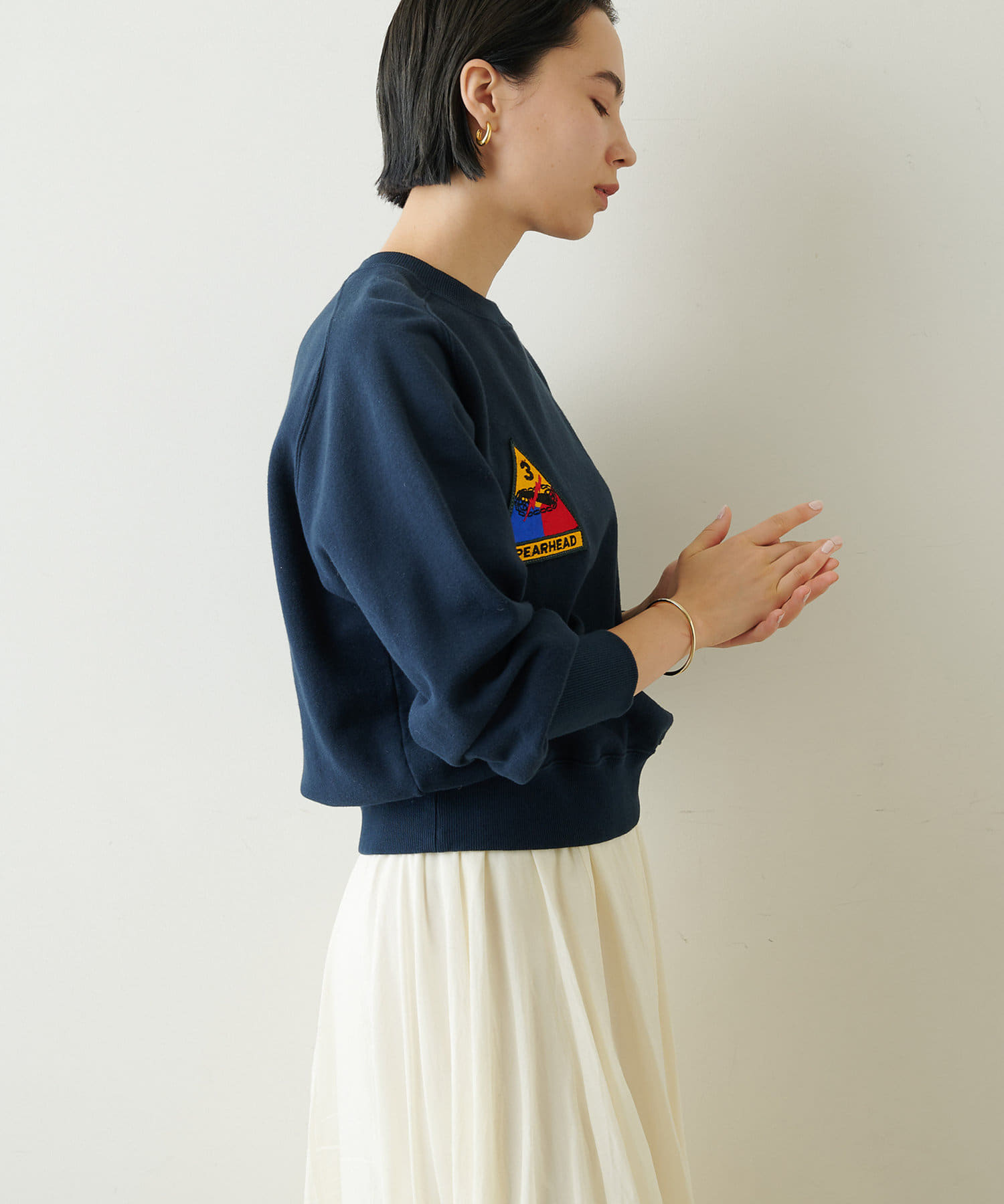 ■ヴィンテージなワッペンがアクセントになったスウェットプルオーバー。