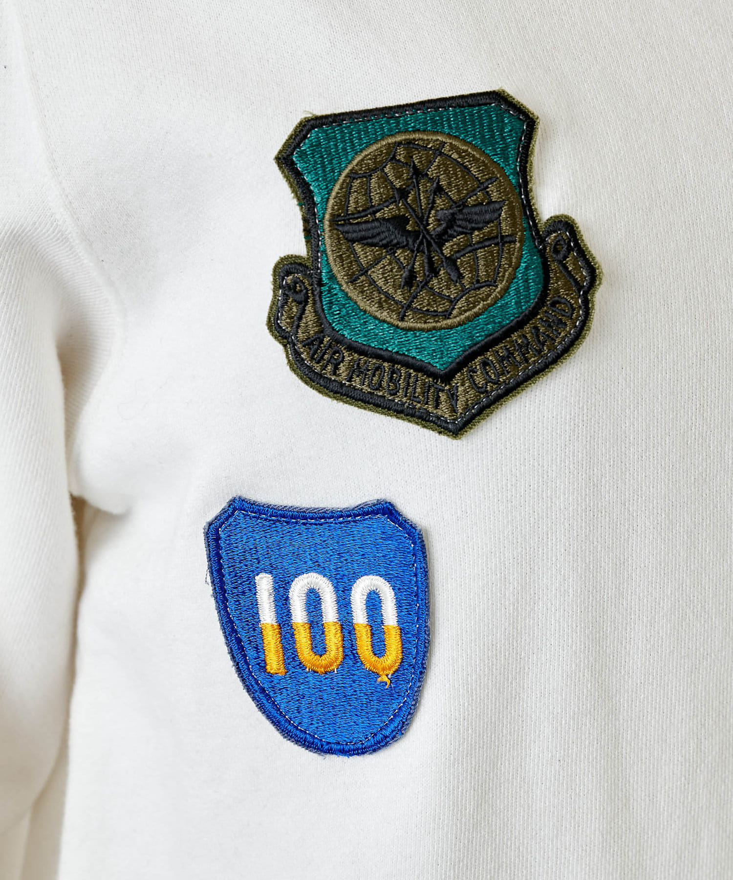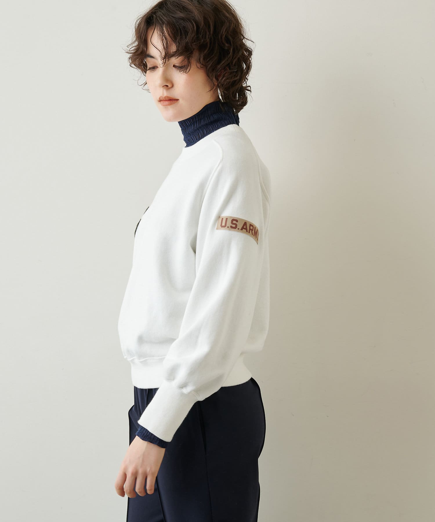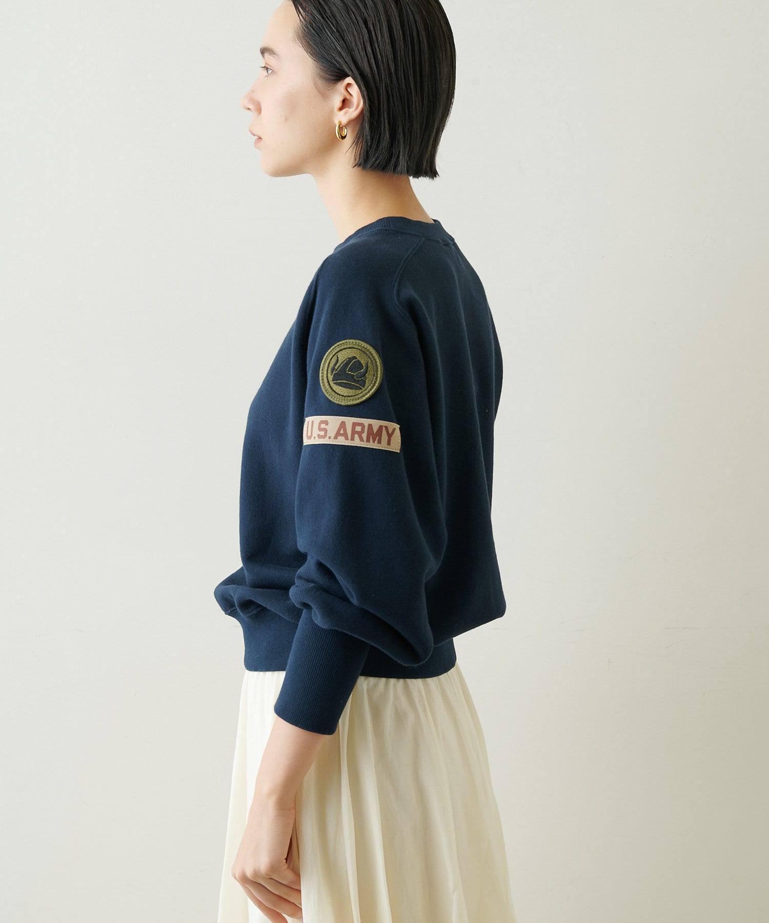■ヴィンテージなワッペンがアクセントになったスウェットプルオーバー。