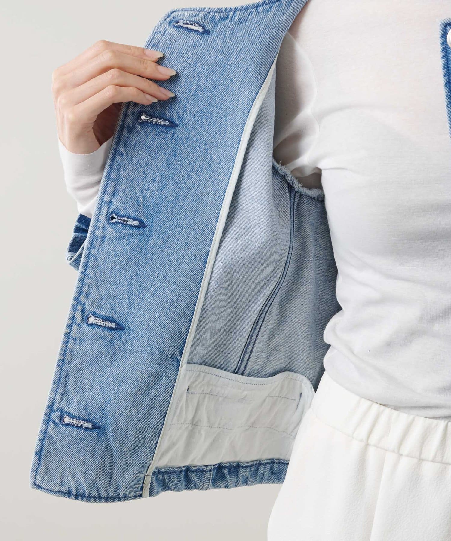 TOP > Whim Gazette > レディース > ジャケット/アウター > ノーカラージャケット > DENIMクルーネックジャケット