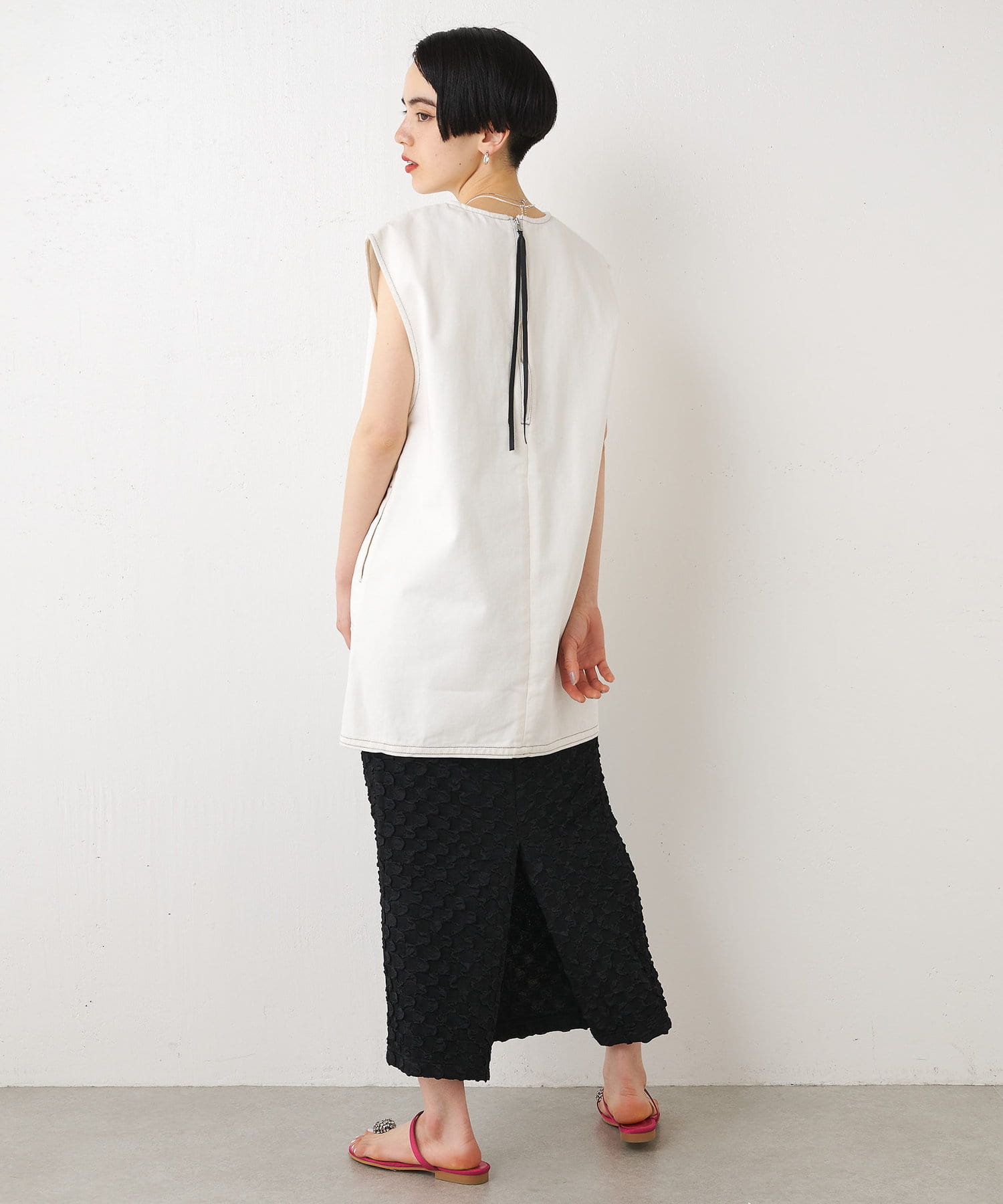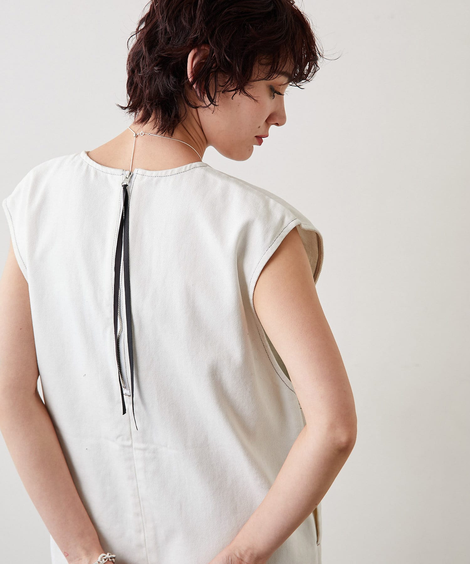 ■バックスタイルのファスナーにあしらった長めのコードで、着脱のしやすさにも配慮つつアクセントポイントに。