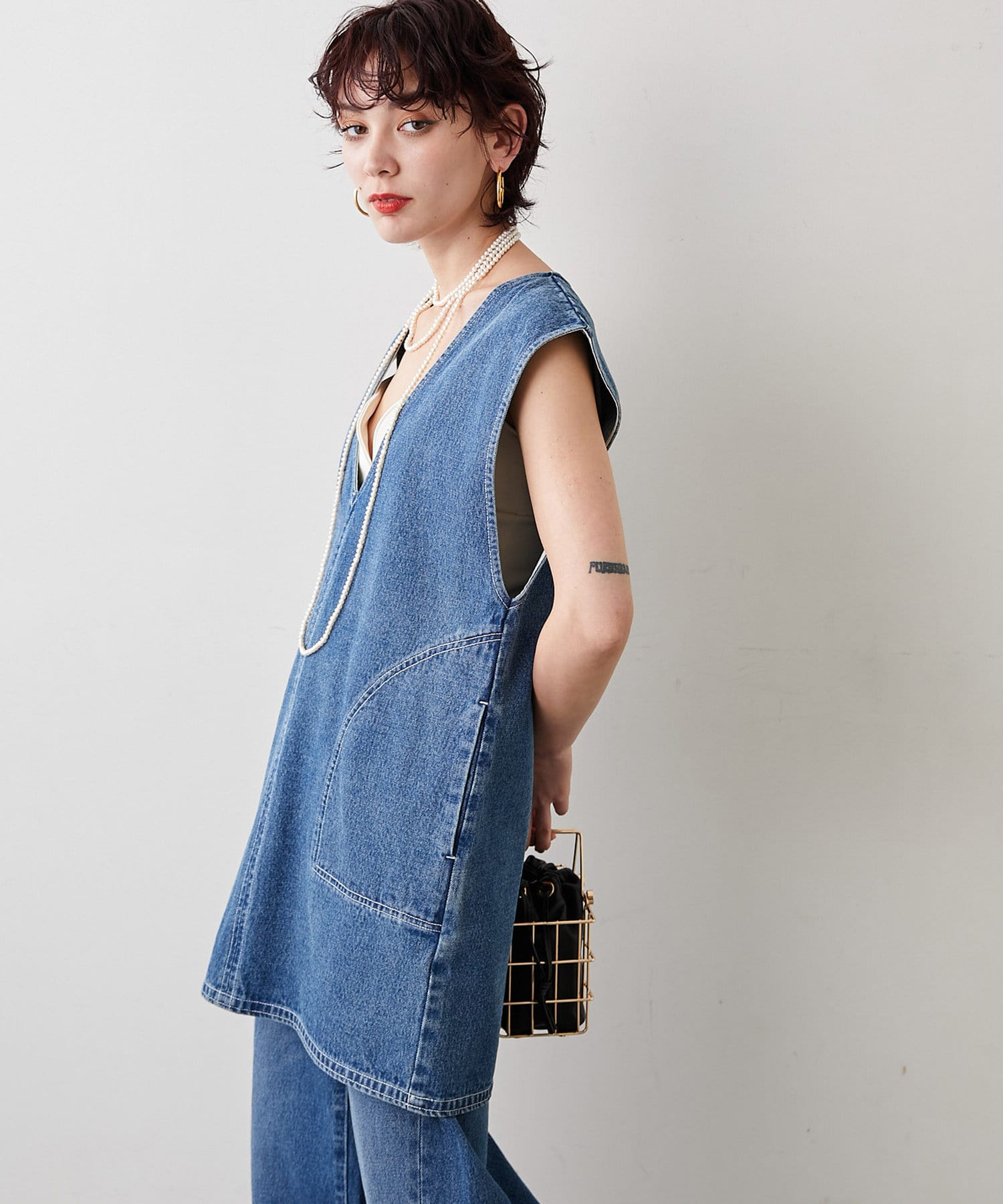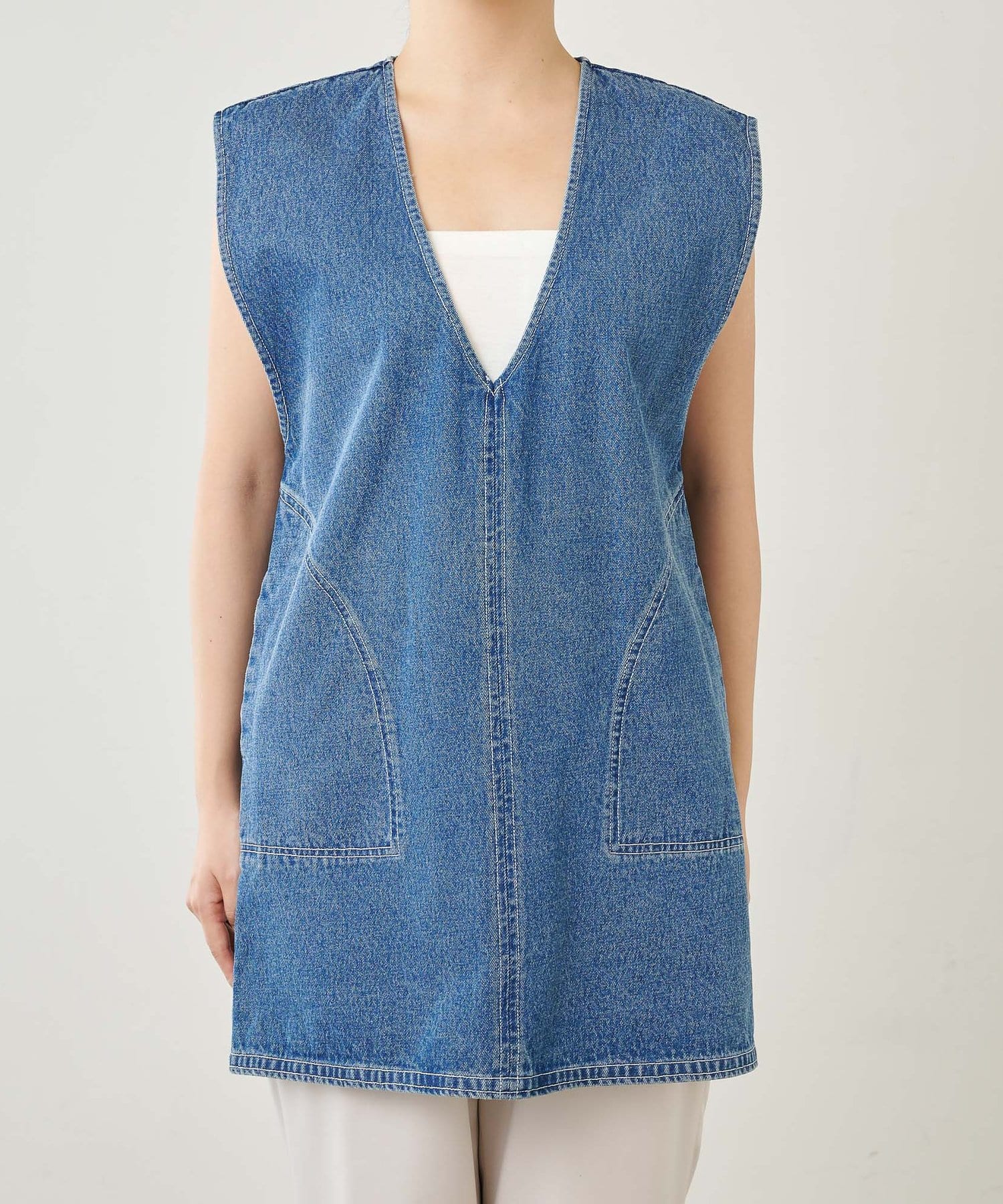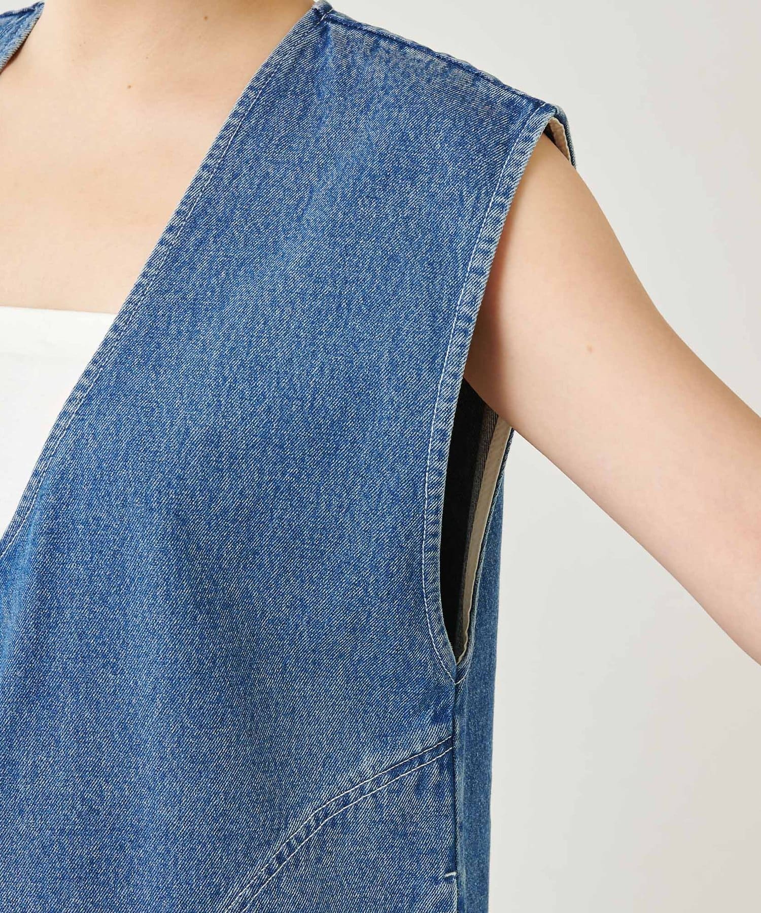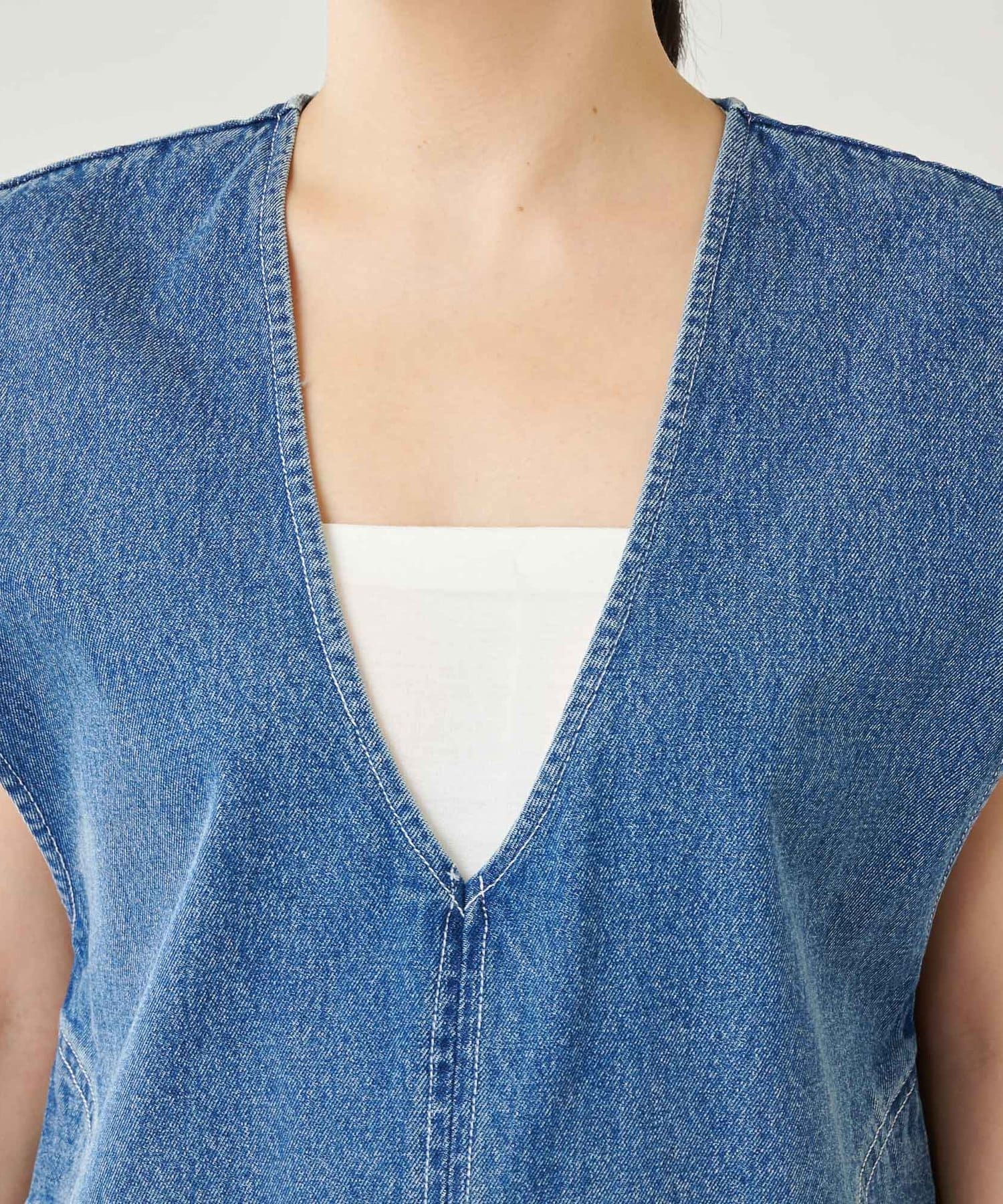 トレンドムードを叶えてくれる、深Vネックデニムジレ