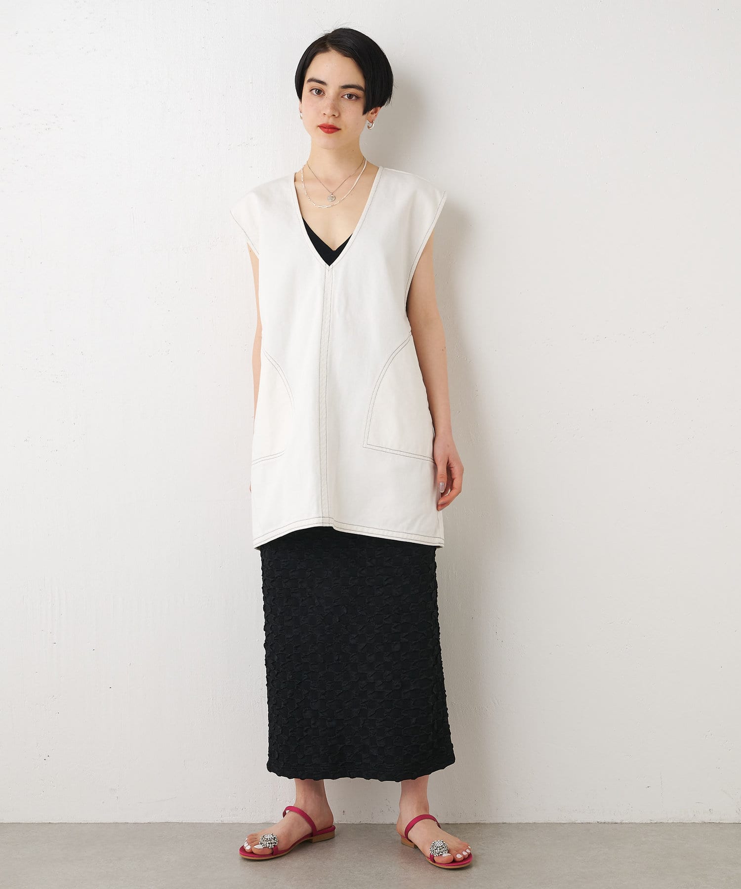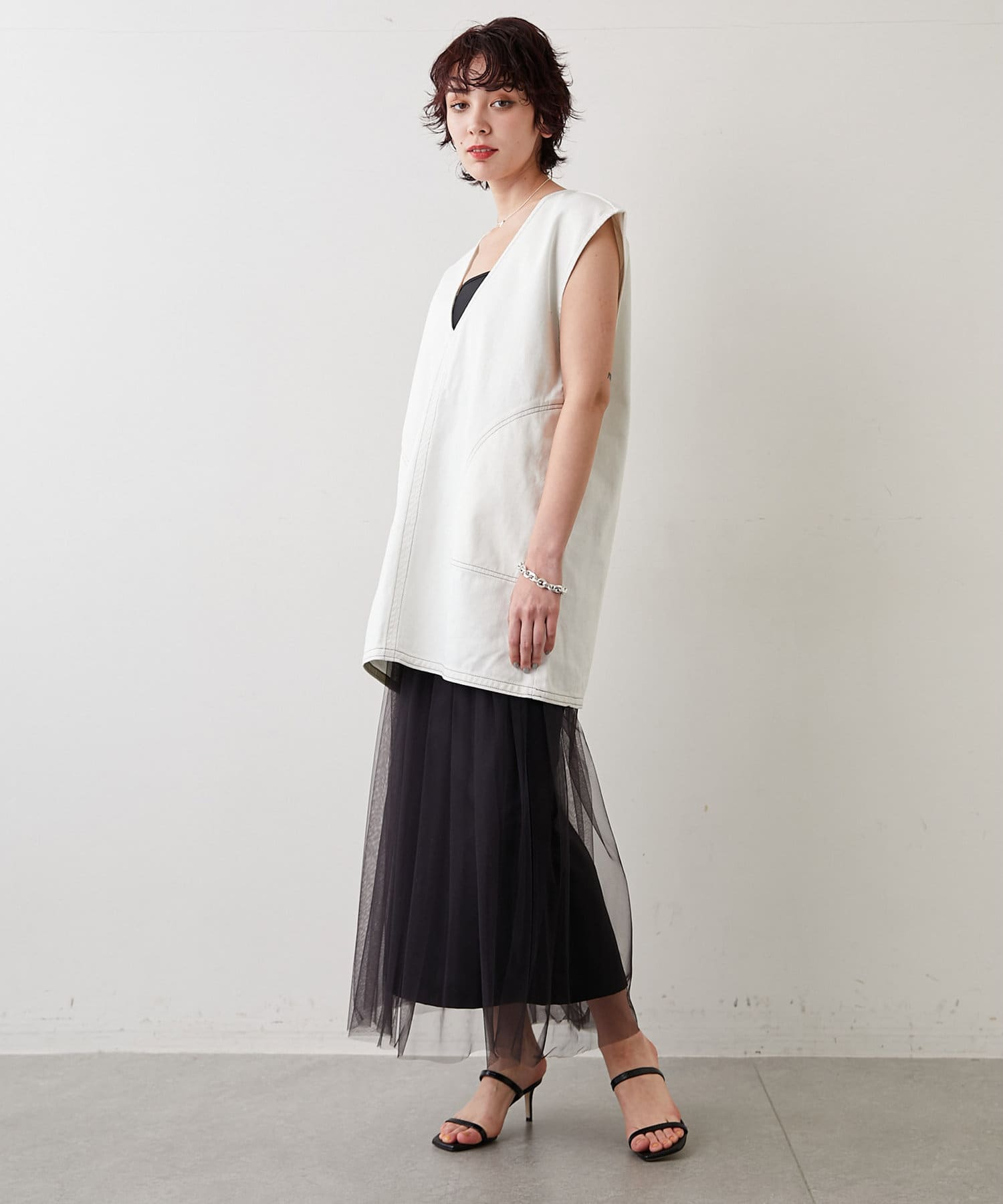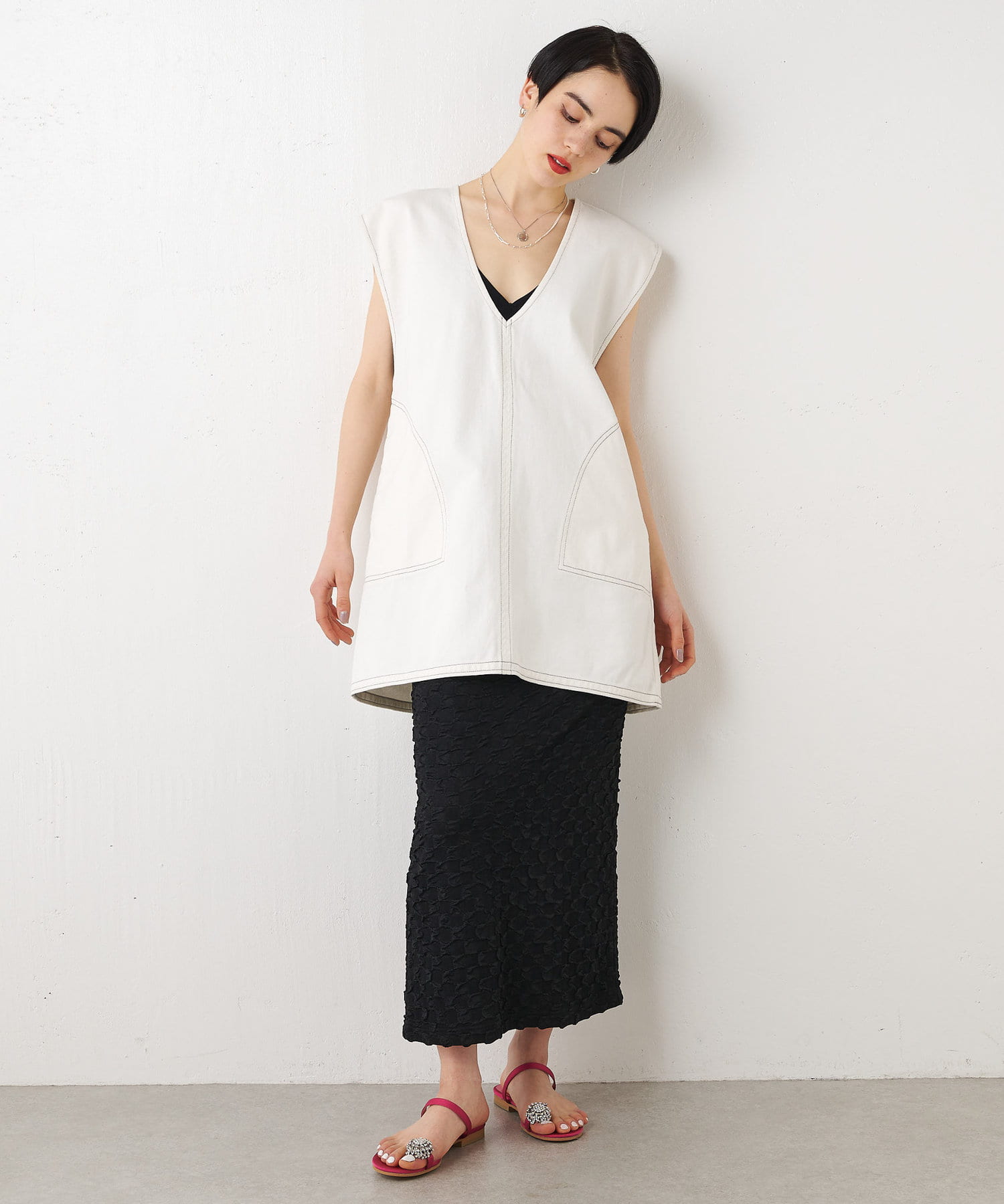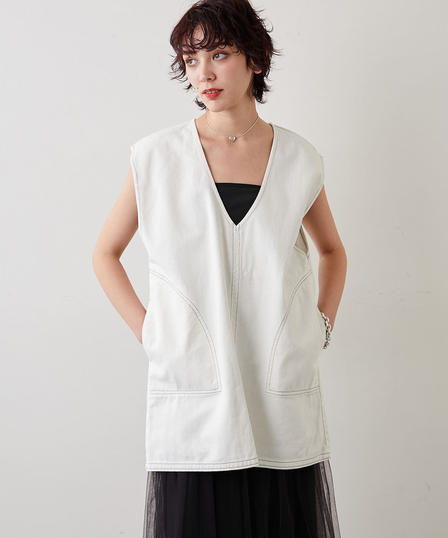 トレンドムードを叶えてくれる、深Vネックデニムジレ