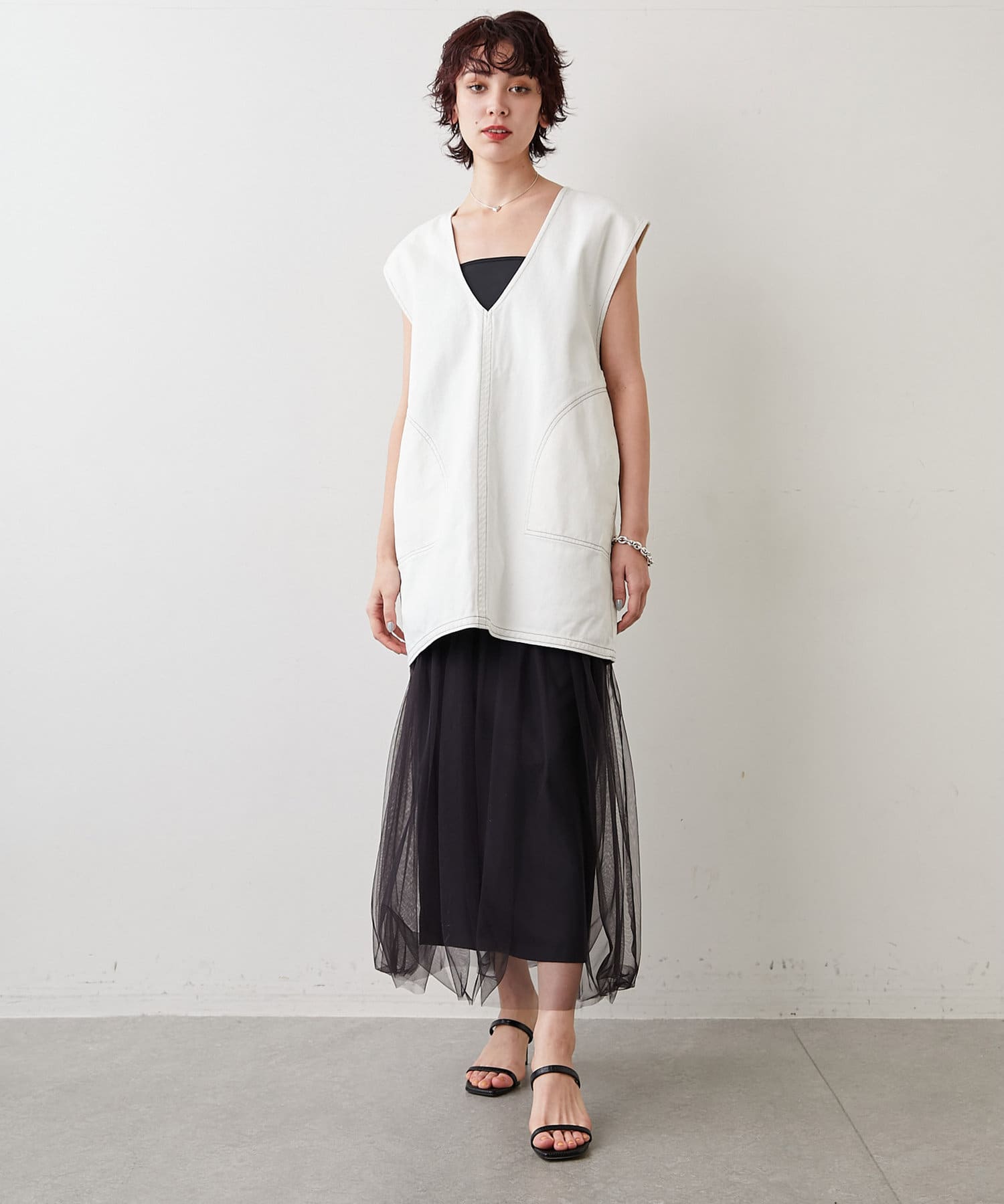 ■インナーの見える深めのVネックは、Tシャツやブラウス、ベアトップなど合わせるアイテムによって様々な着こなしを楽しめるアイテム。