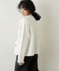 ブークレ糸・棉混・ペーパーモール・ブライトレーヨンの4種類の素材を混ぜ、ツイード調に編み上げたニット素材。