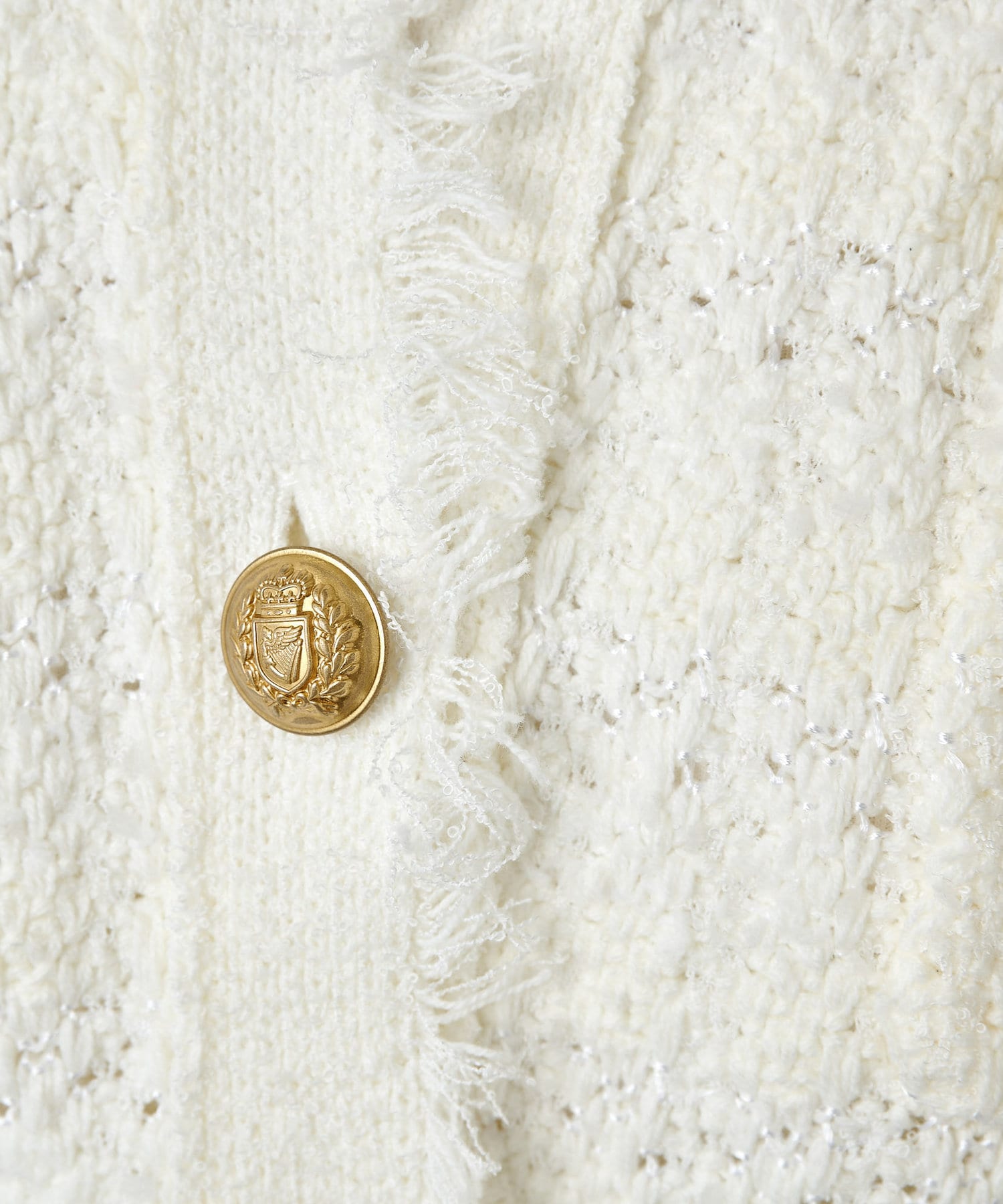 ■数種類の糸から作ったオリジナルツイードを使用したニットカーディガン。