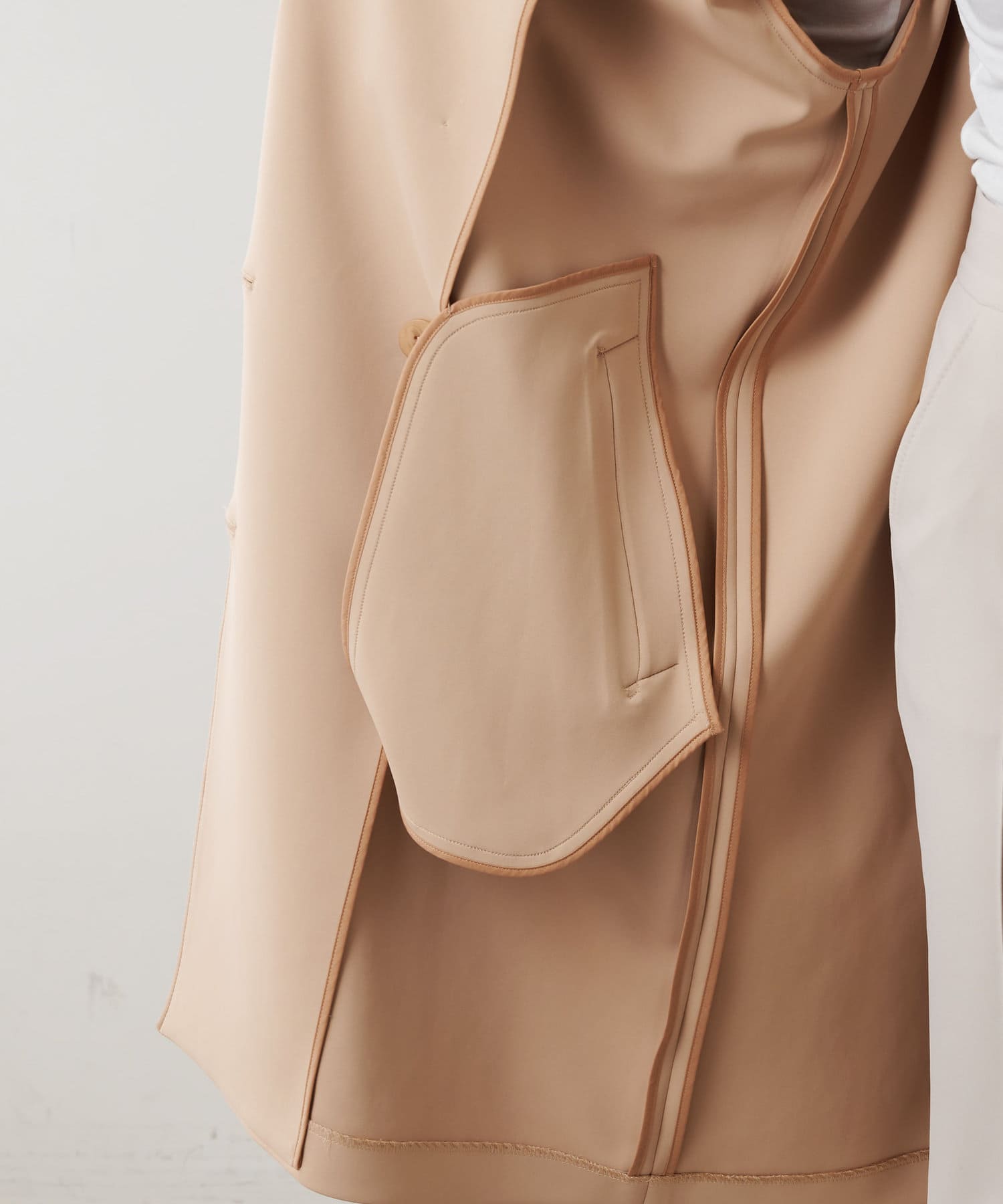■硬く見えがちなコートをダンボール素材にすることで抜け感のある佇まいに。