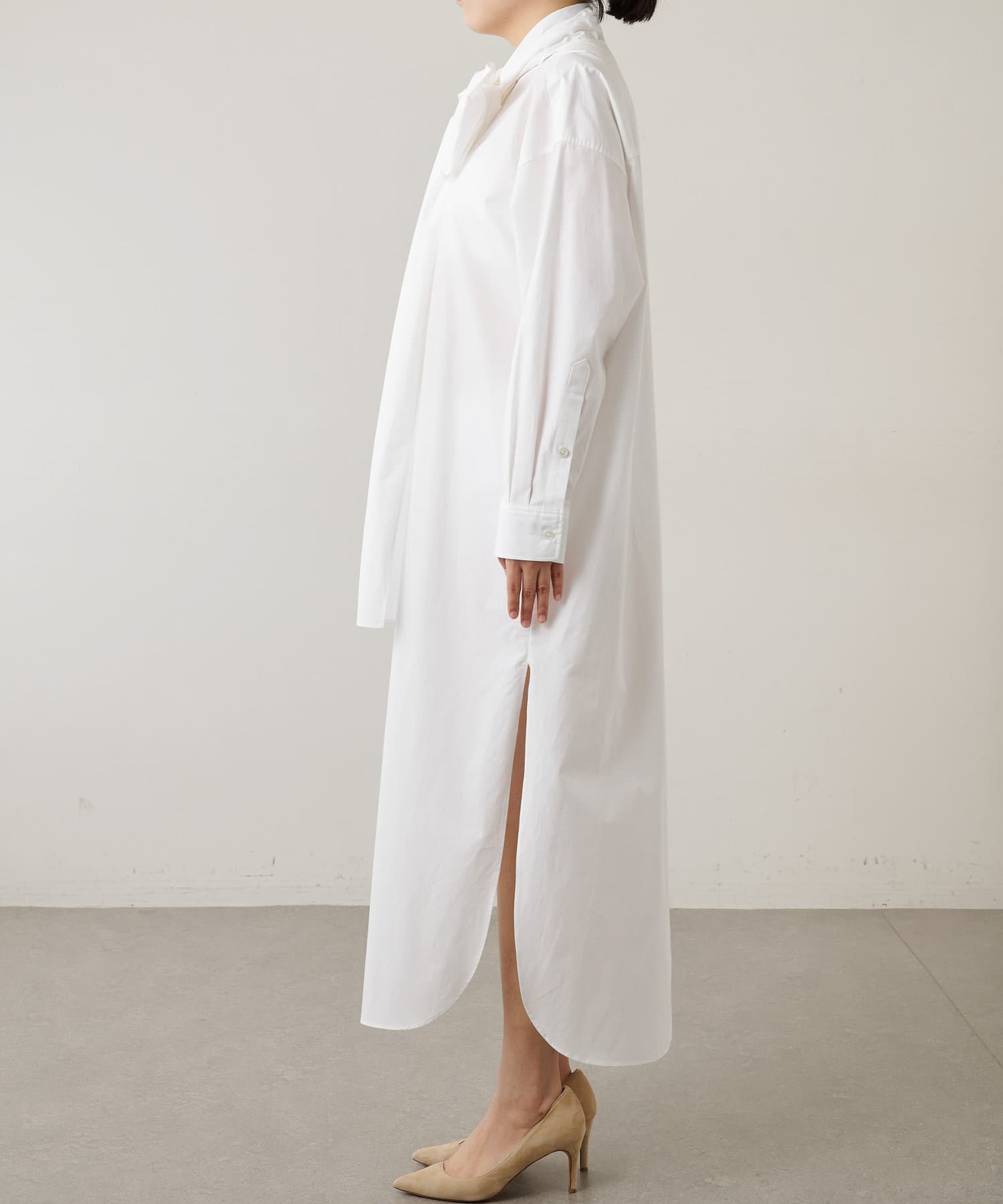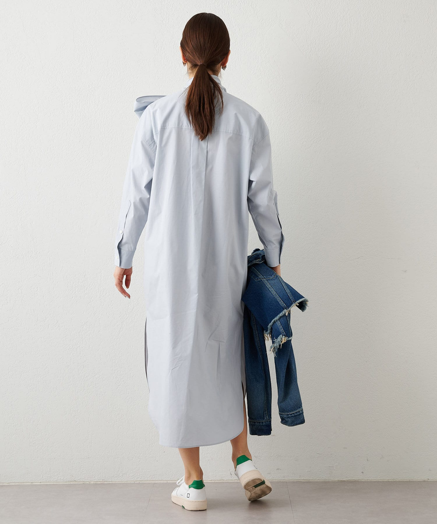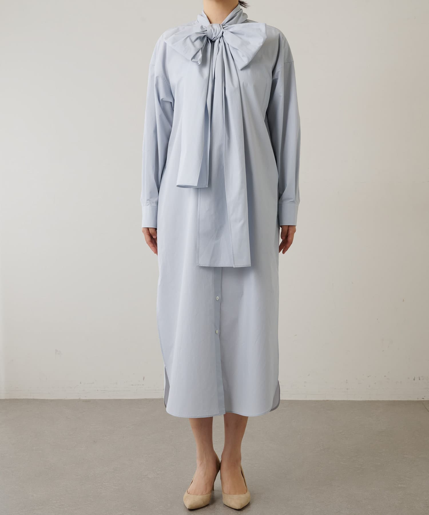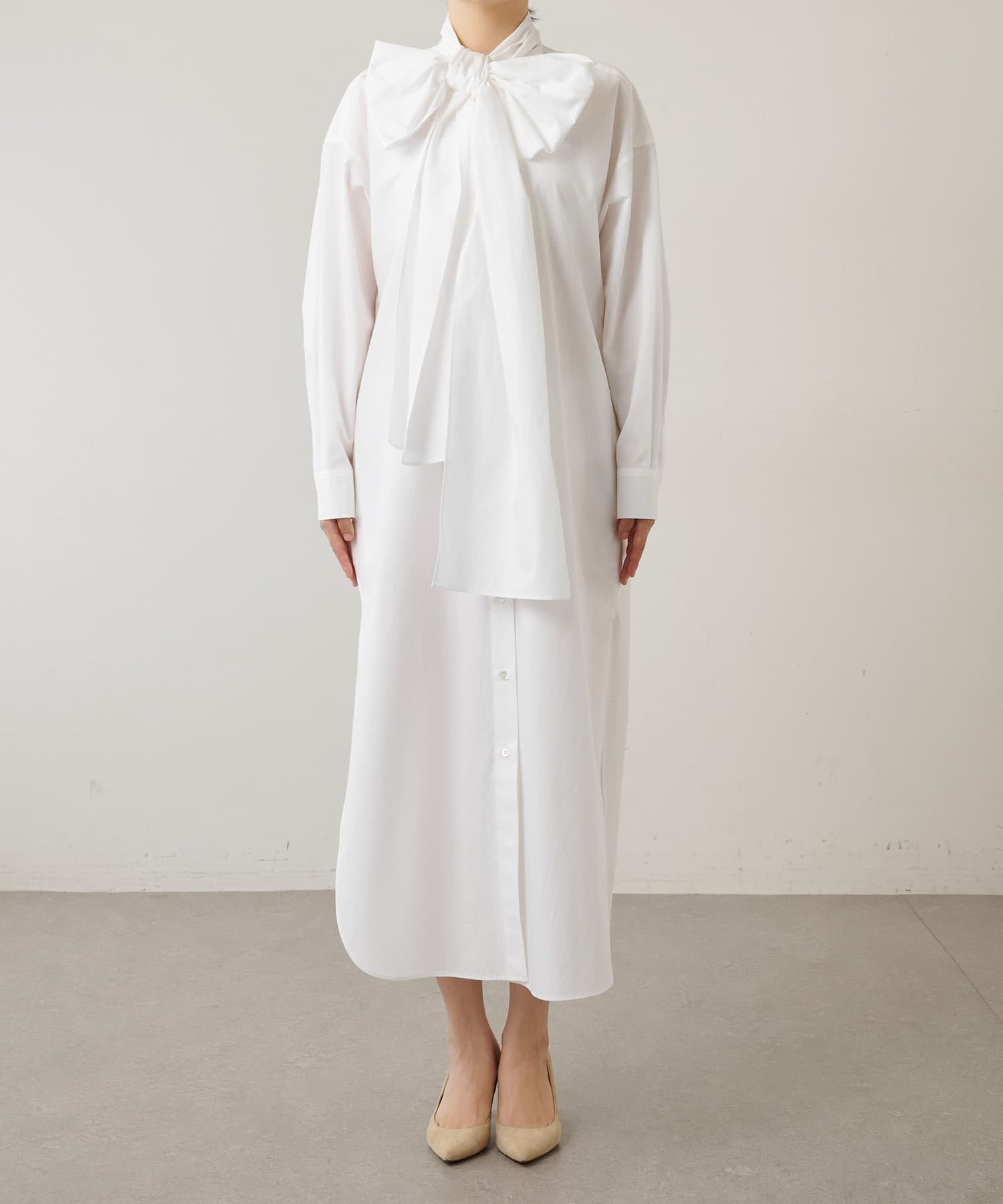 ■たっぷりとしたボウタイデザインが目を惹くシャツワンピース。