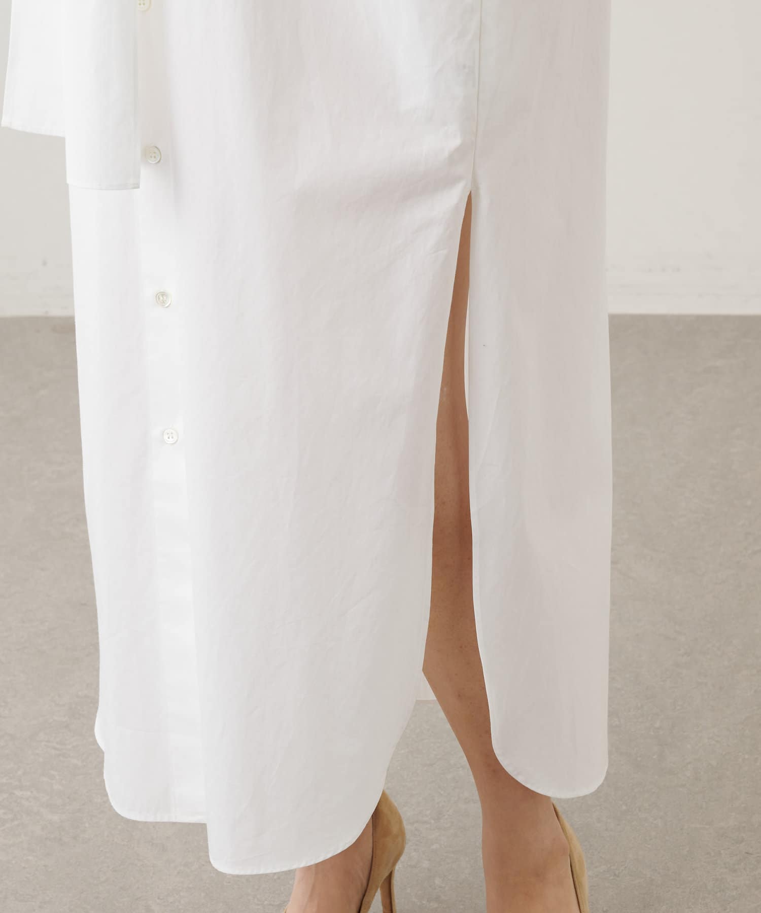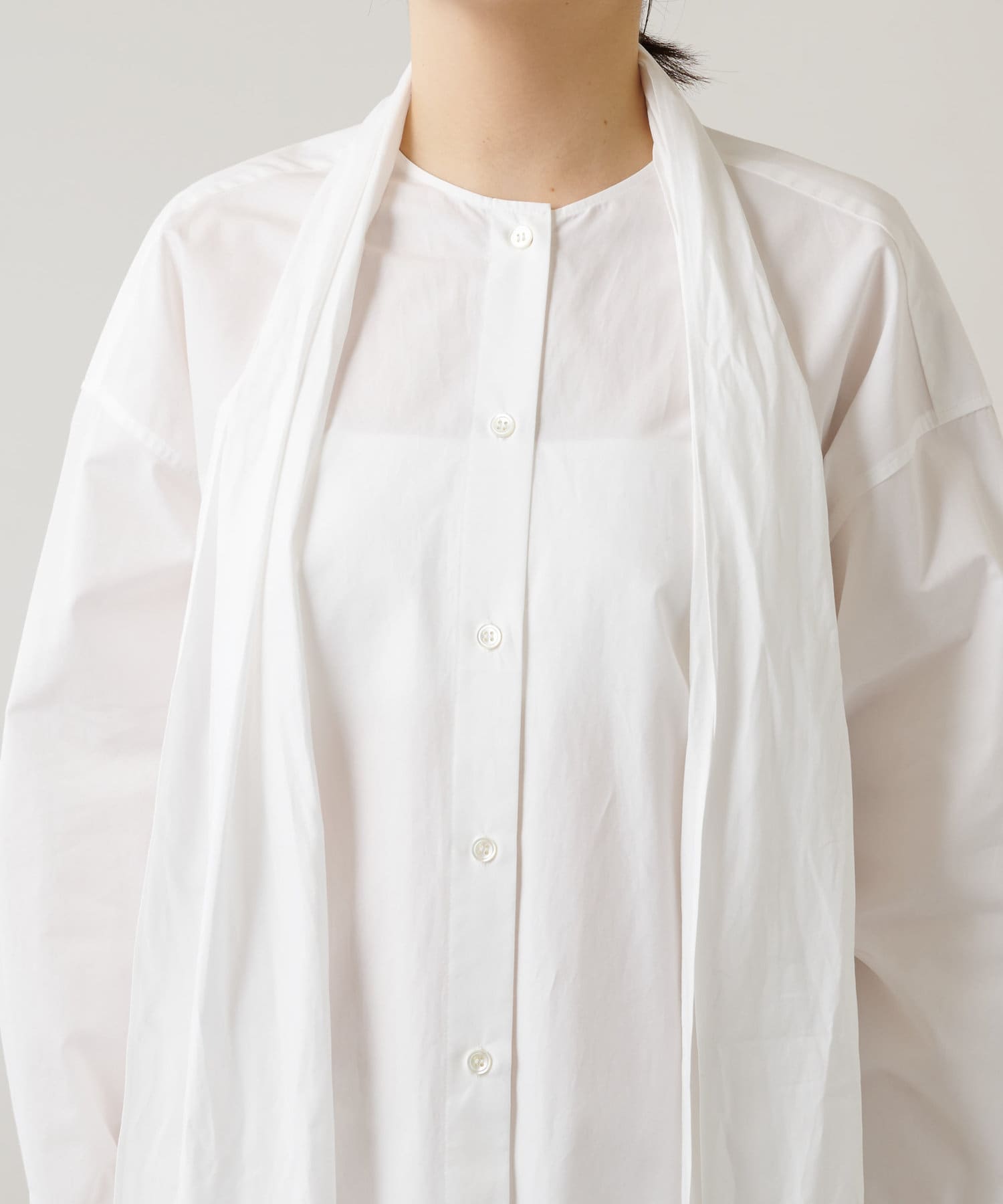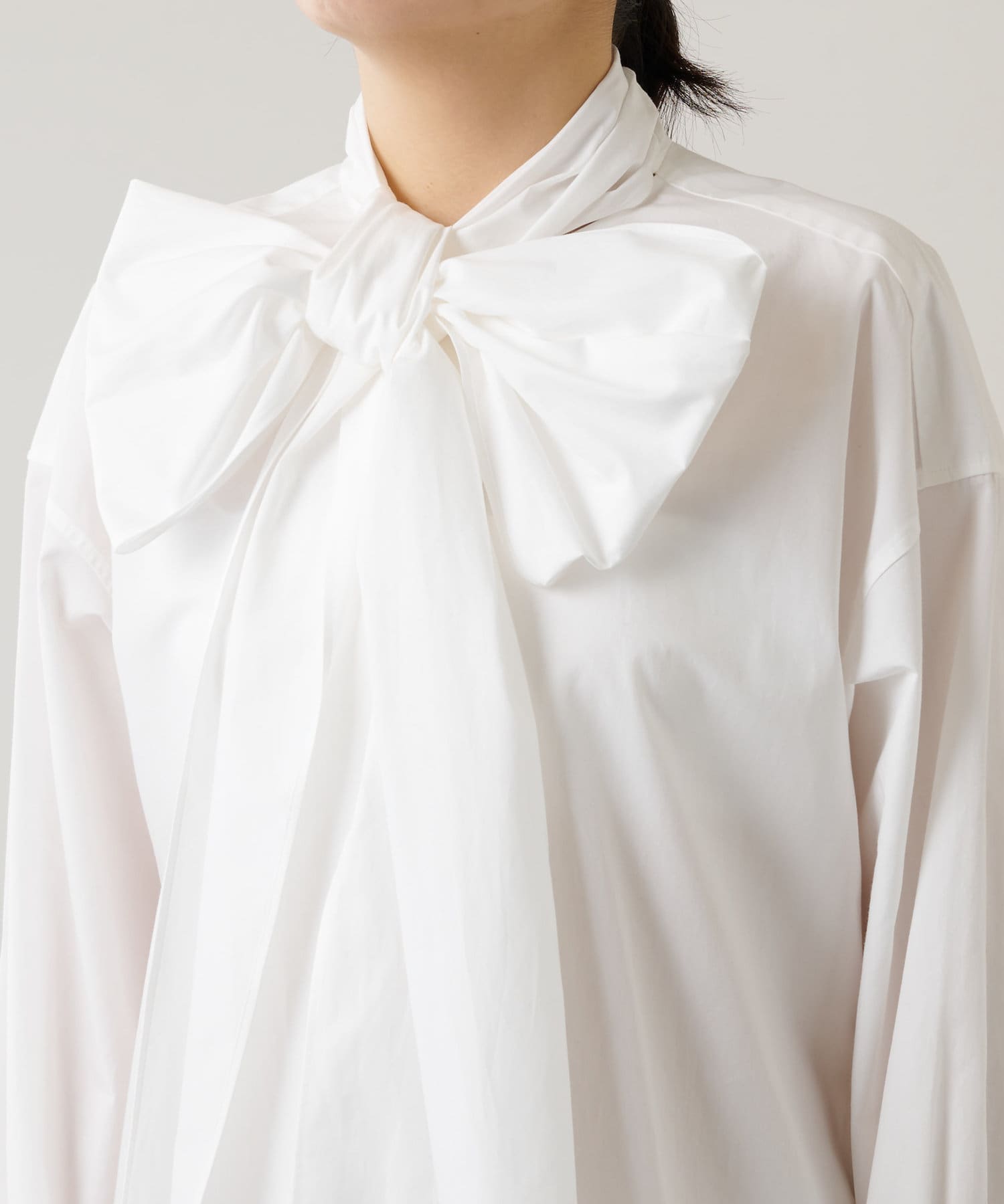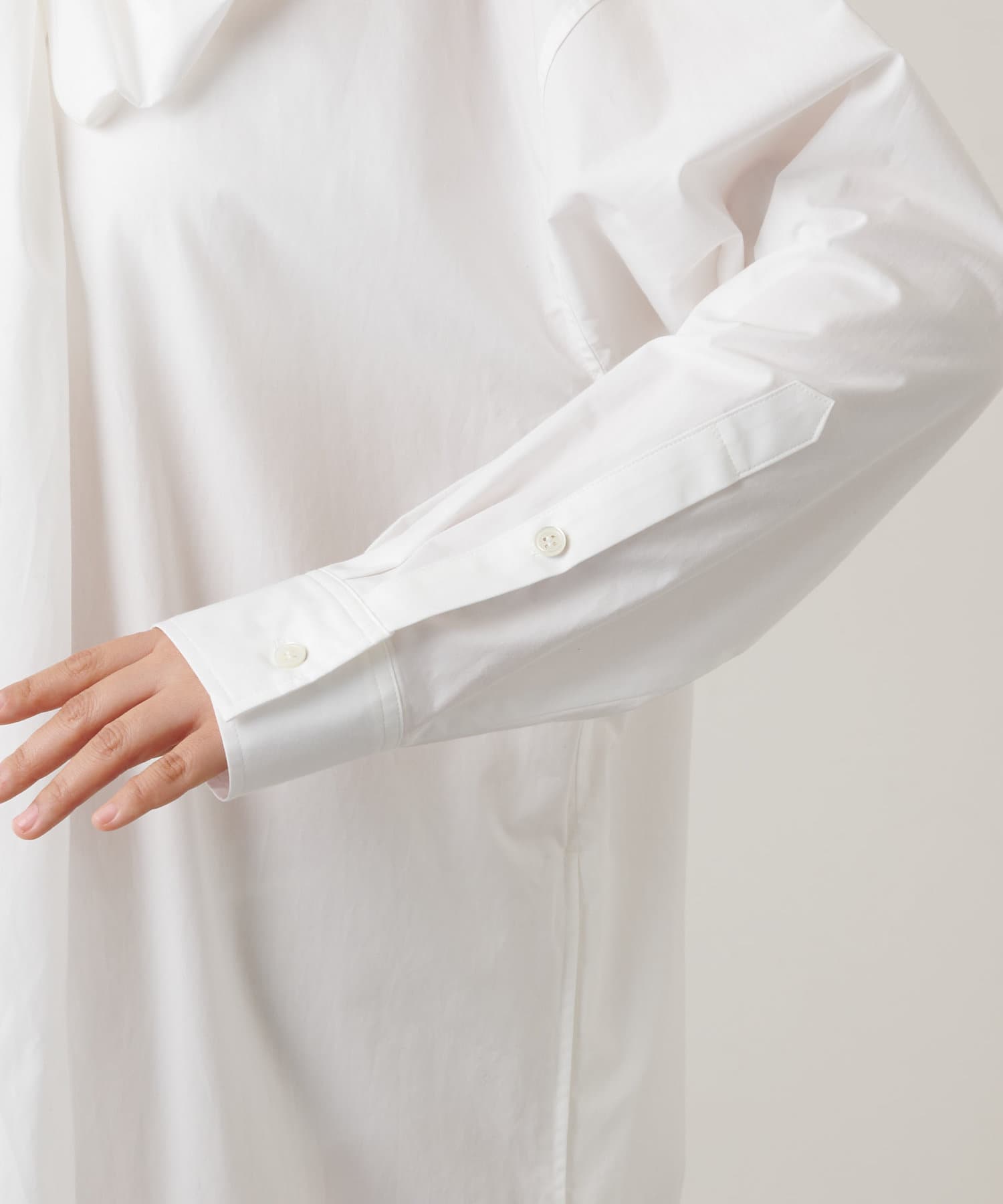 ■たっぷりとしたボウタイデザインが目を惹くシャツワンピース。