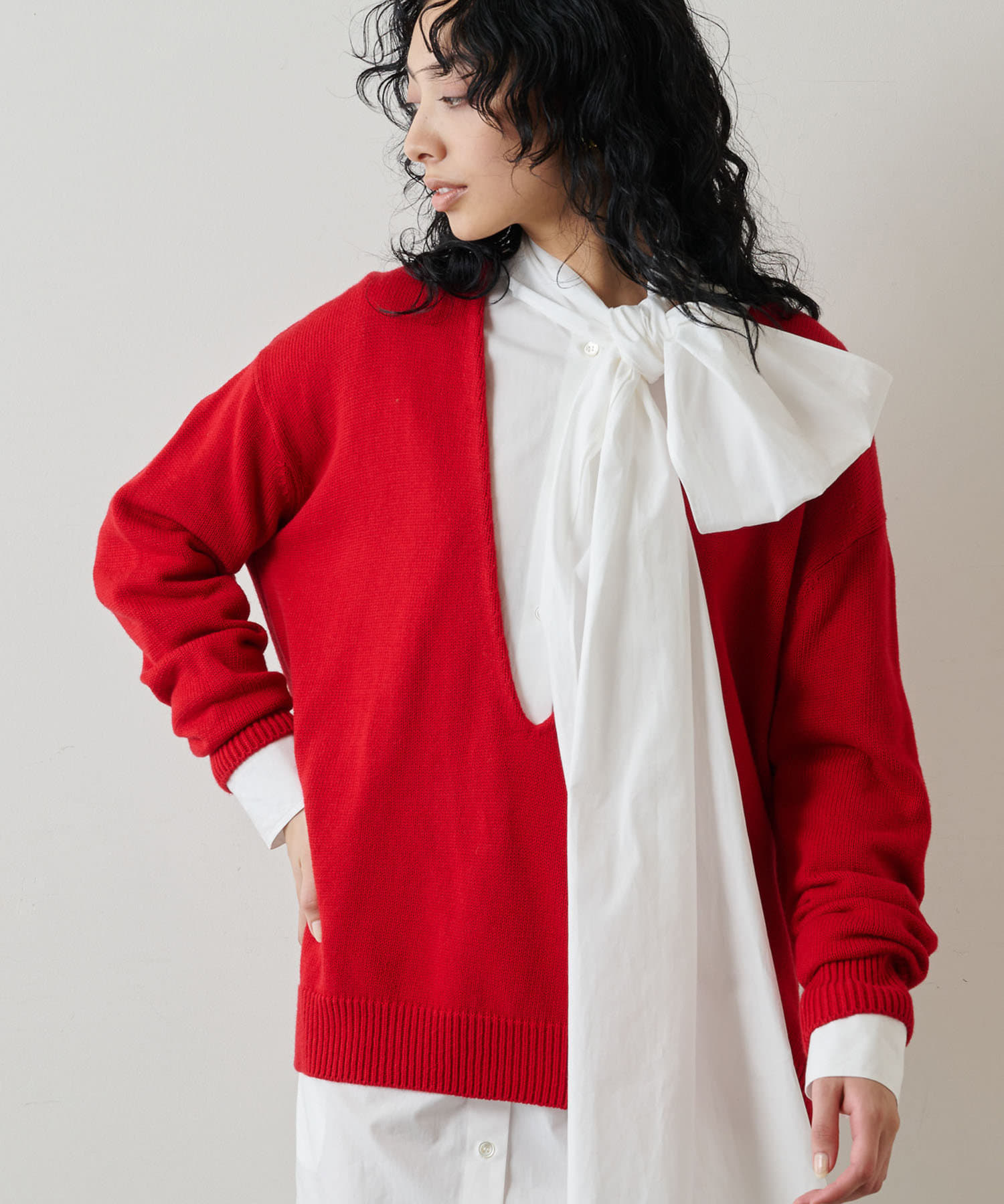 ■長めにとったタイはリボン結びはもちろん、ラフに垂らしたりバックで結んだりとアレンジ次第で様々な表情を楽しめるデザイン。