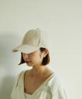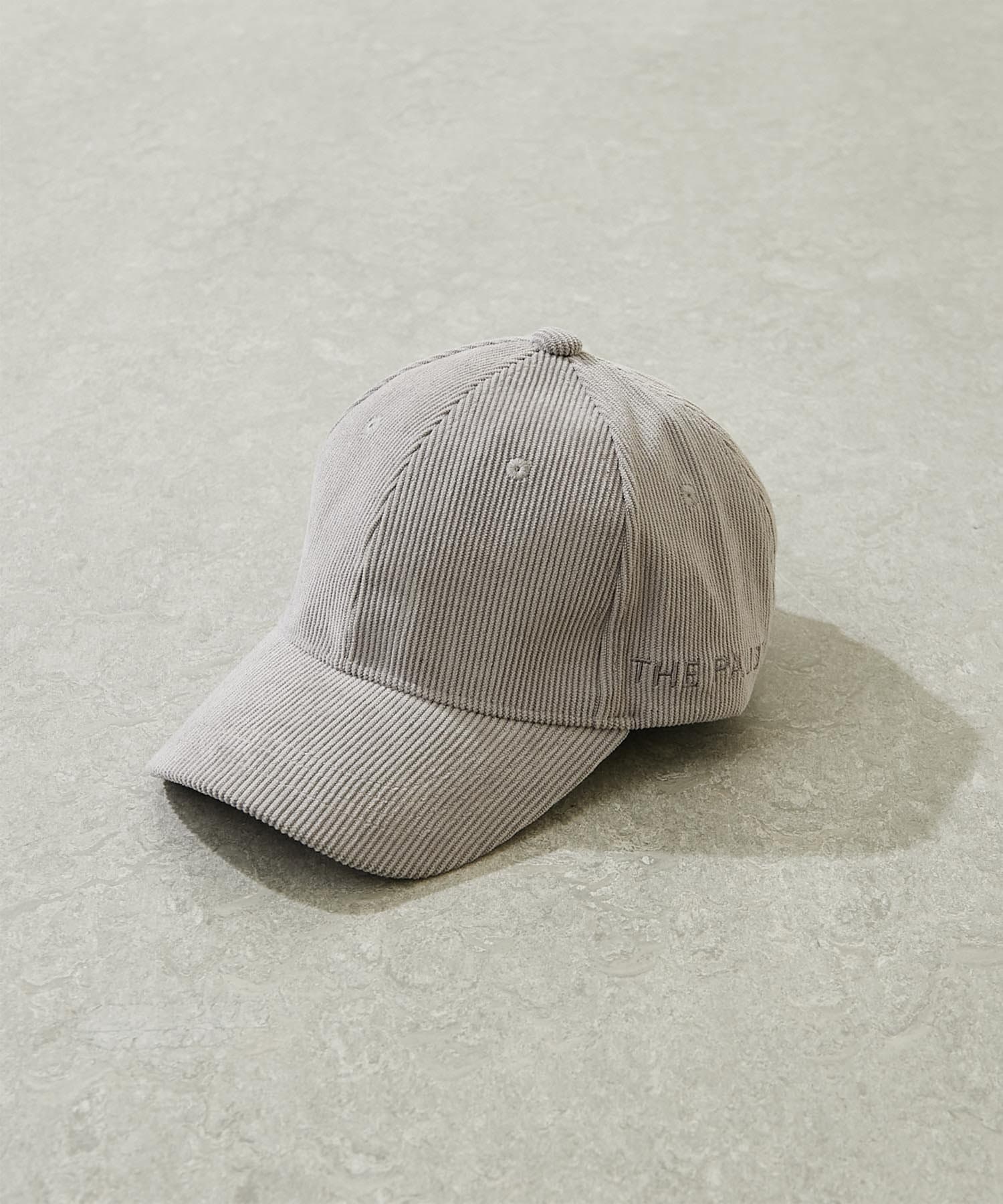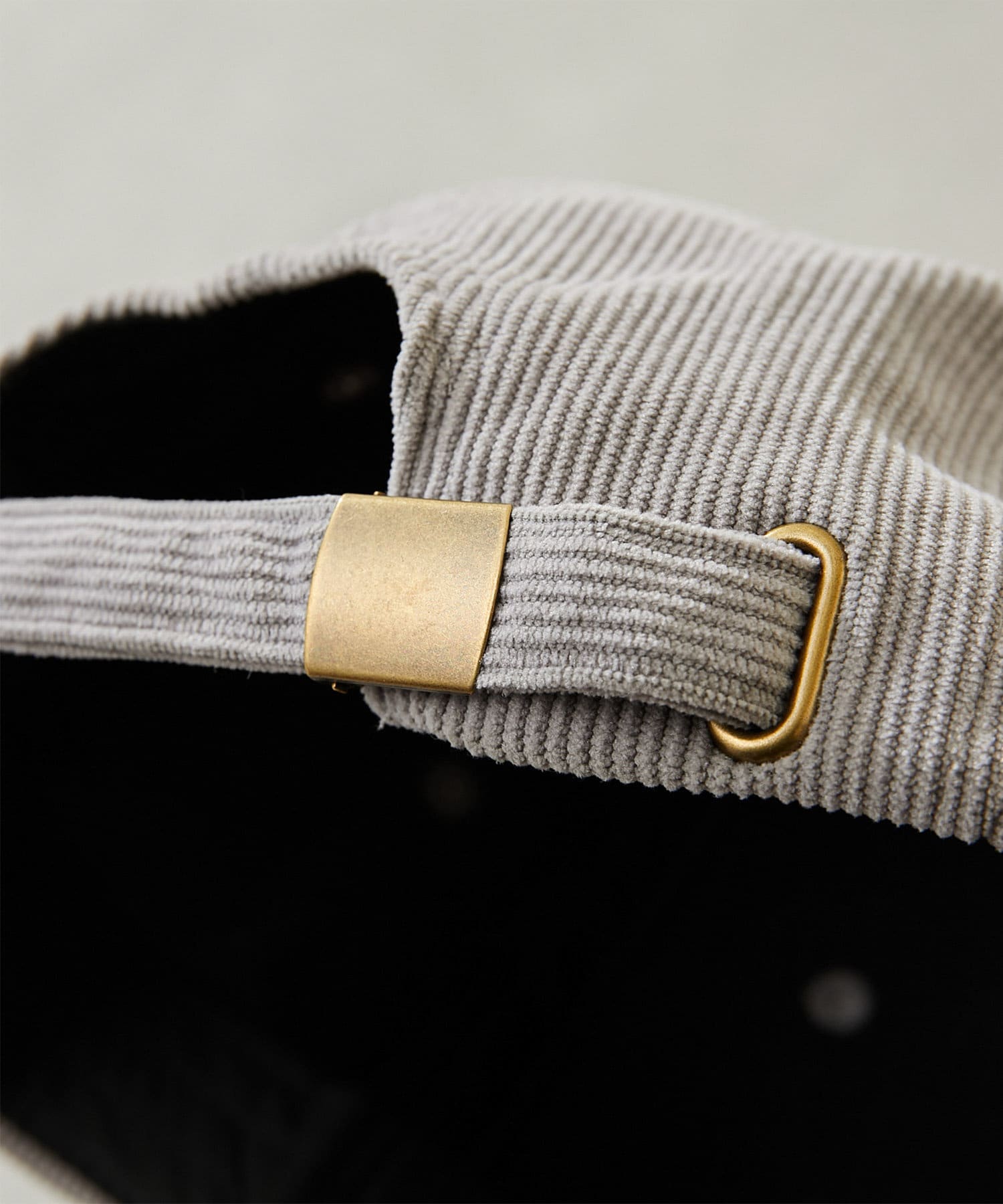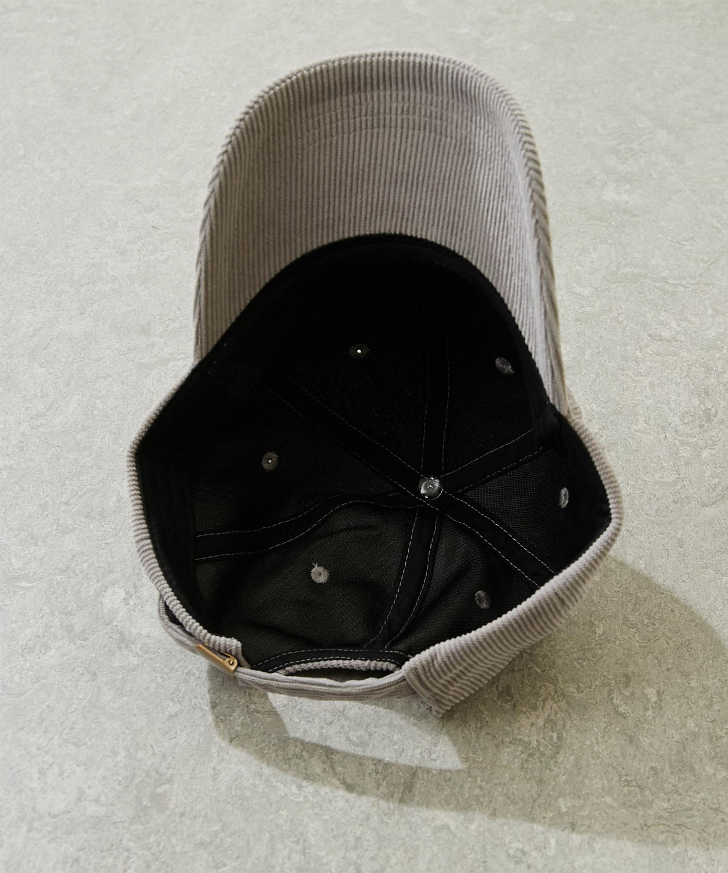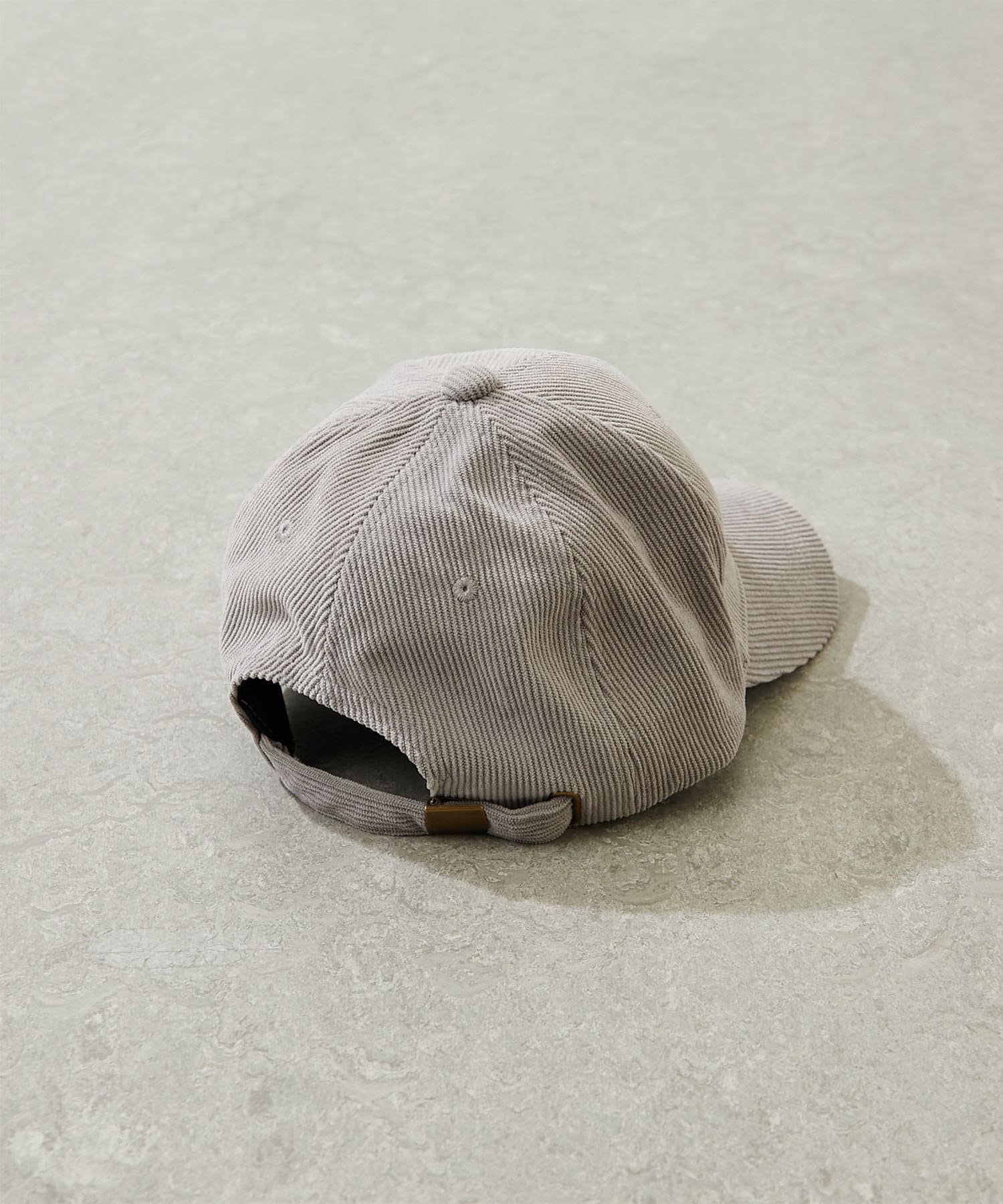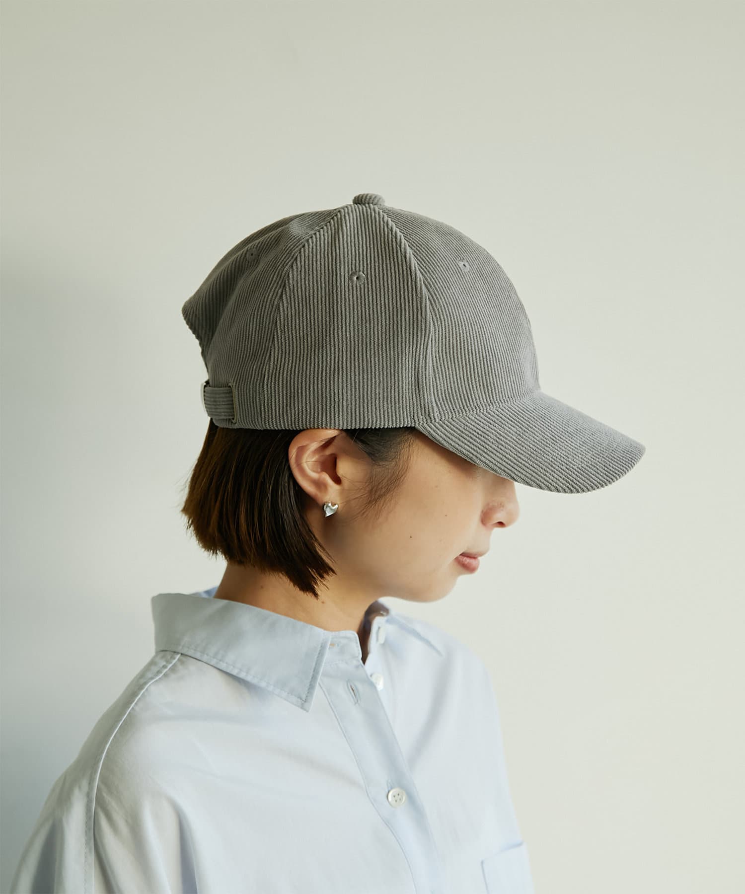 ■畝が太めのコーデュロイ素材を使用したキャップ。