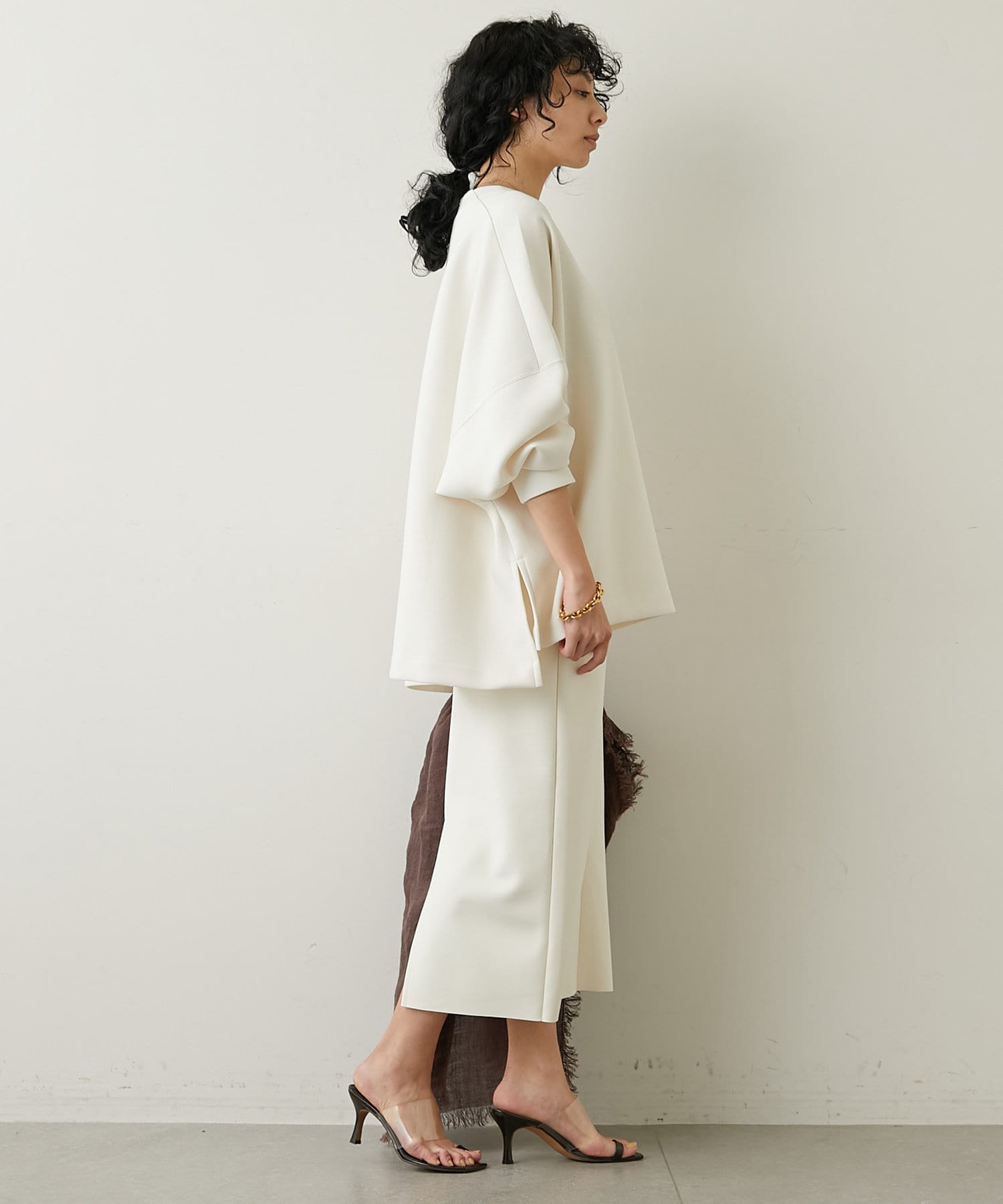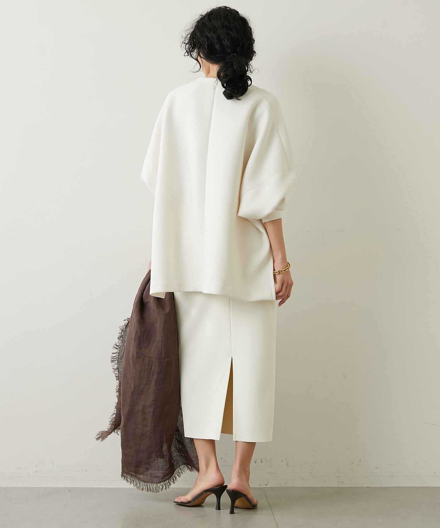 ■長すぎず上品に見える着丈はシーンを選ばず、オンオフで着回せるのもポイント。