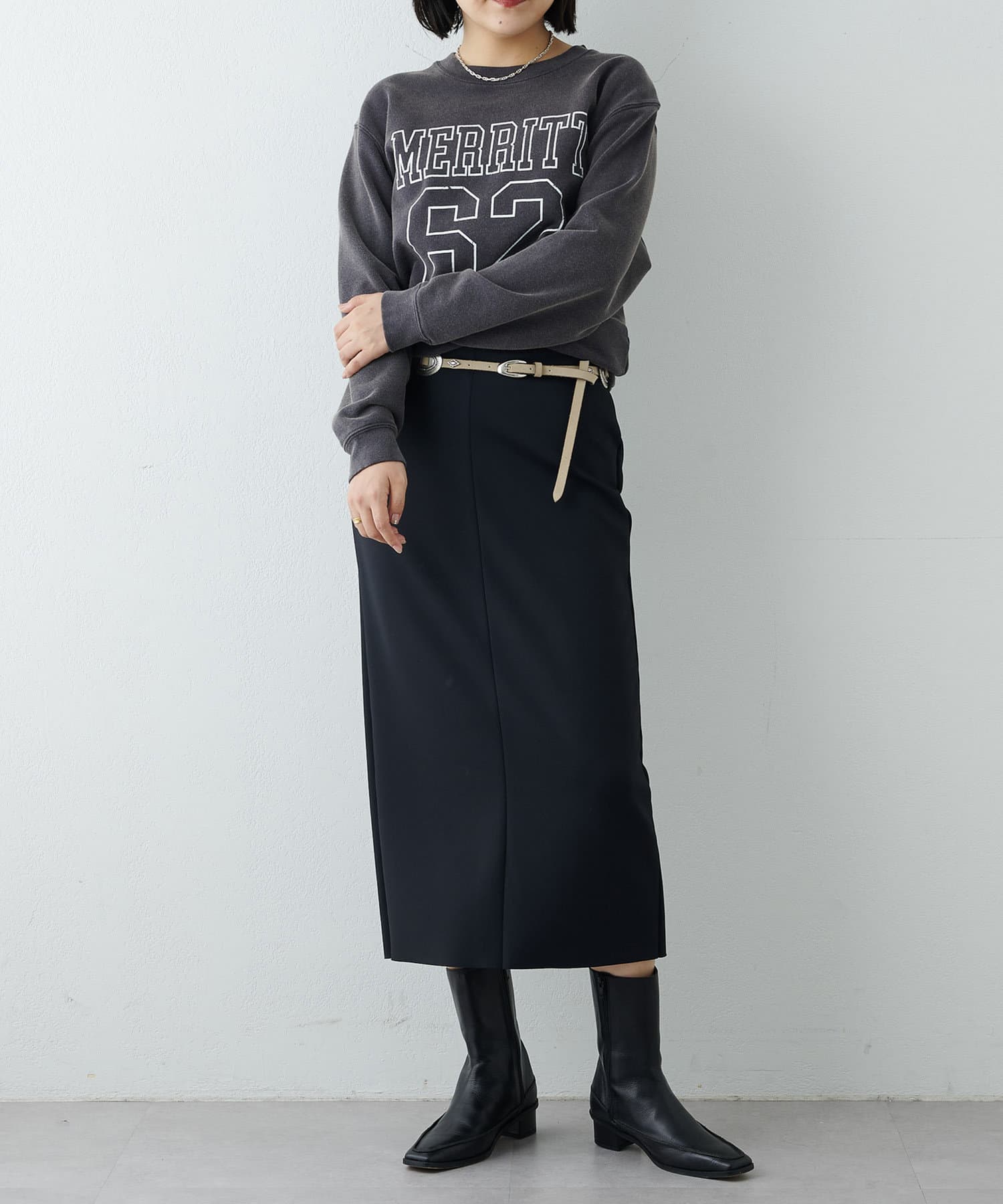 ■タイトシルエットですっきりと仕上げたジャージースカート。