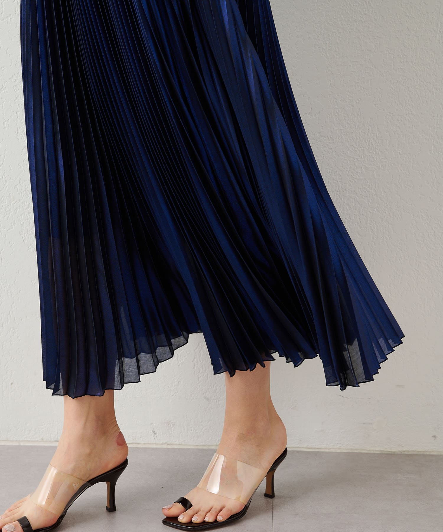 動きに合わせて表情が変化する、華やかなプリーツスカート