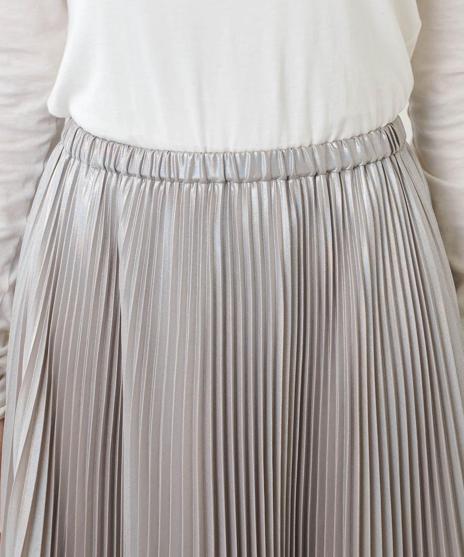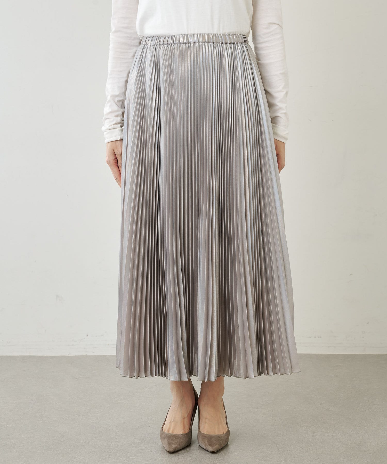 キラッと光るラメプリーツ。穿くだけでコーディネートの主役に。長すぎない丈なので、ボリュームはありますが小柄さんでもスッキリとお召頂けます。