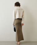 ■膝上あたりまでフィットする女性らしいシルエットは、トップスインでもアウトでもバランス良く着用可能。