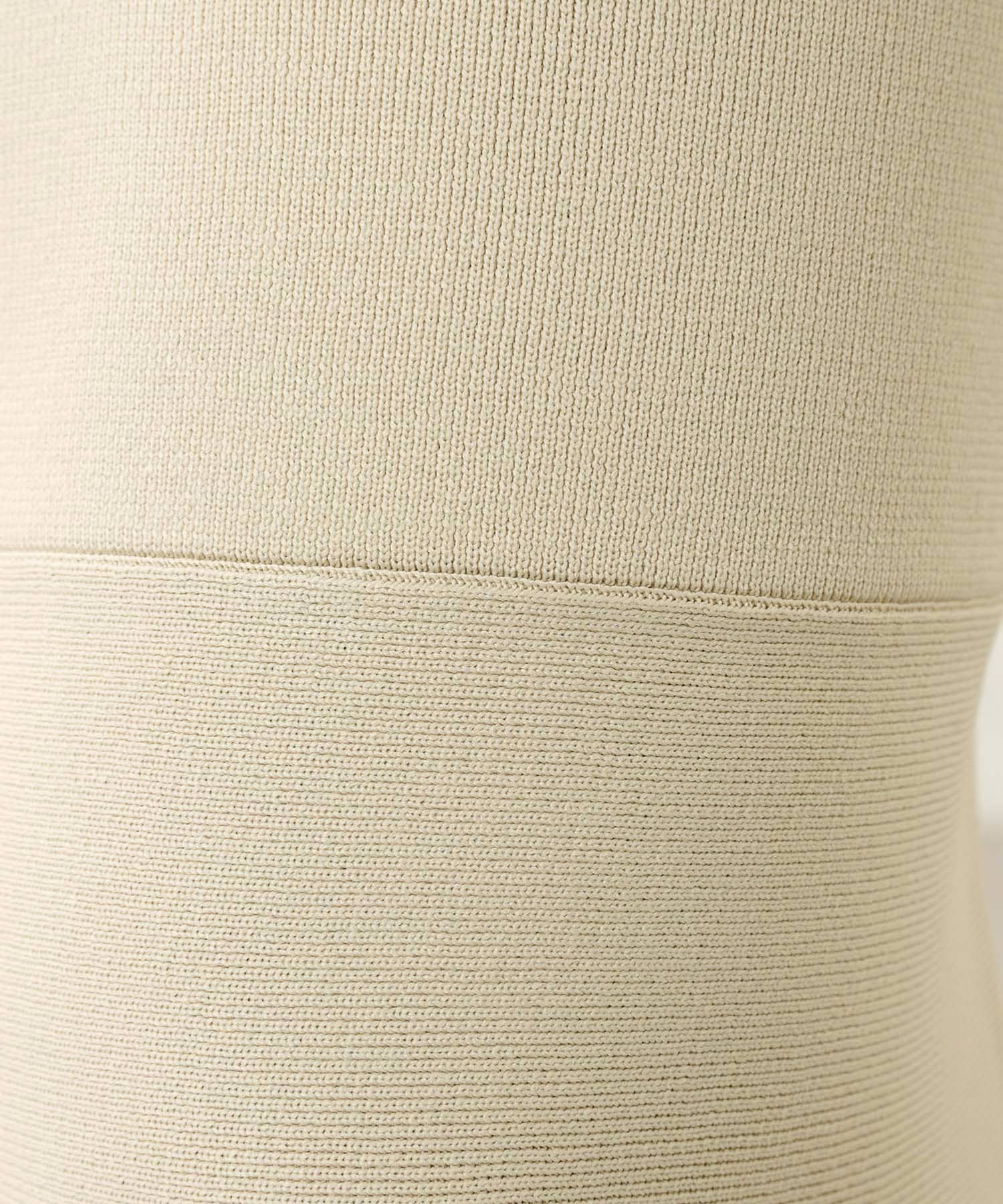 ■軽くきれいな目面のニット素材が上品さを保ち、オンオフ問わずに着回せる一着。