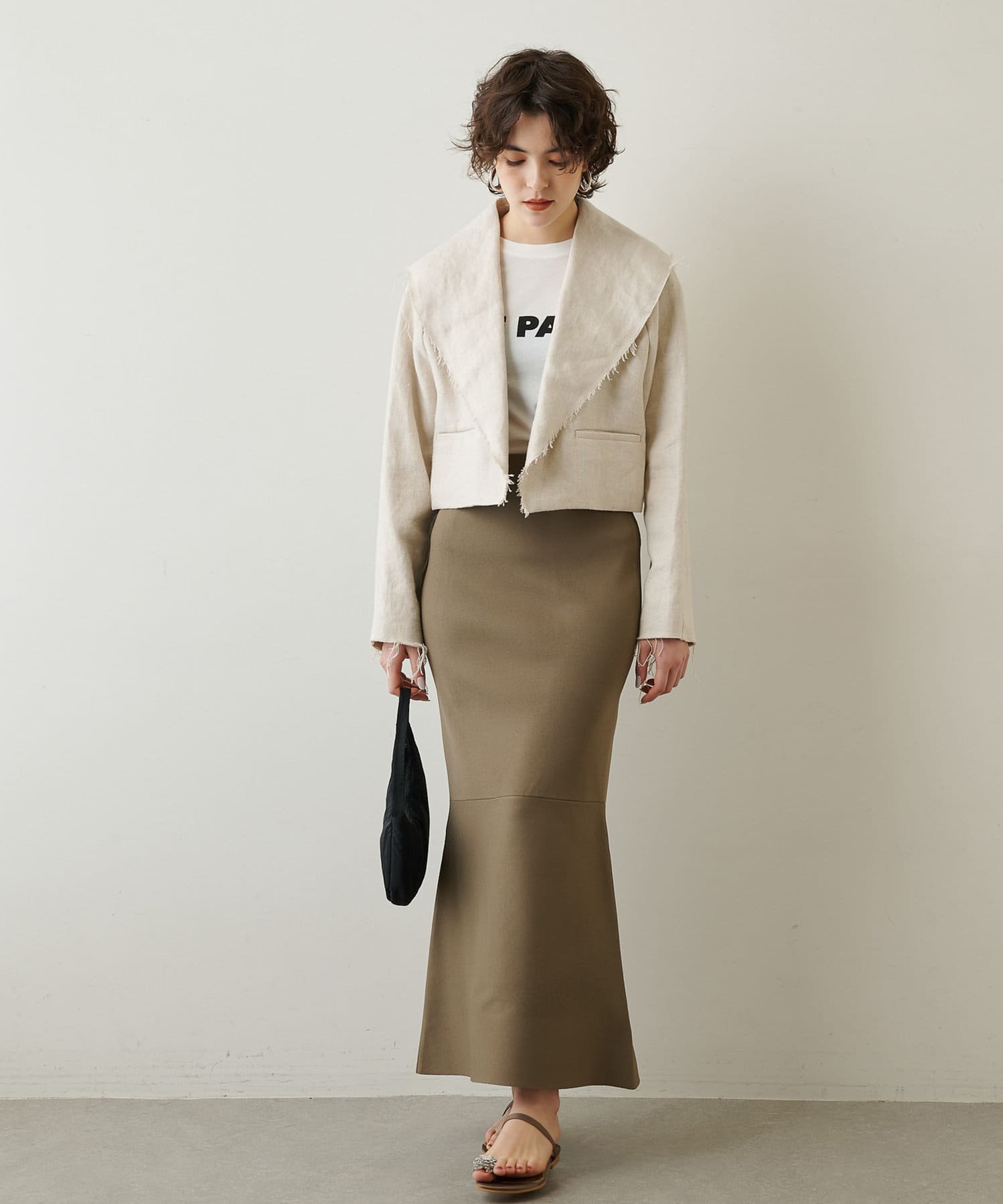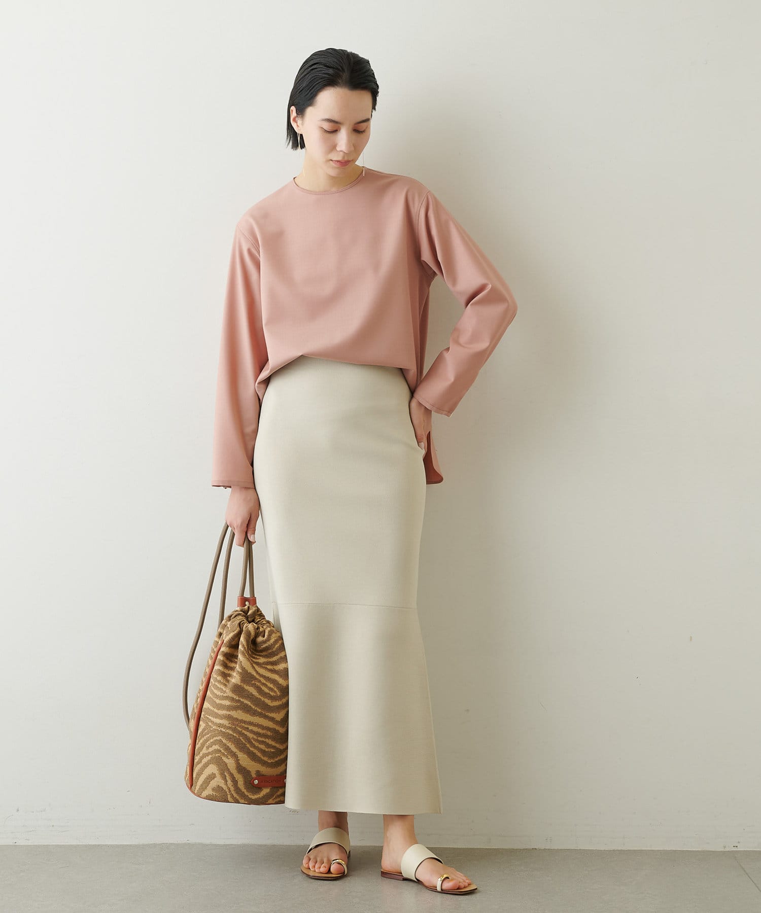 ■マーメイドシルエットの切り替えデザインが特徴のニットスカート。