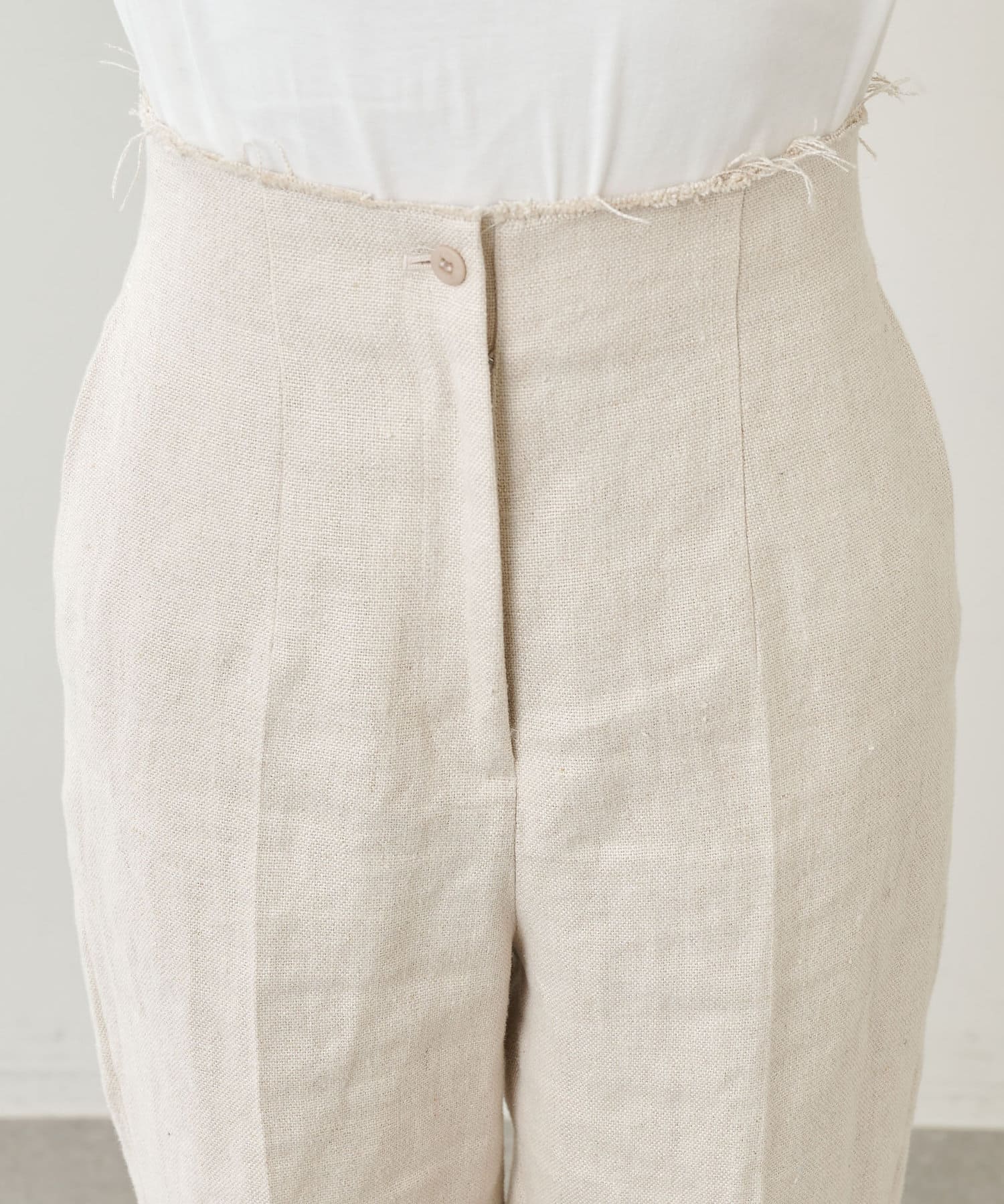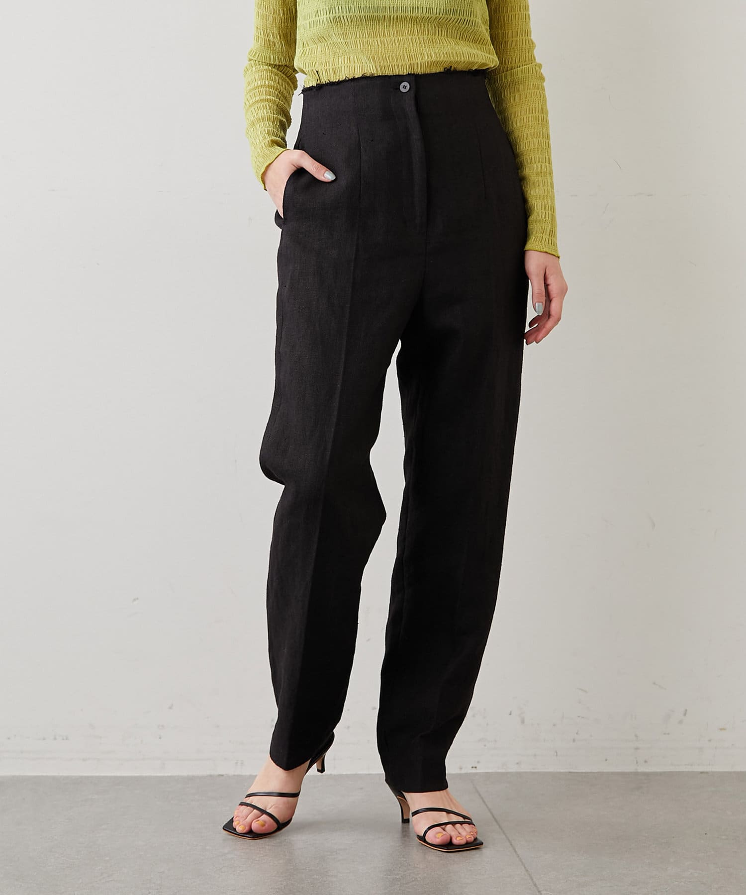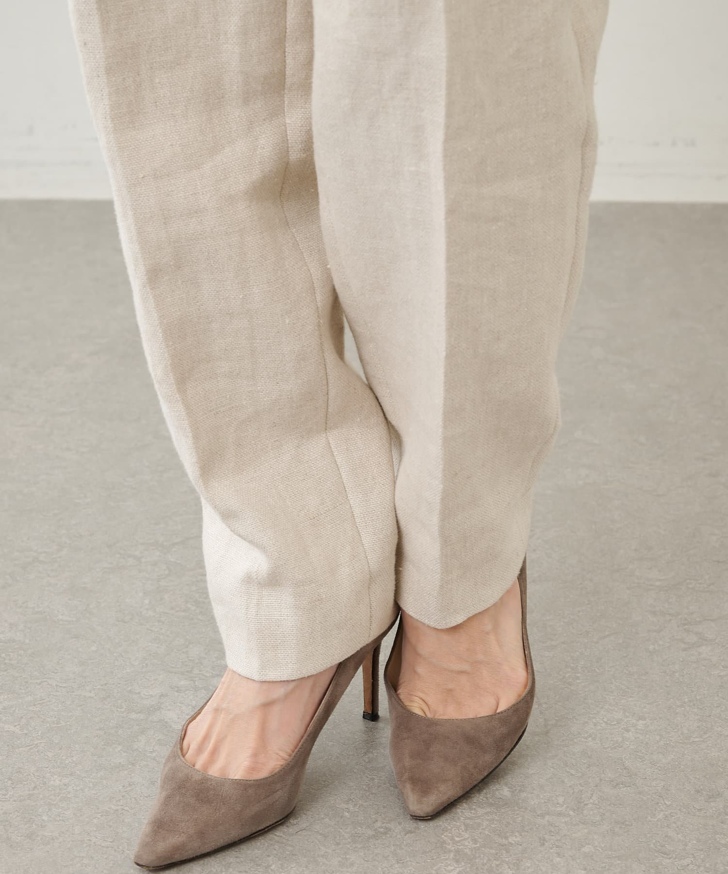 ■リネン素材で清涼感たっぷりに仕上げたテーパードパンツ。
