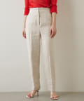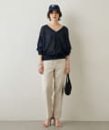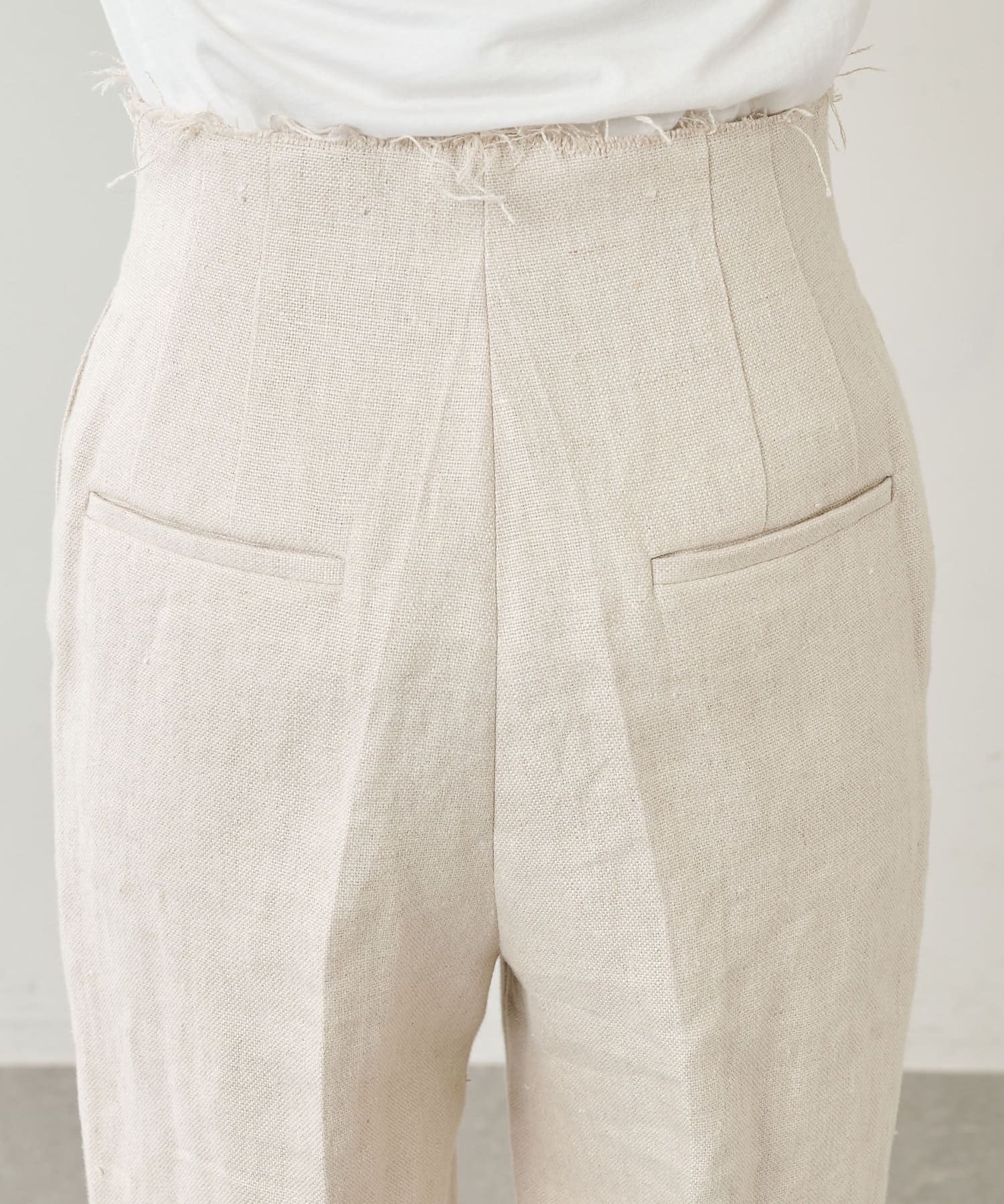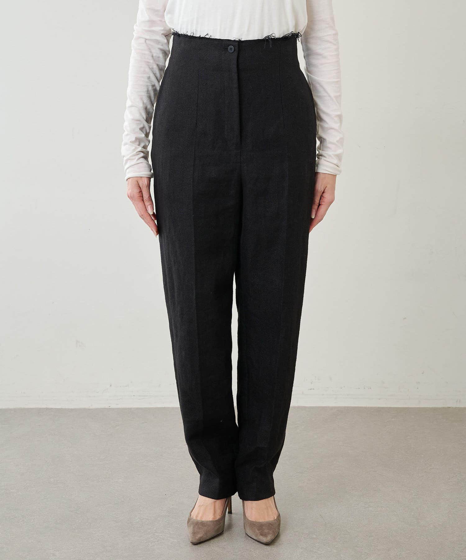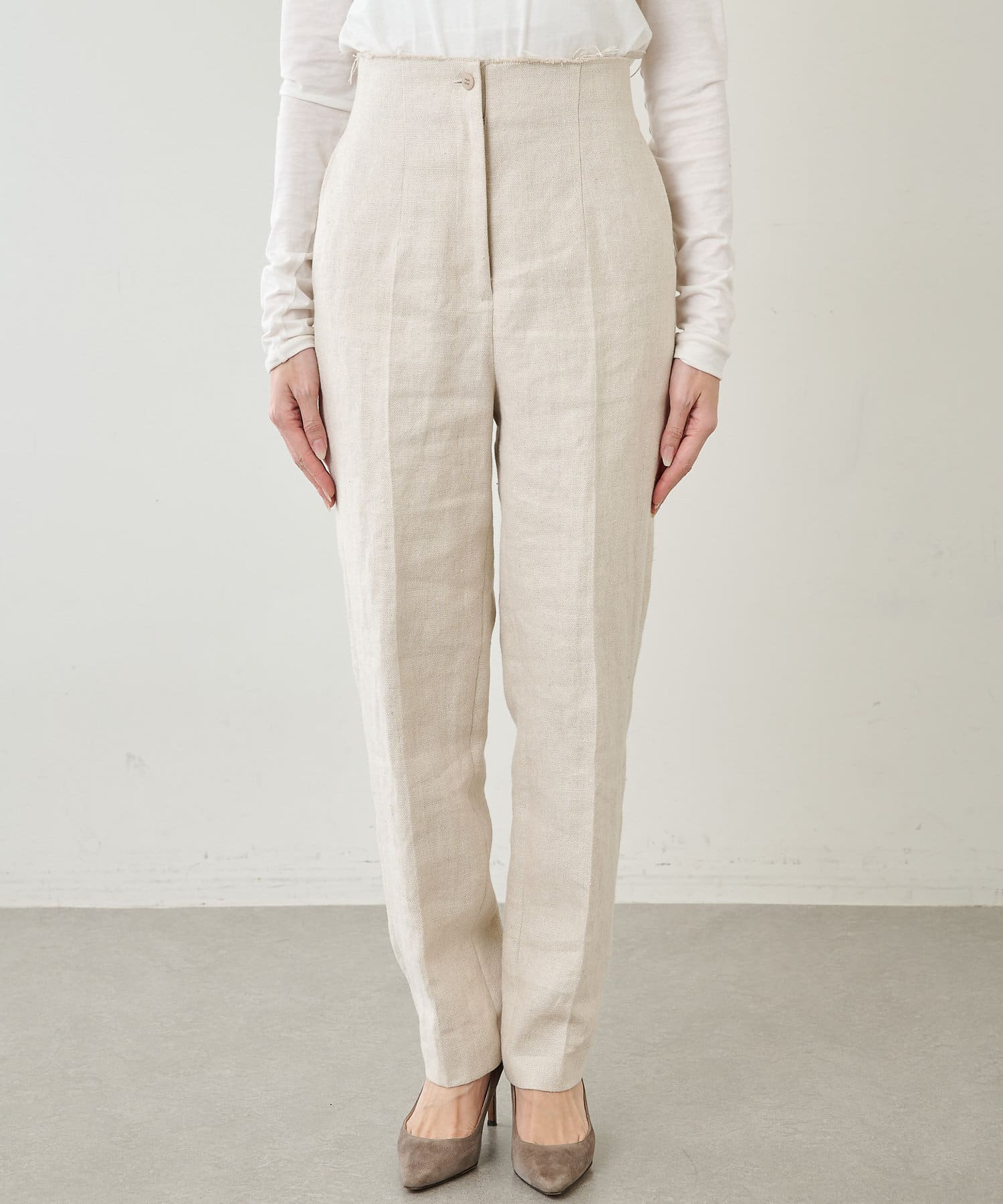 ■リネン素材で清涼感たっぷりに仕上げたテーパードパンツ。