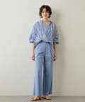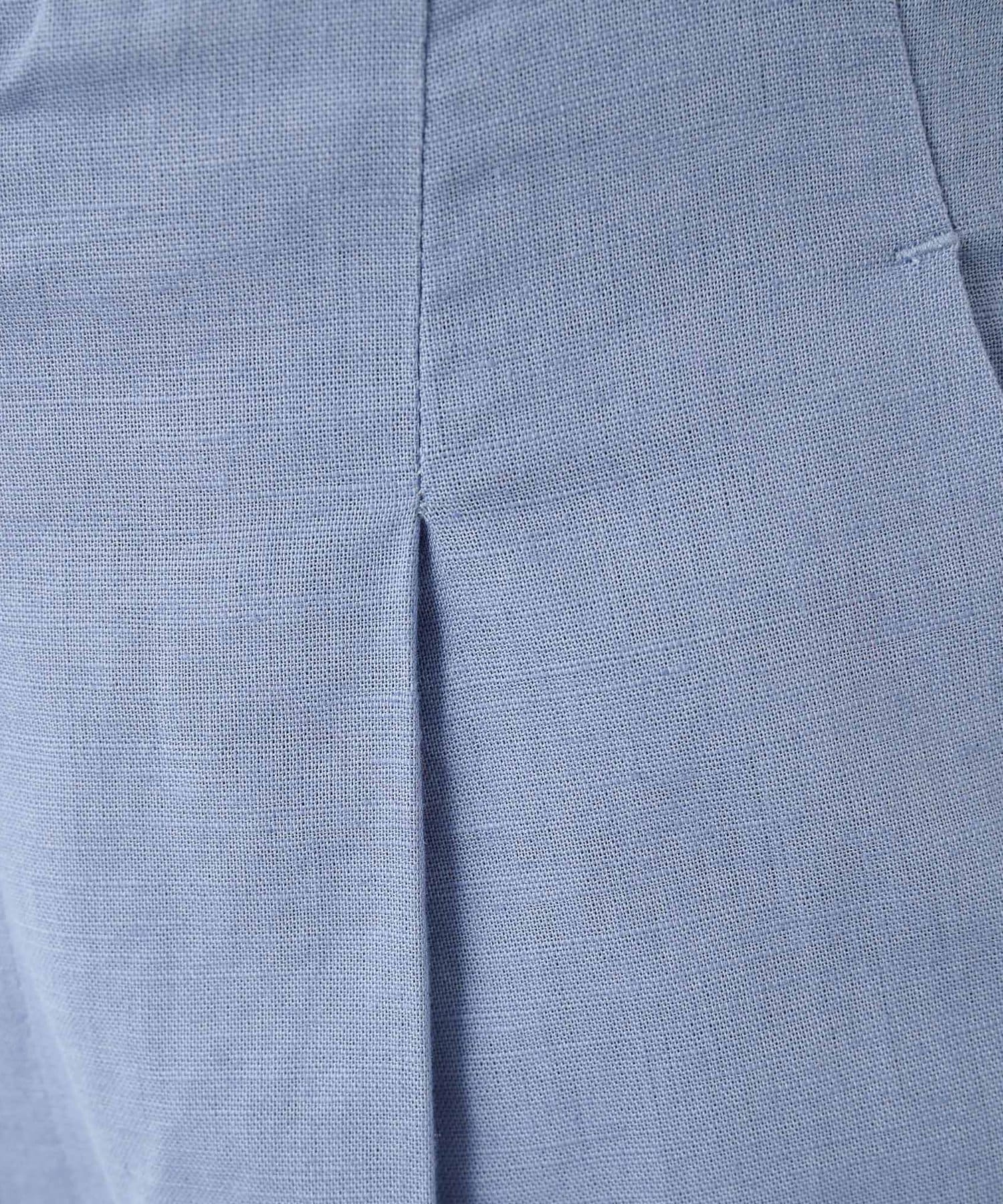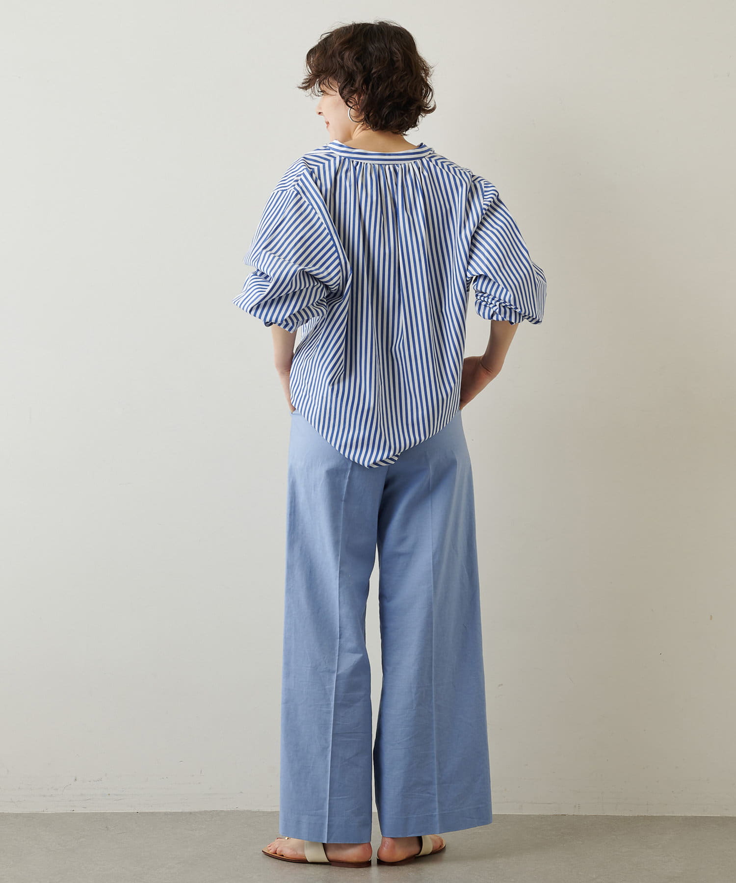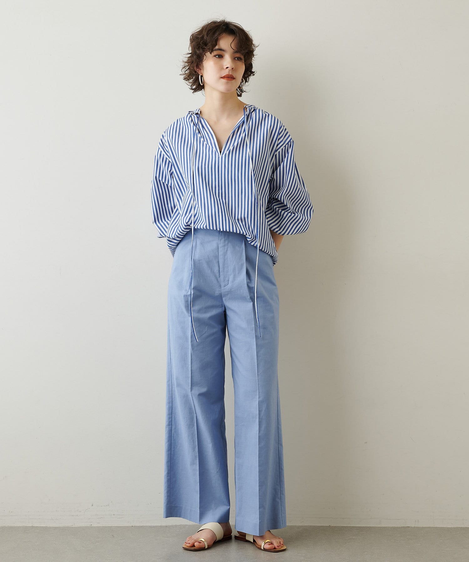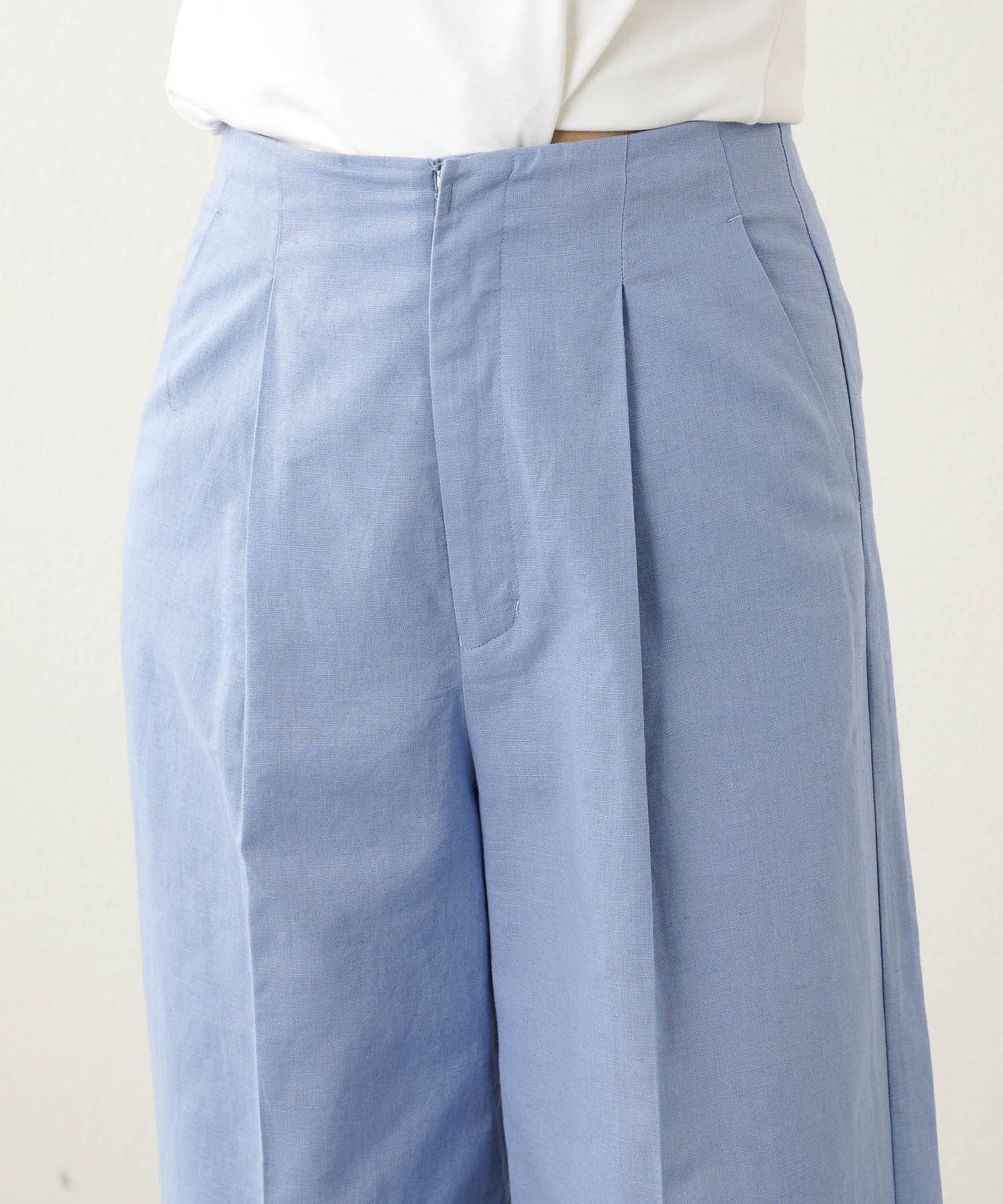 ■麻混のナチュラルな素材ながら、太すぎないワイドシルエットにセンタープレスを入れきちんと感もプラス。