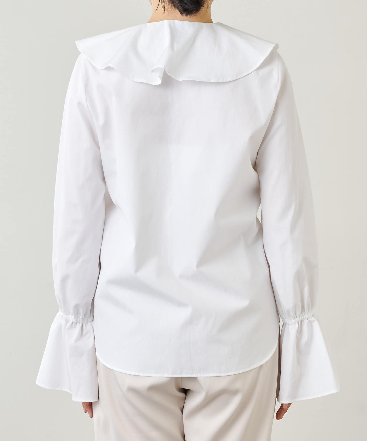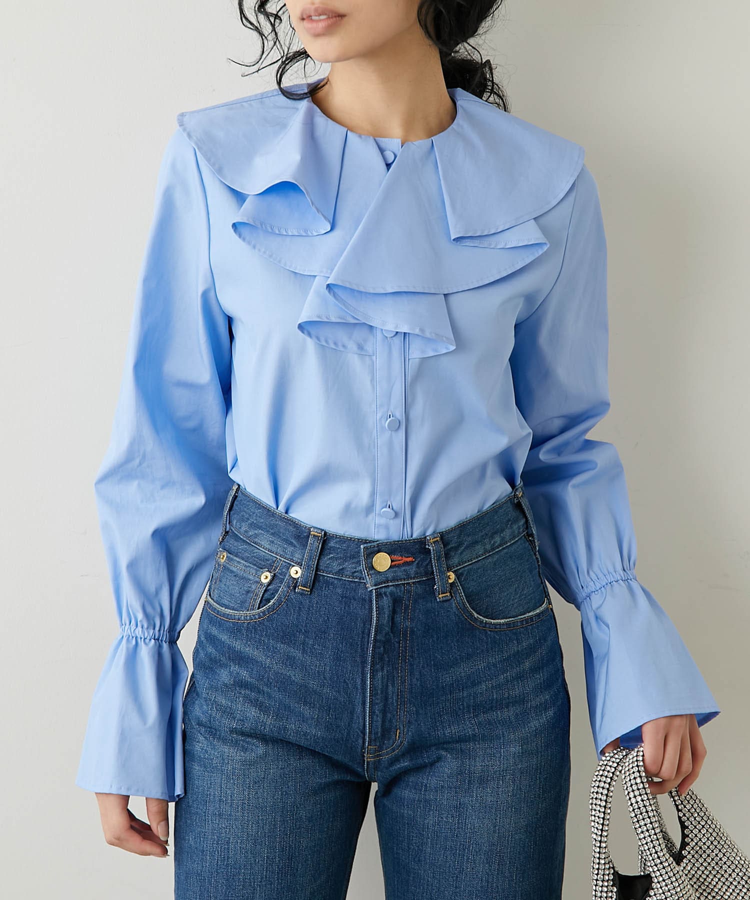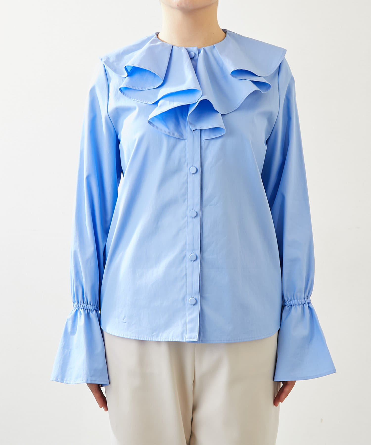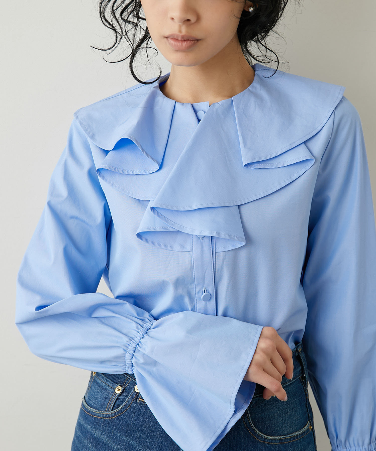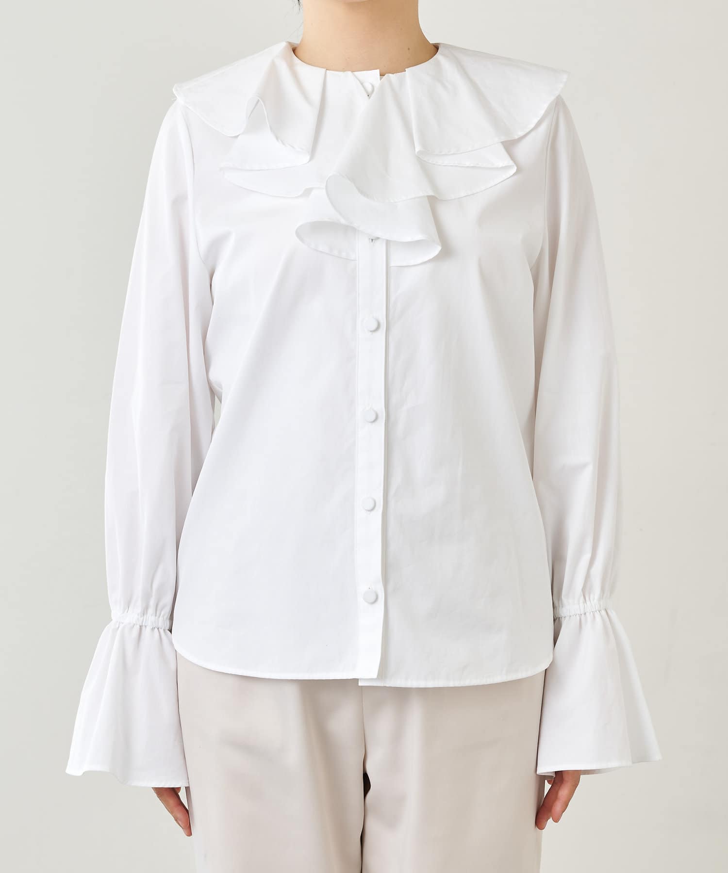 ■胸元まであしらった立体的なフリルカラーが印象的なブラウス。