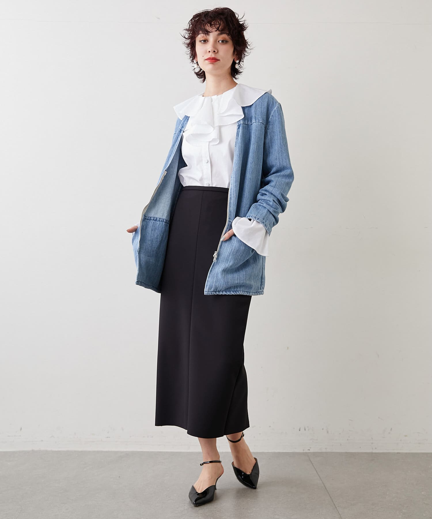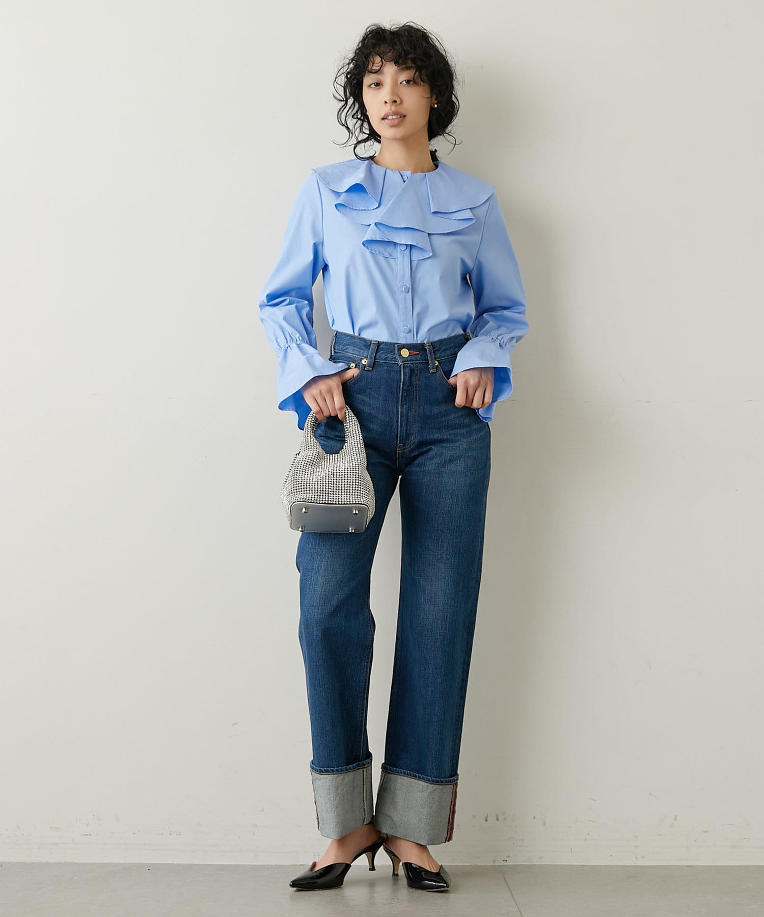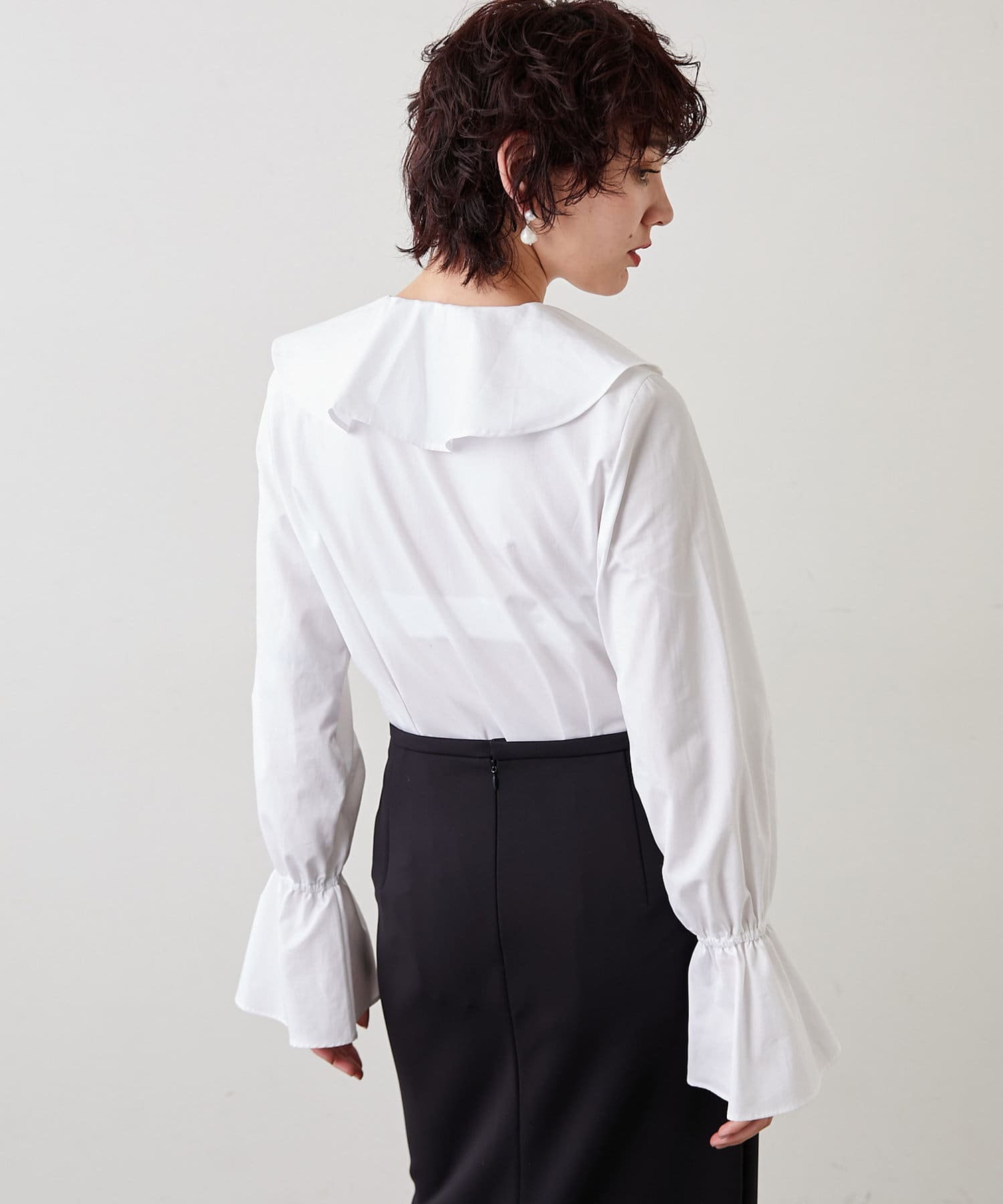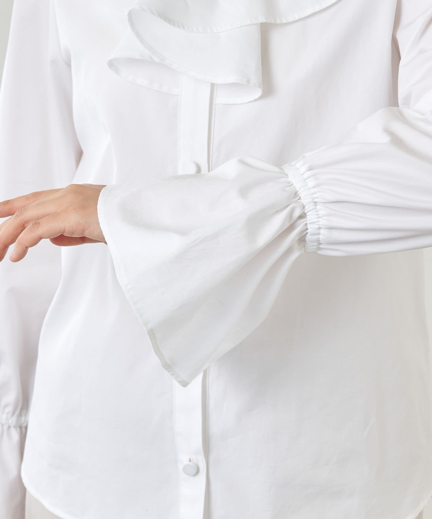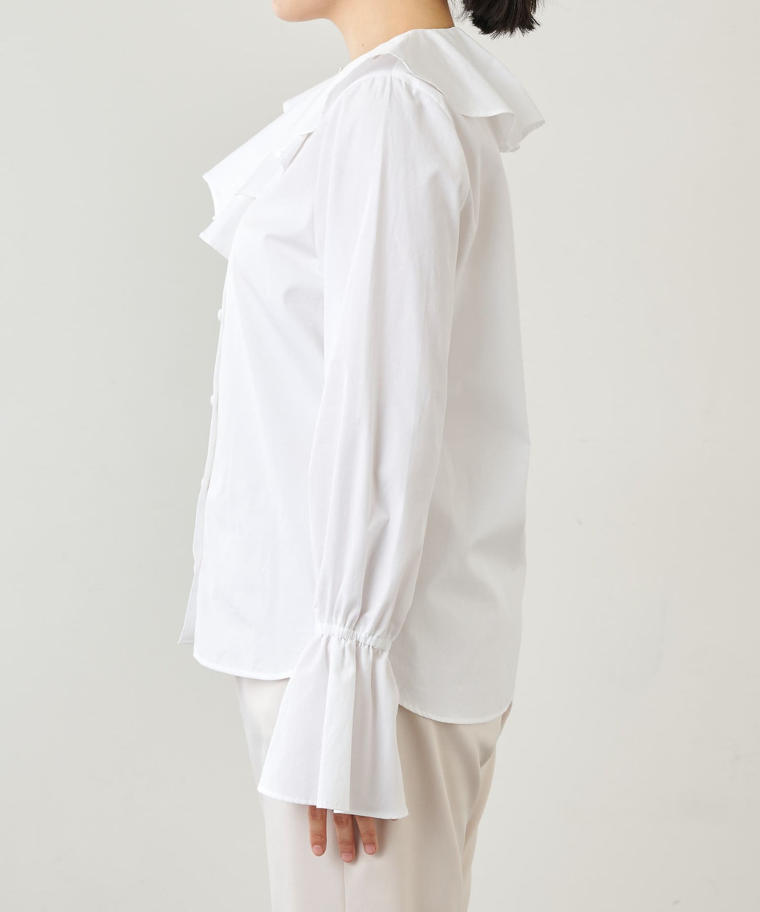 ■胸元まであしらった立体的なフリルカラーが印象的なブラウス。