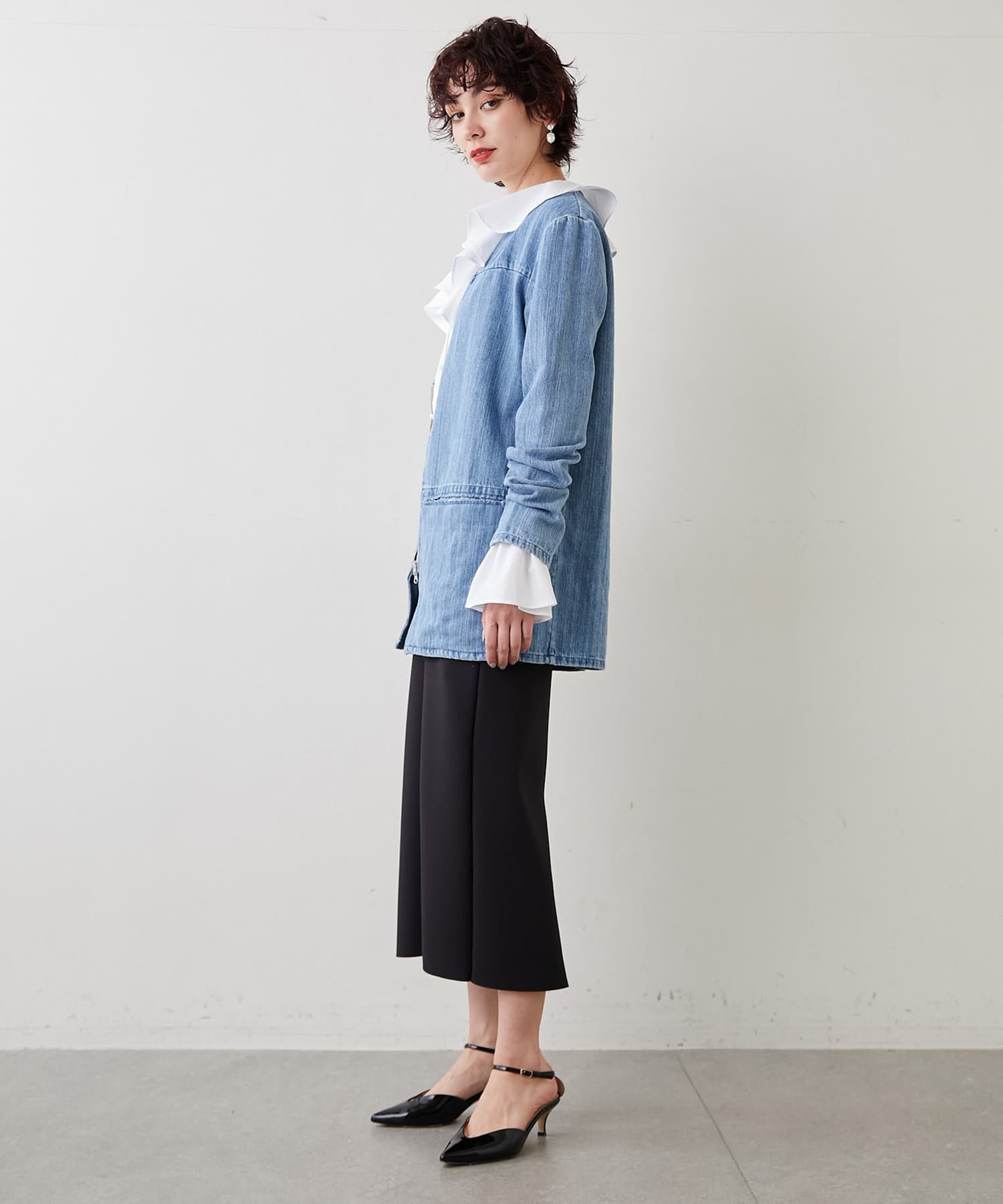 ■大きめのフリルながら、首や肩周りに程よく収まるシルエットで大人っぽく楽しめる一枚。