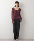 ■シャープな印象のスクエアネックと、モード感のあるダークカラーで甘さを抑え上品な印象に。