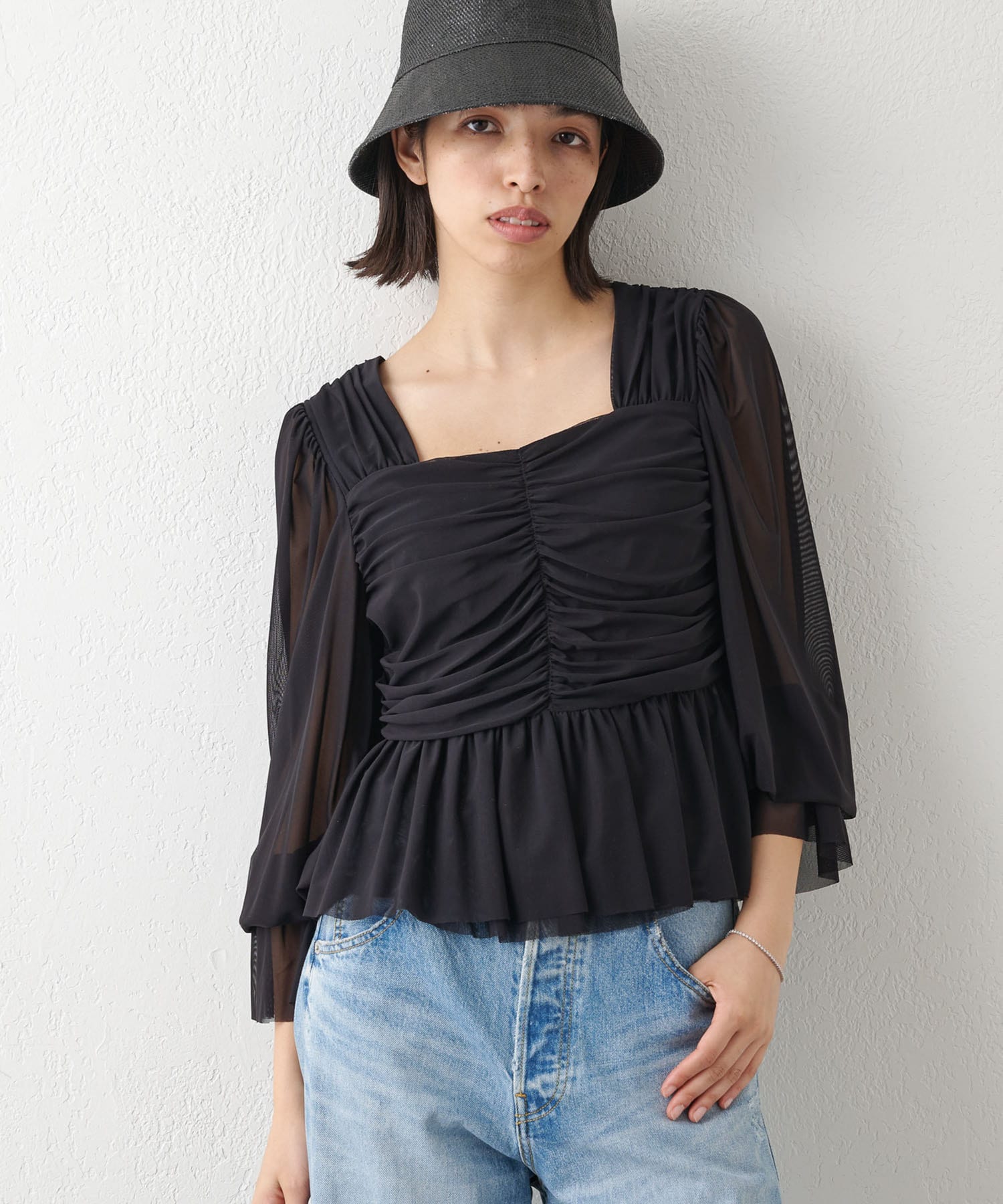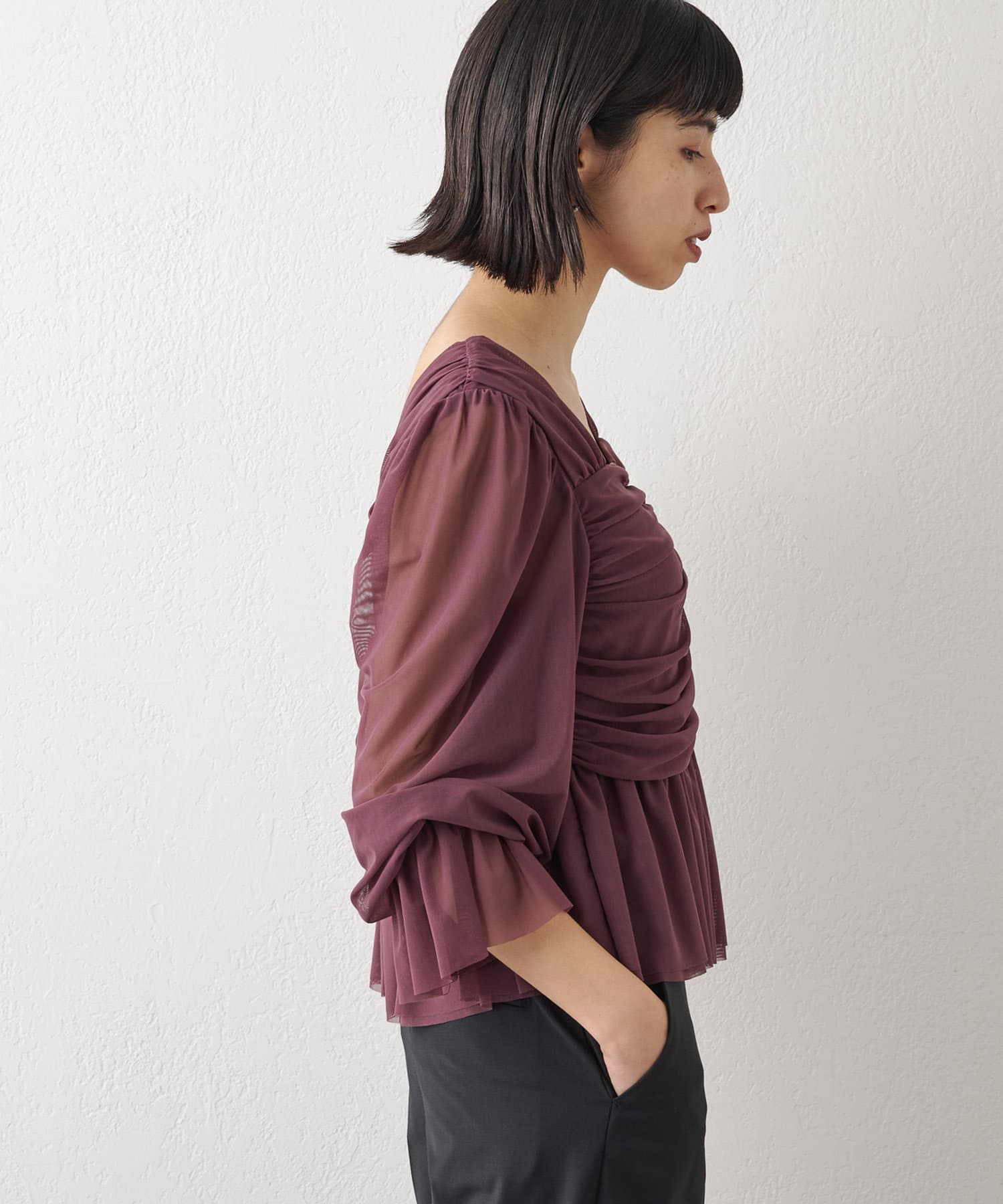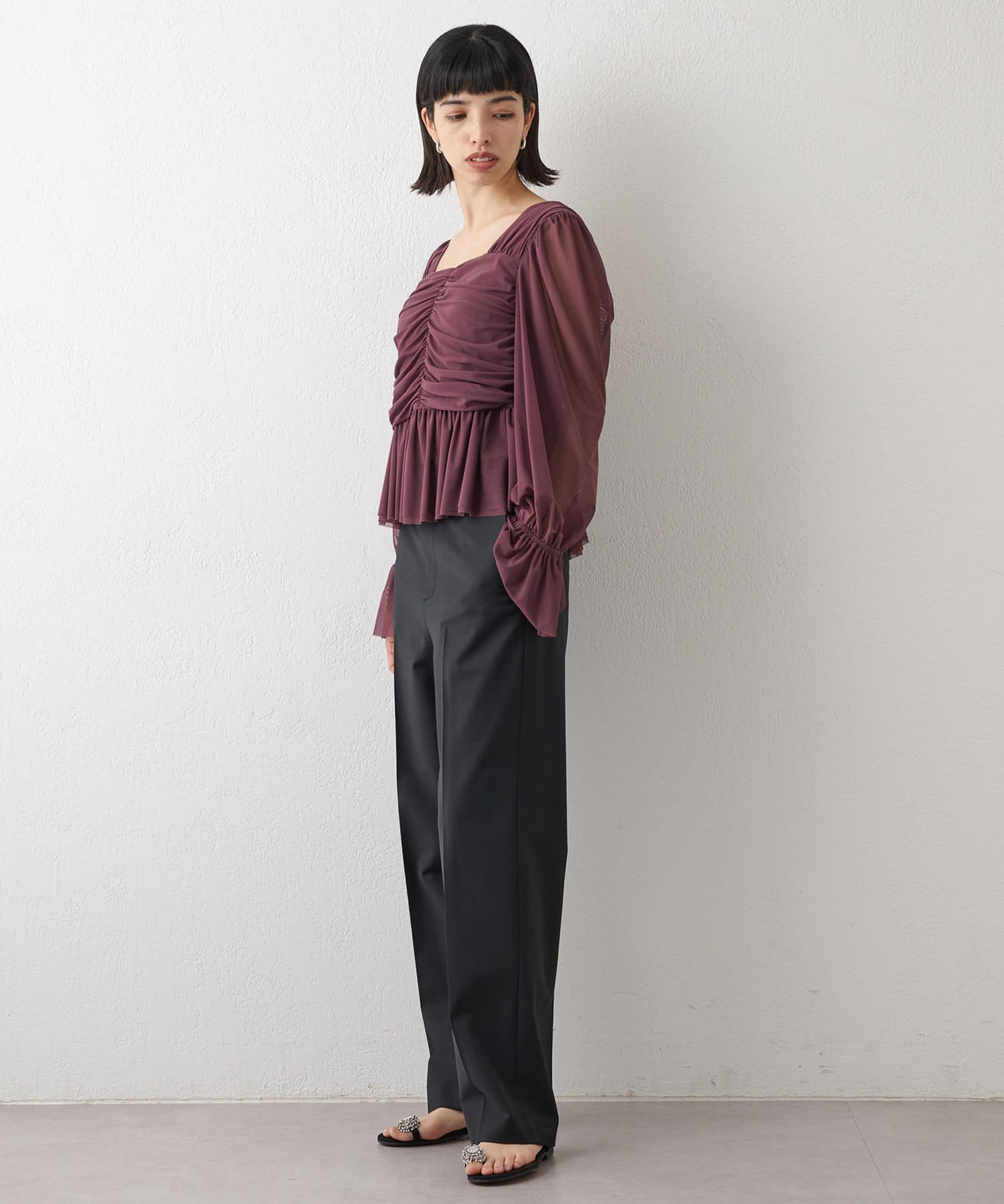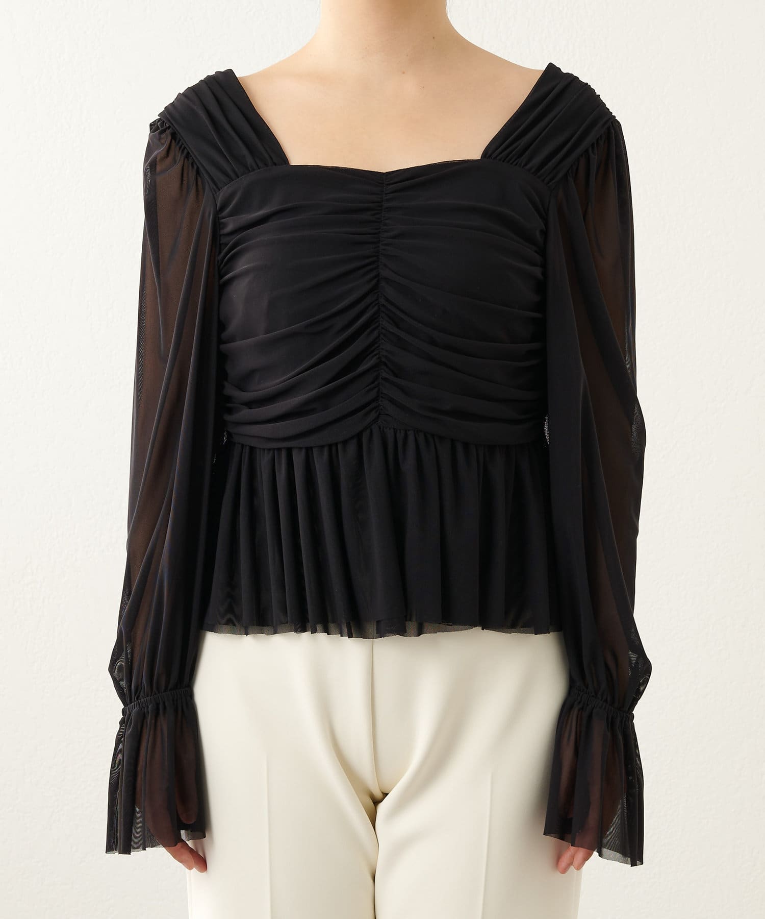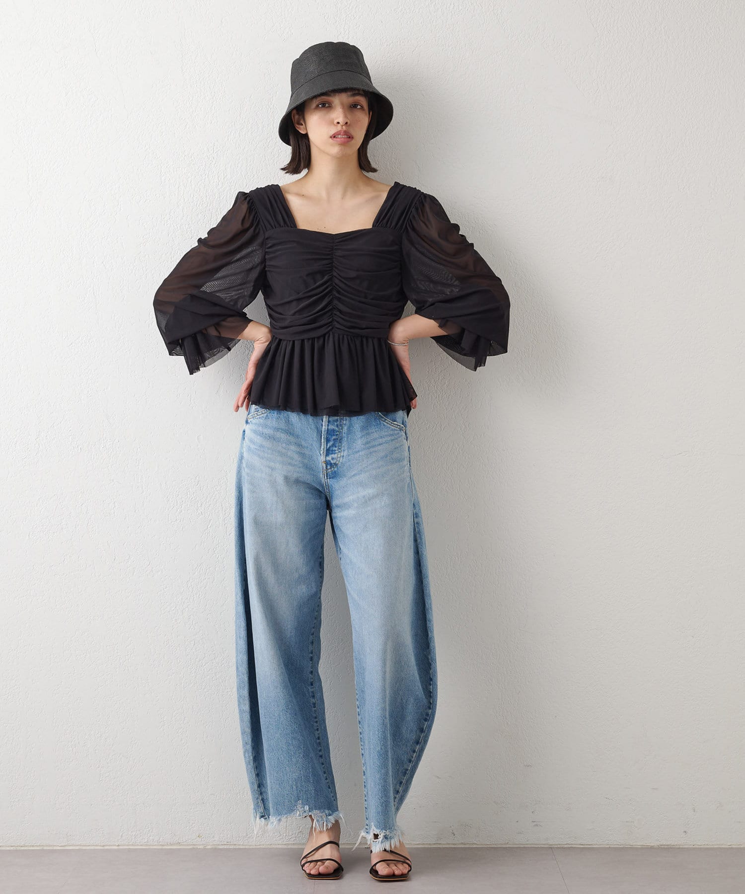 ■重くならずにチュールならではのシアー感を楽しめるよう、袖には裏地を付けずに抜け感をプラス。
