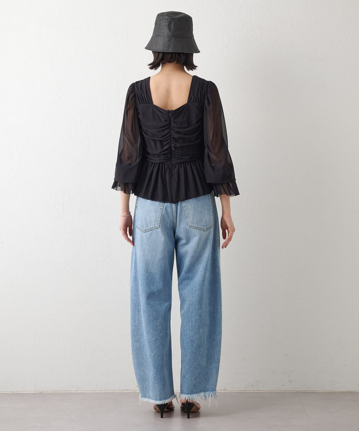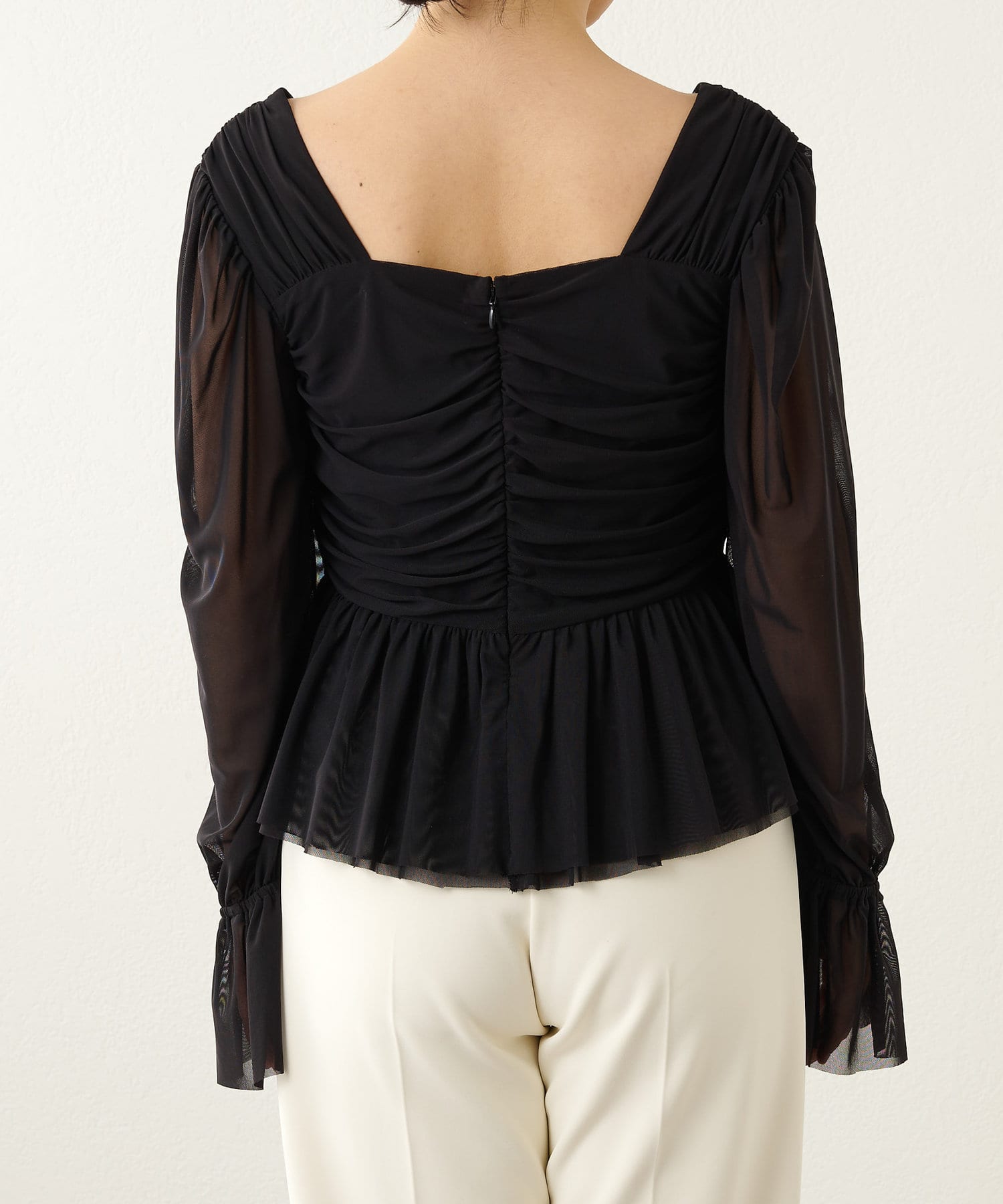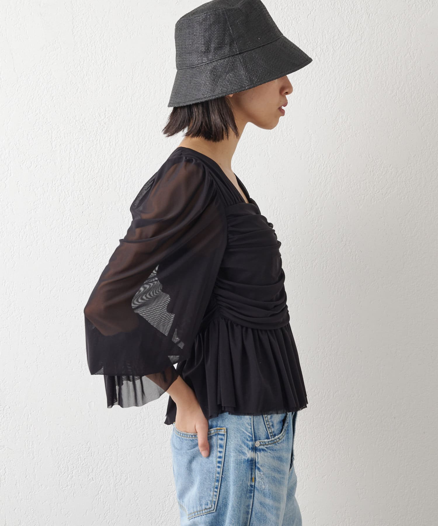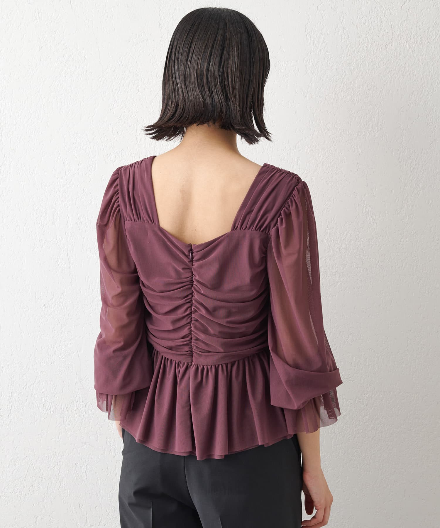 ■重くならずにチュールならではのシアー感を楽しめるよう、袖には裏地を付けずに抜け感をプラス。