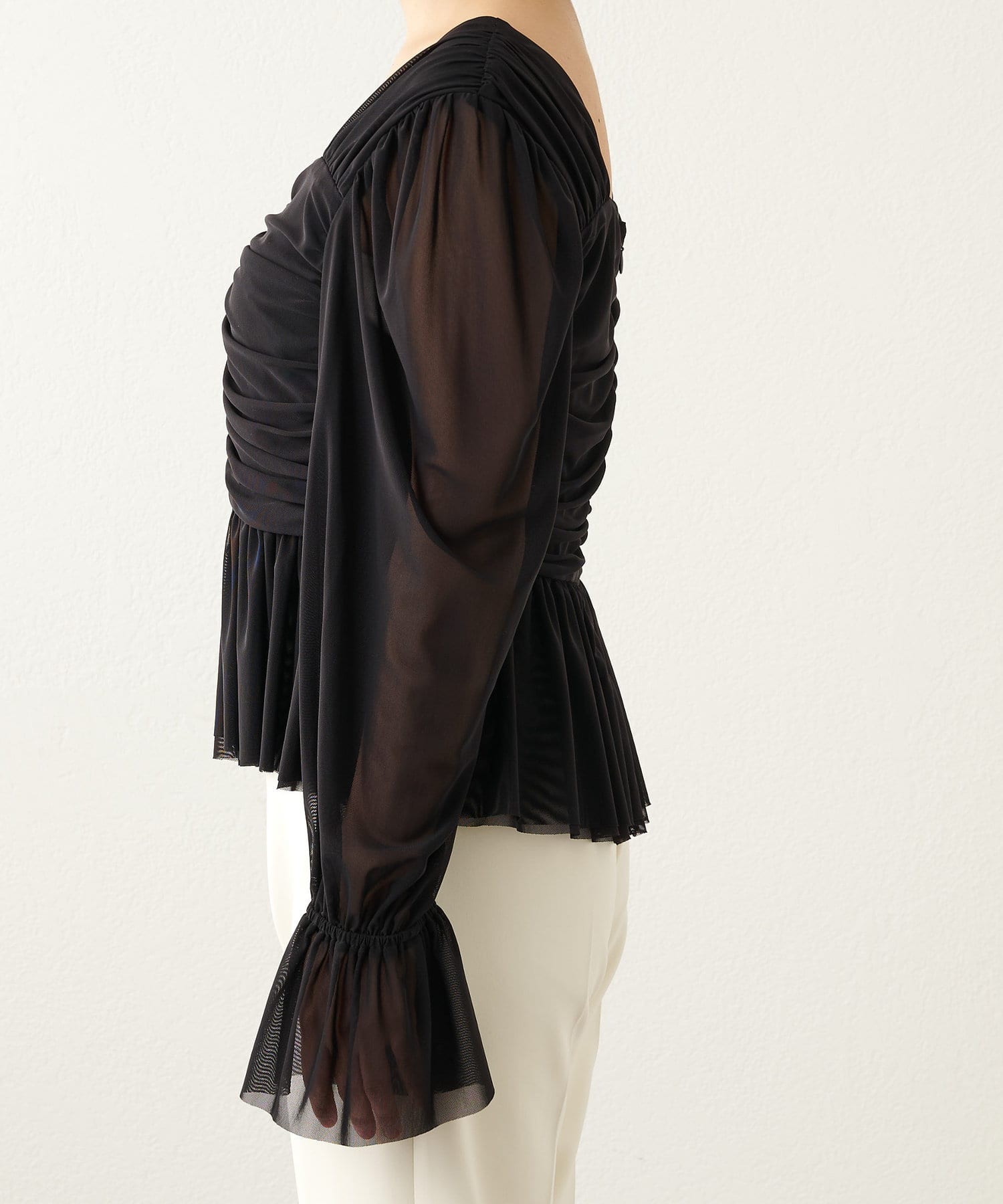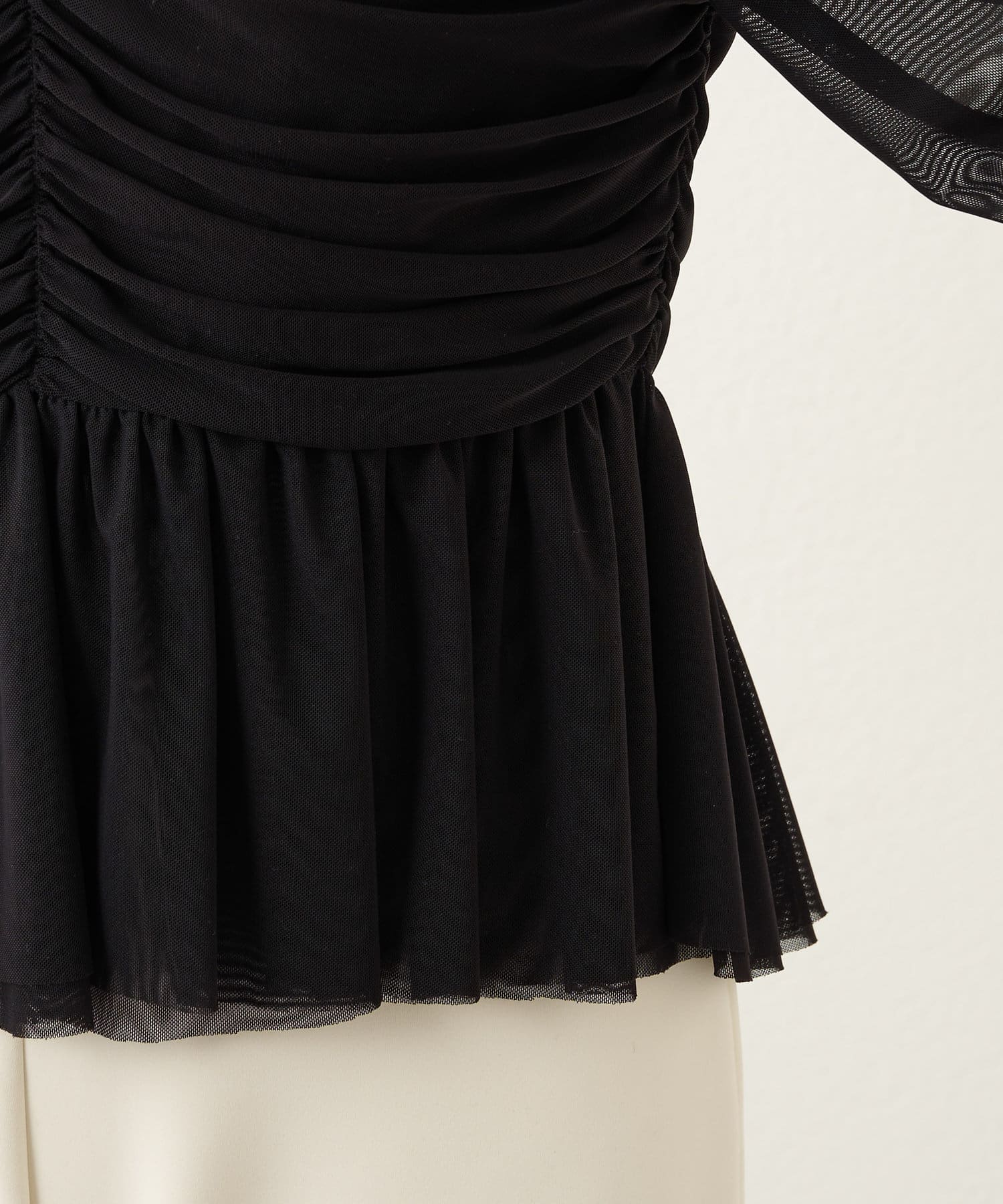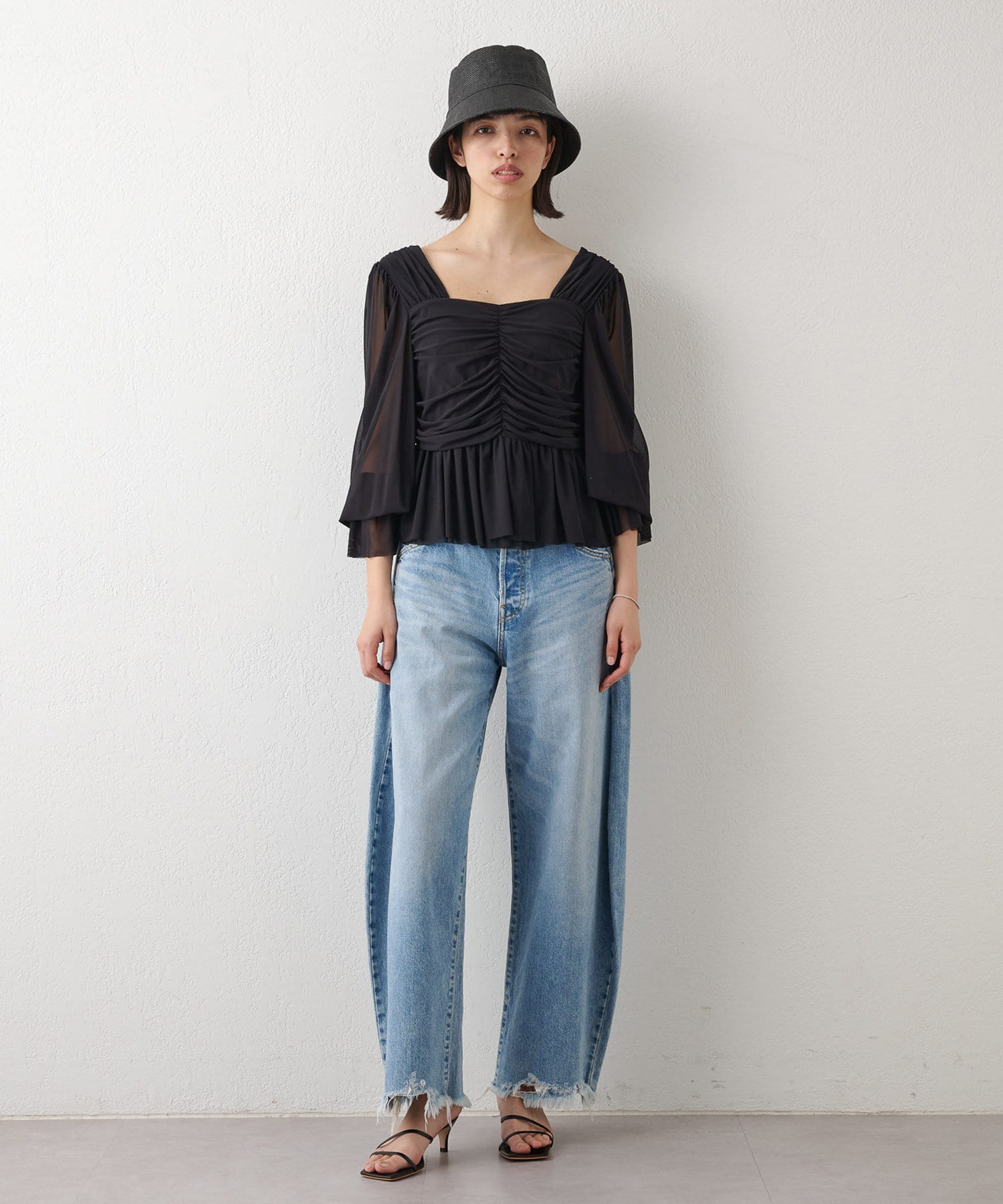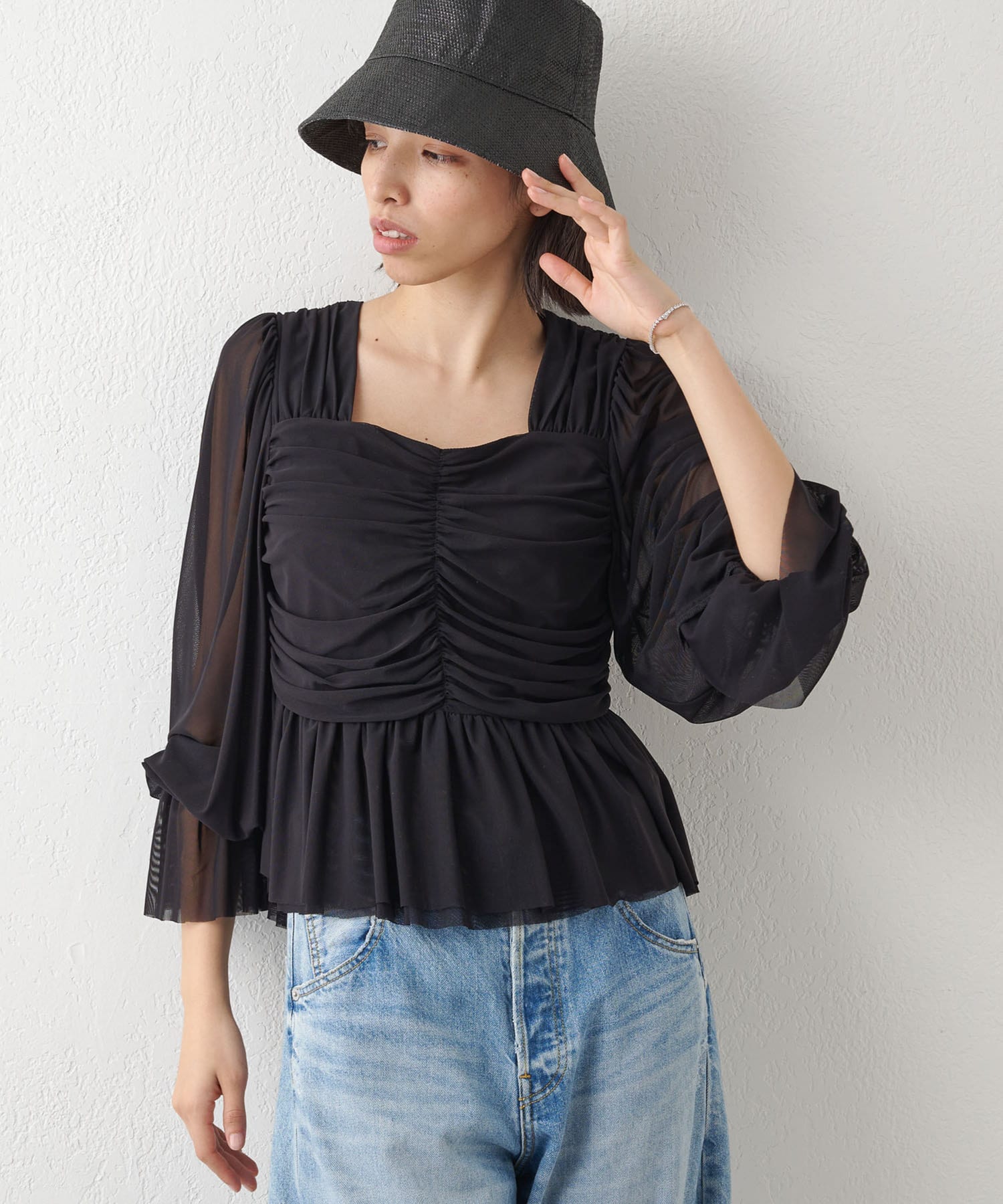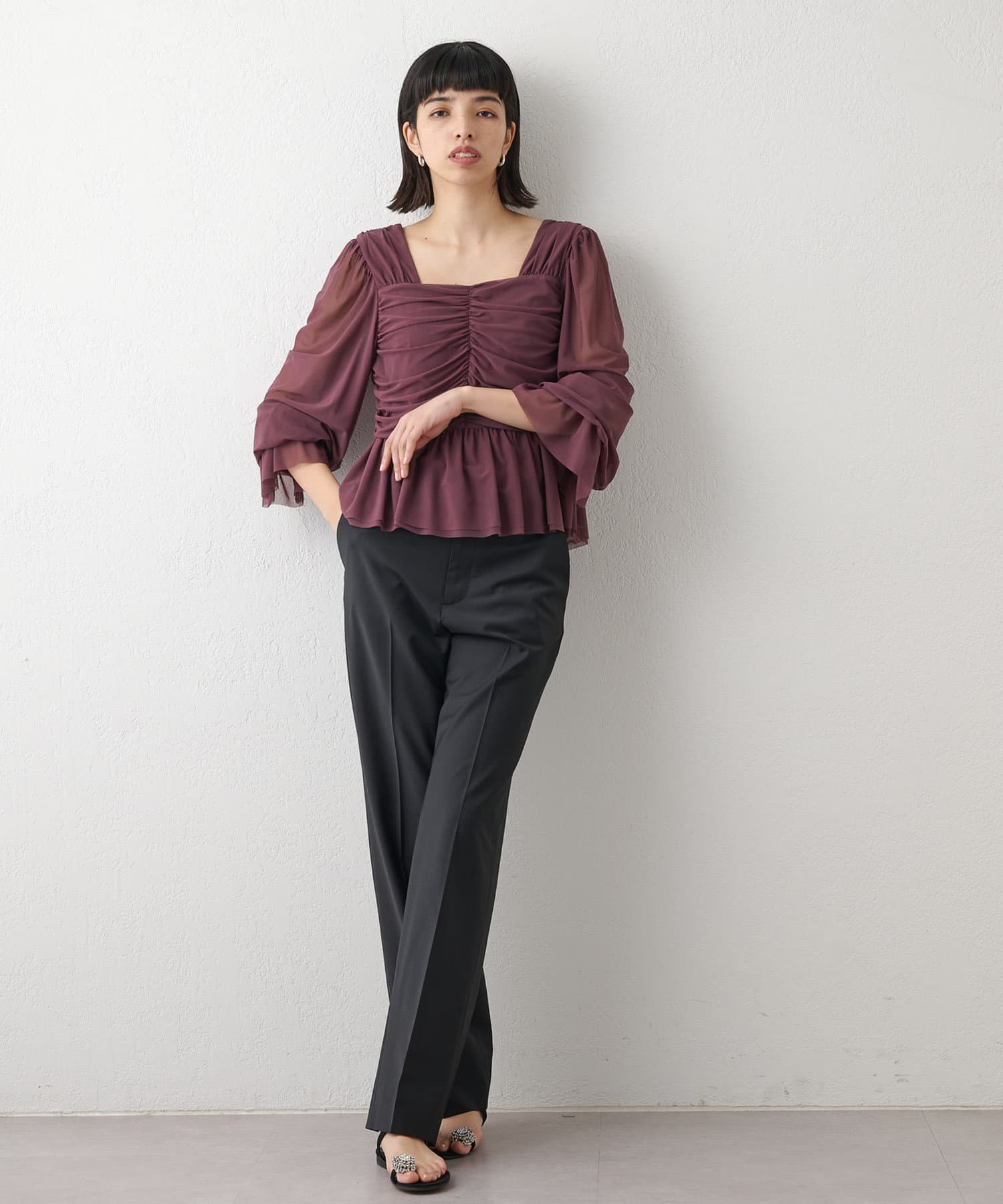 ■重くならずにチュールならではのシアー感を楽しめるよう、袖には裏地を付けずに抜け感をプラス。